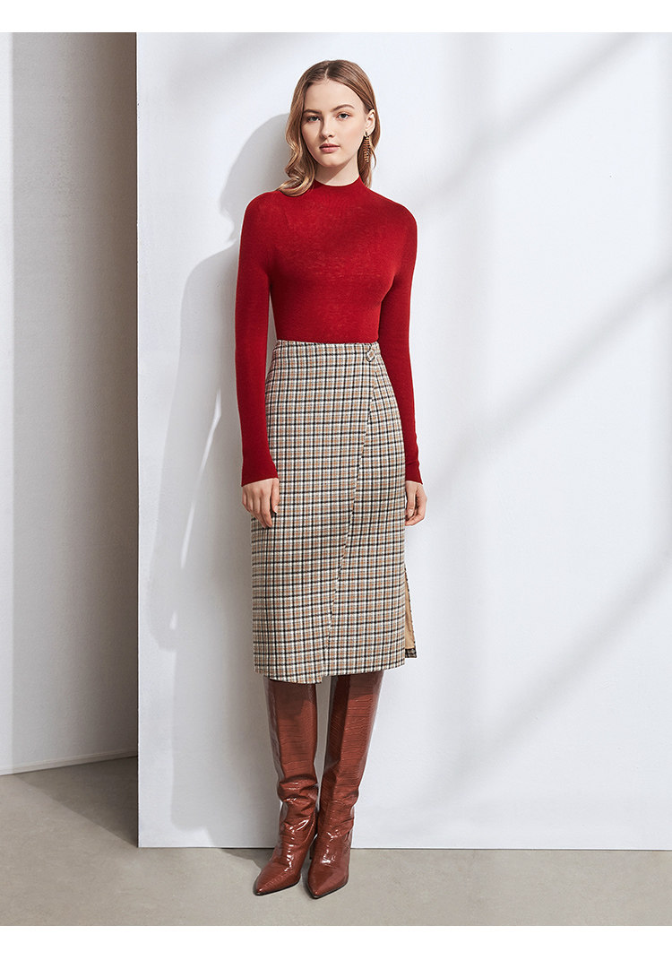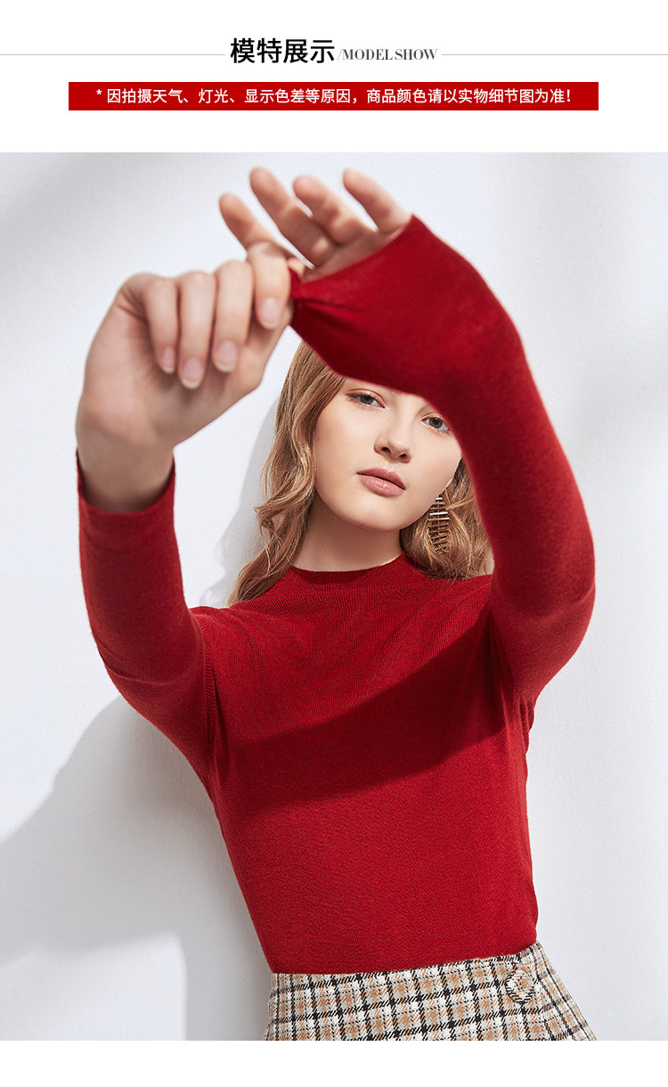 EITIE爱特爱女装秋季新款气质半高领百搭显瘦羊绒针织打底衫D2001515