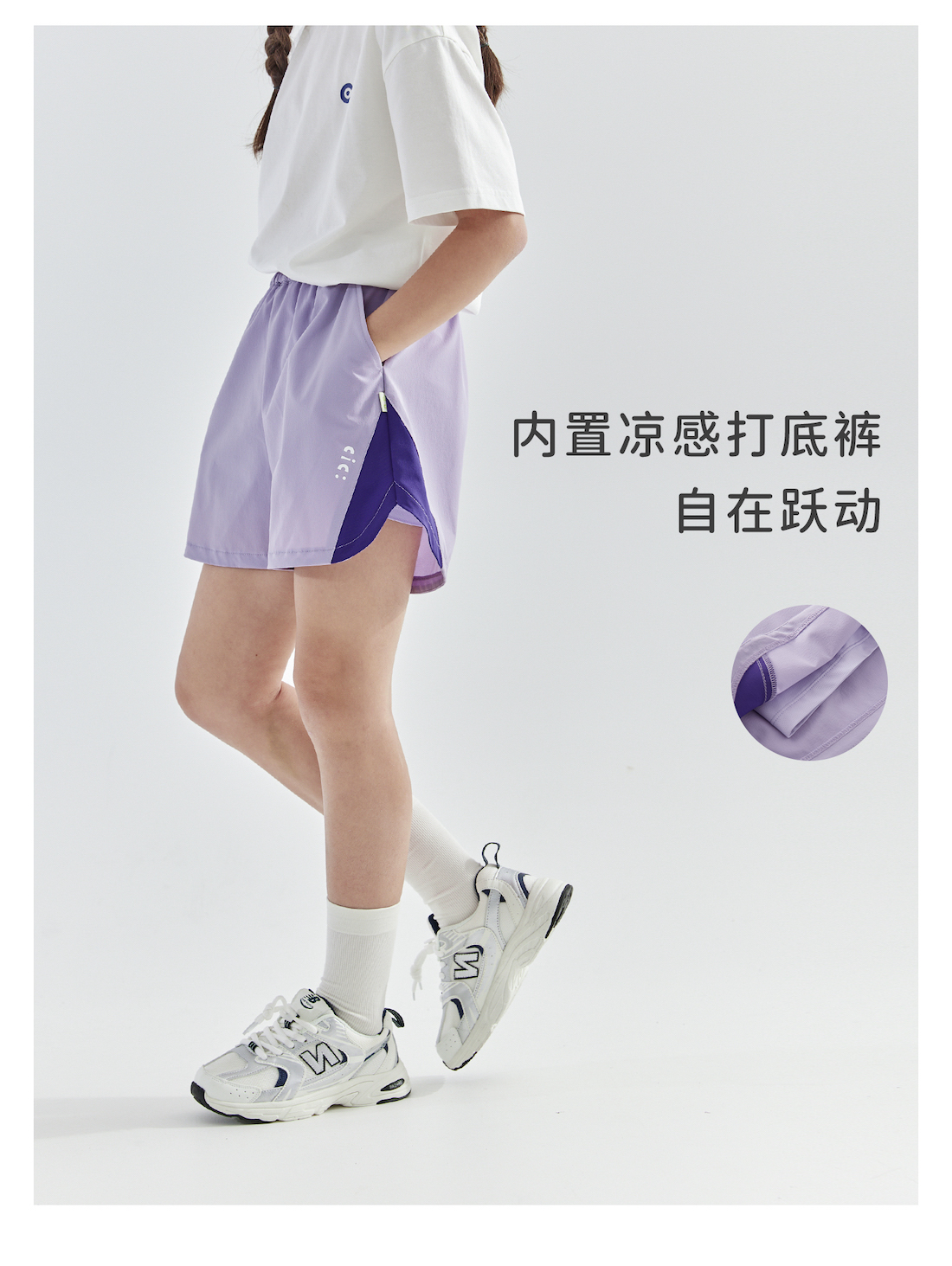 cicochild2025年夏季新款中大女童假两件慢跑短裤四面弹凉感裤子