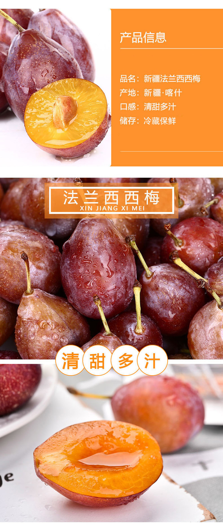 【果蔬精选】新疆喀什法兰西西梅 应季水果 集颜值 口感 营养于一身 皮薄肉嫩 香甜多汁 轻咬一口汁水四溢 果肉芳香甜美