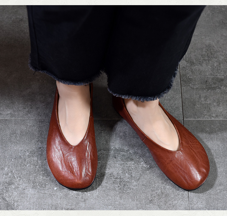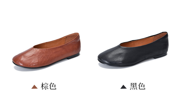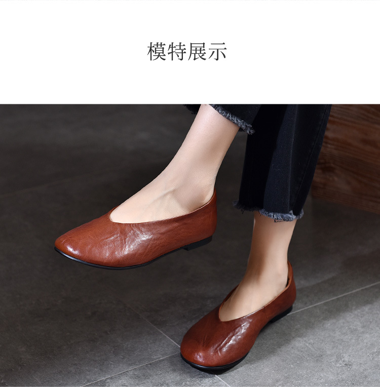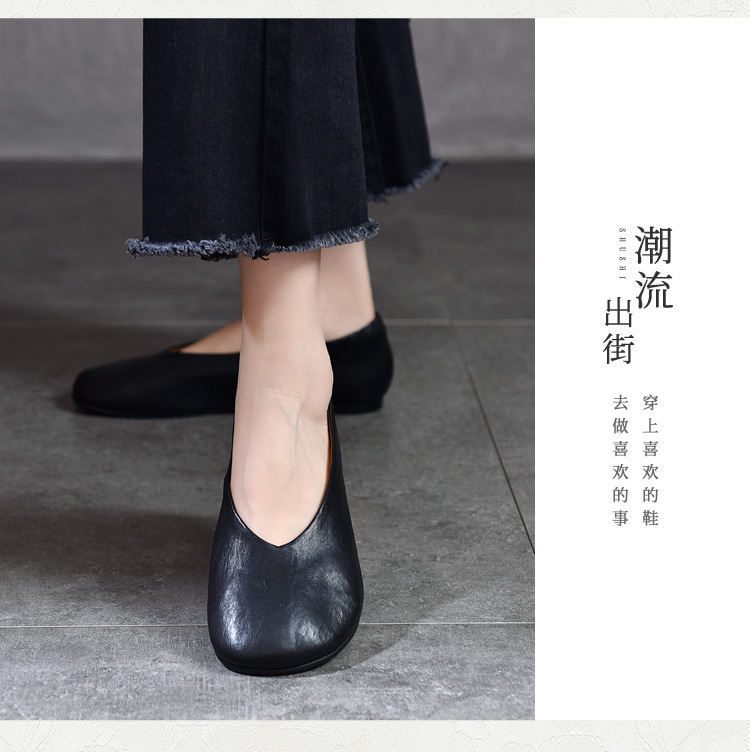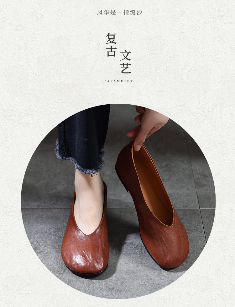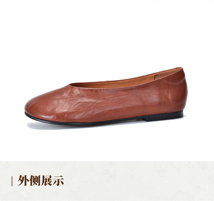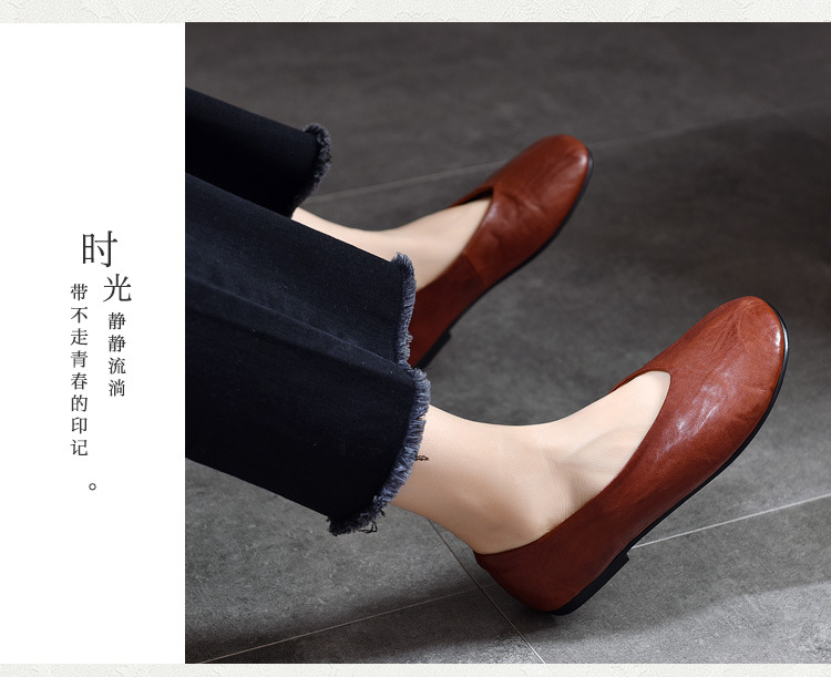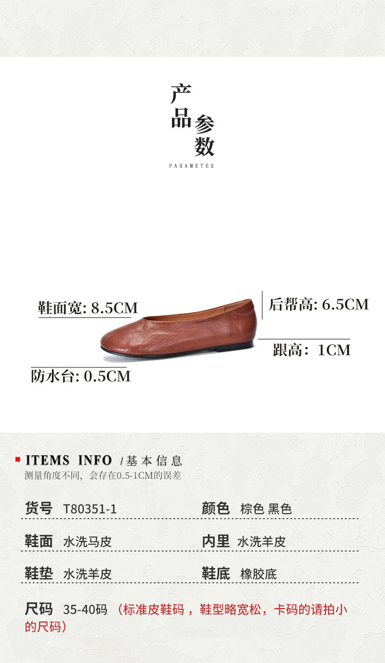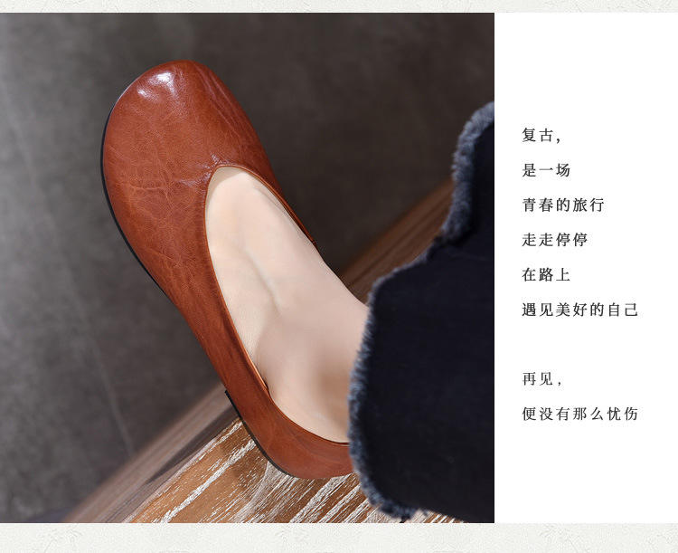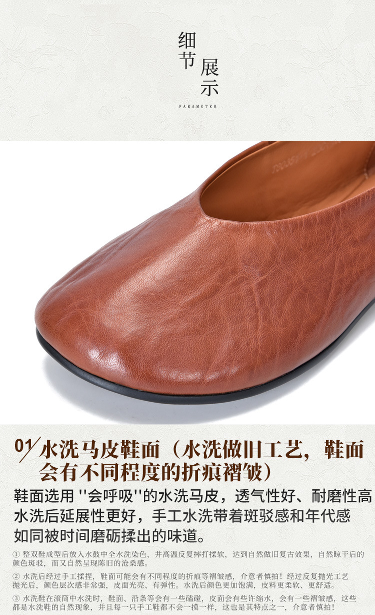 TN T80351-1高级感水洗马皮复古擦色单鞋低跟浅口