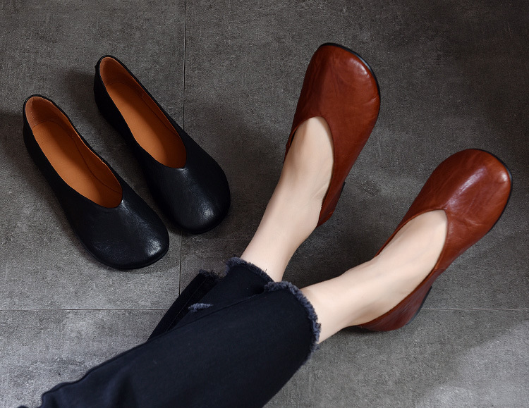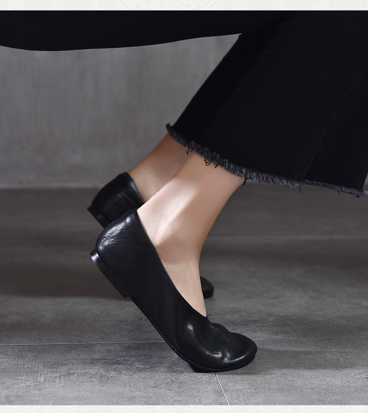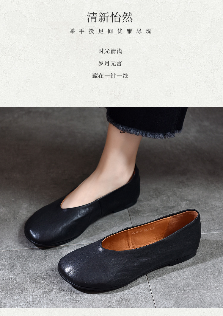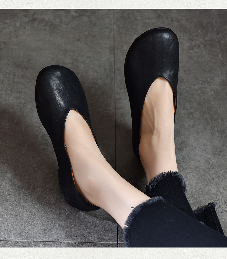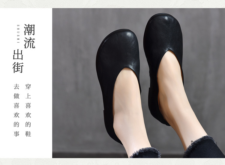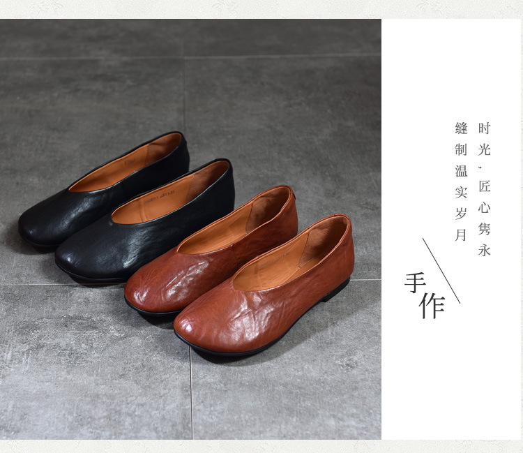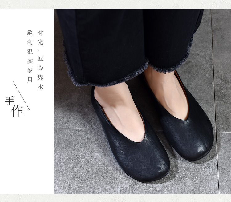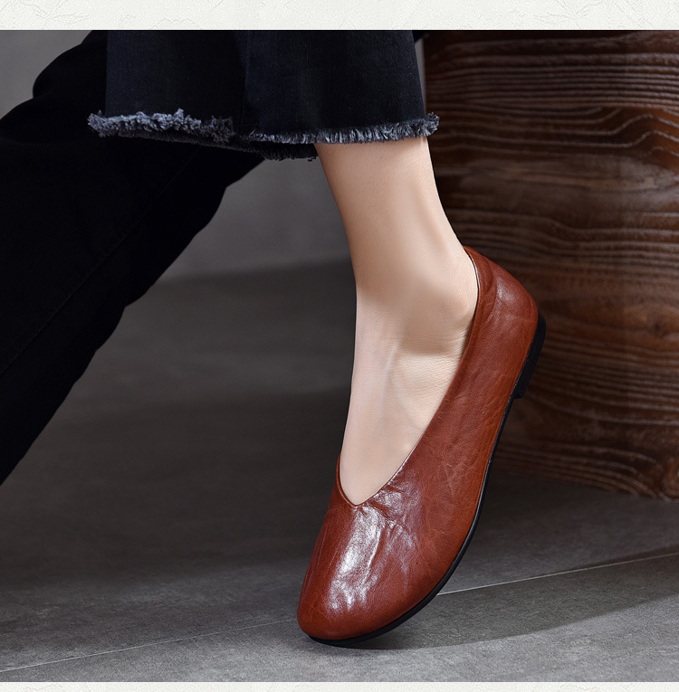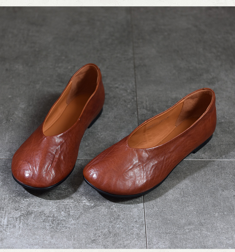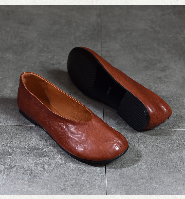 TN T80351-1高级感水洗马皮复古擦色单鞋低跟浅口