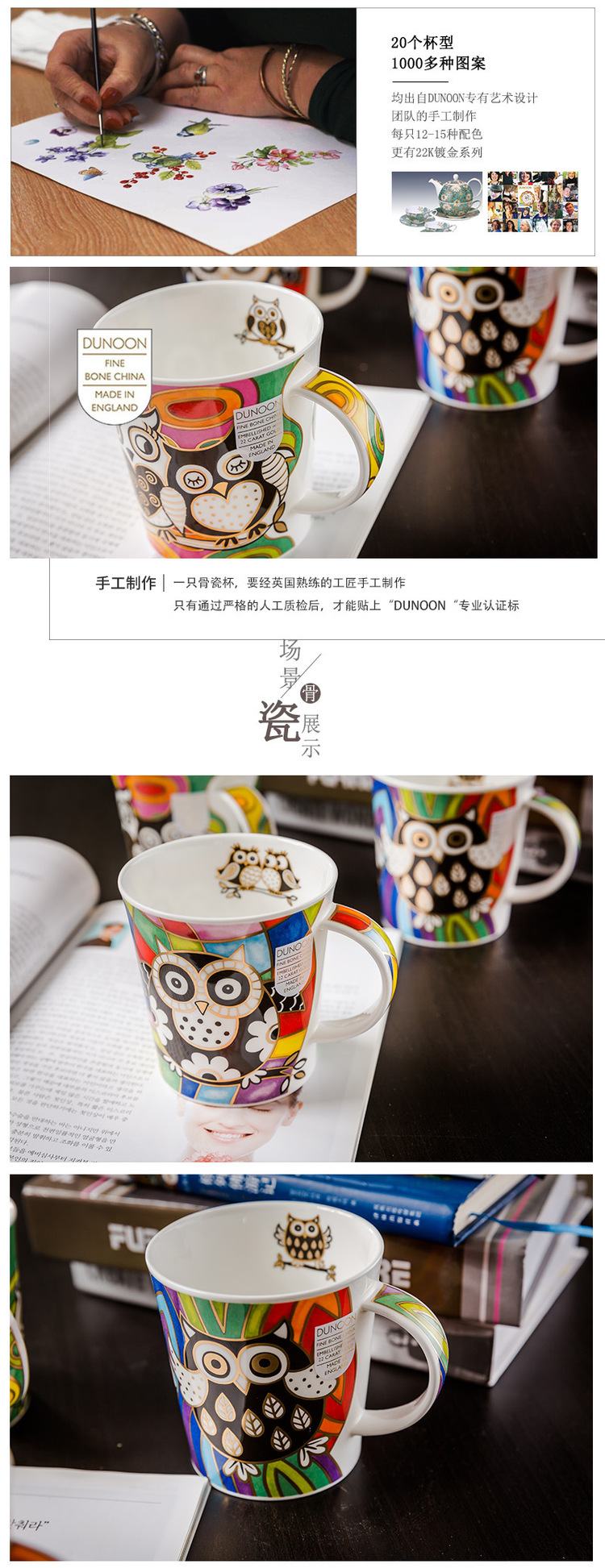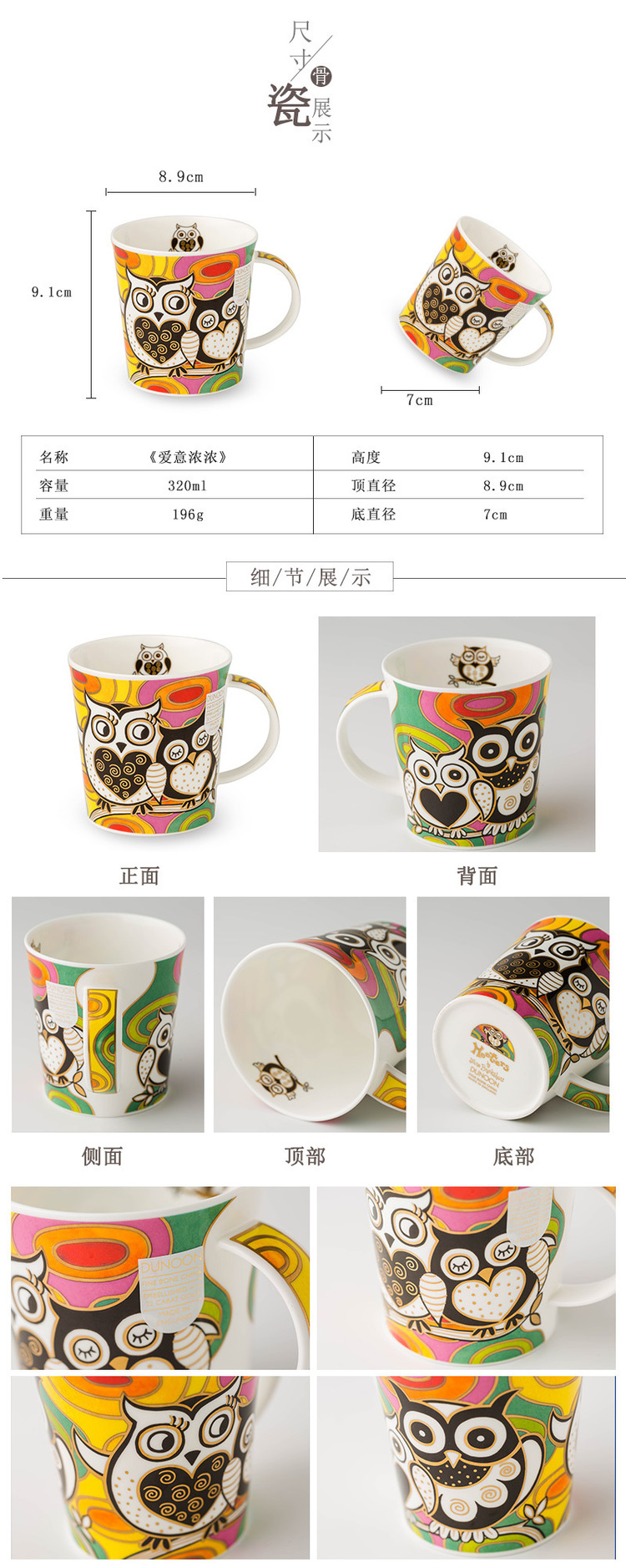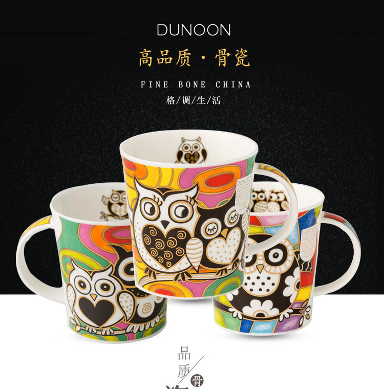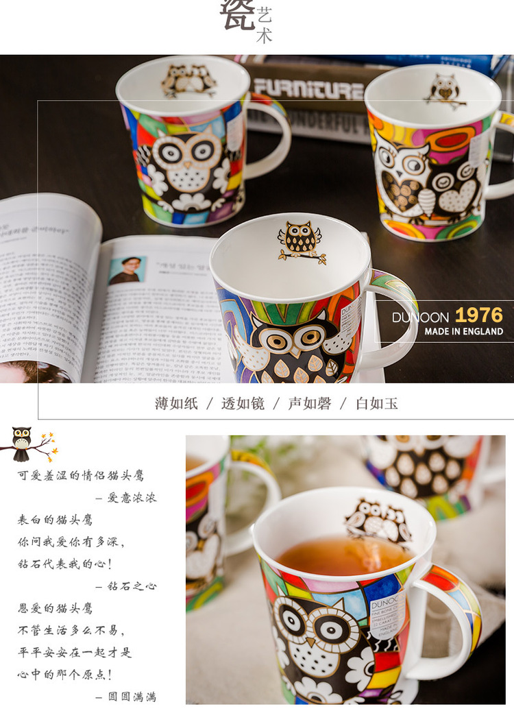 英国原产DUNOON丹侬lemond杯型马克杯猫头鹰系列之爱意浓浓