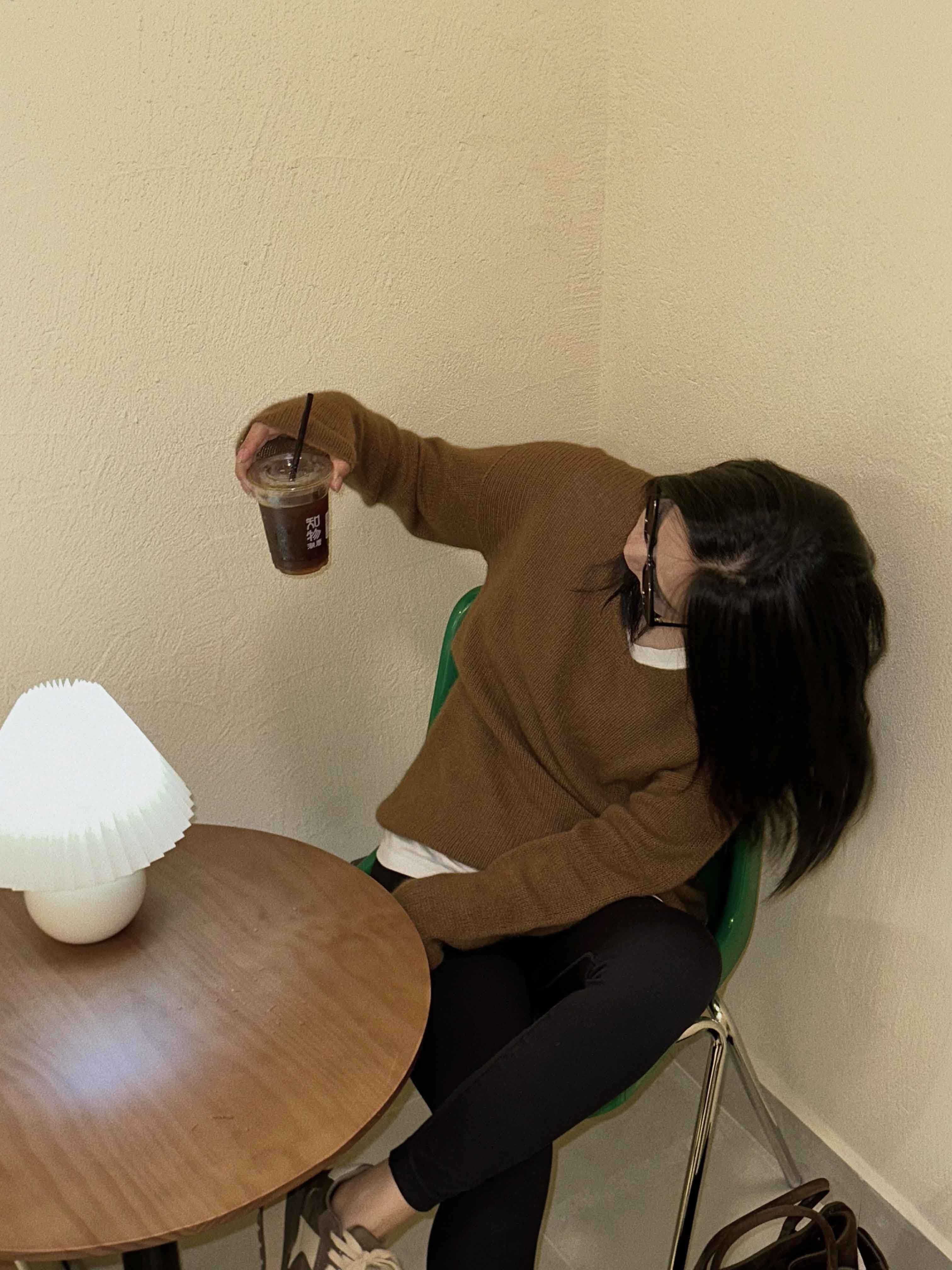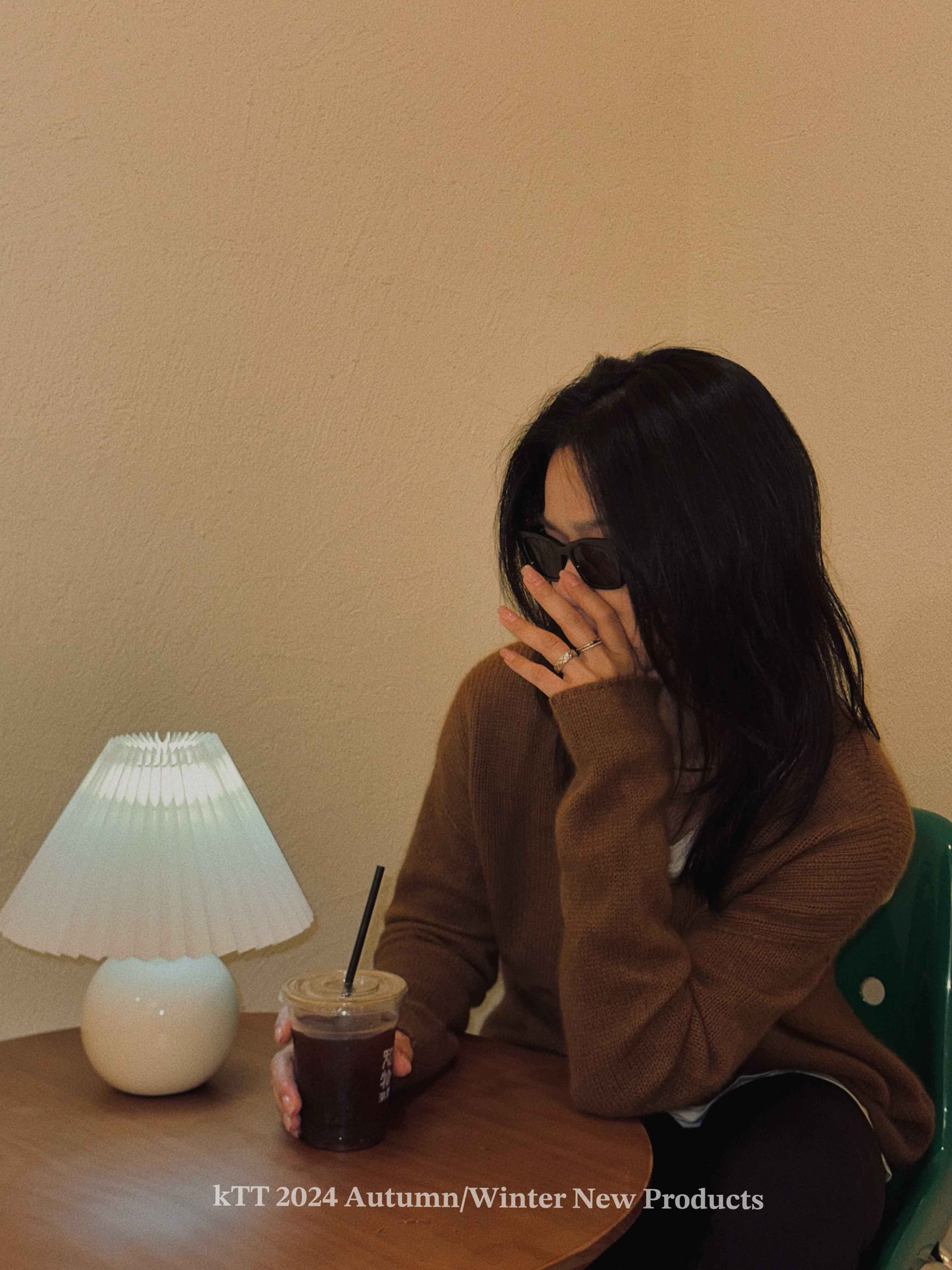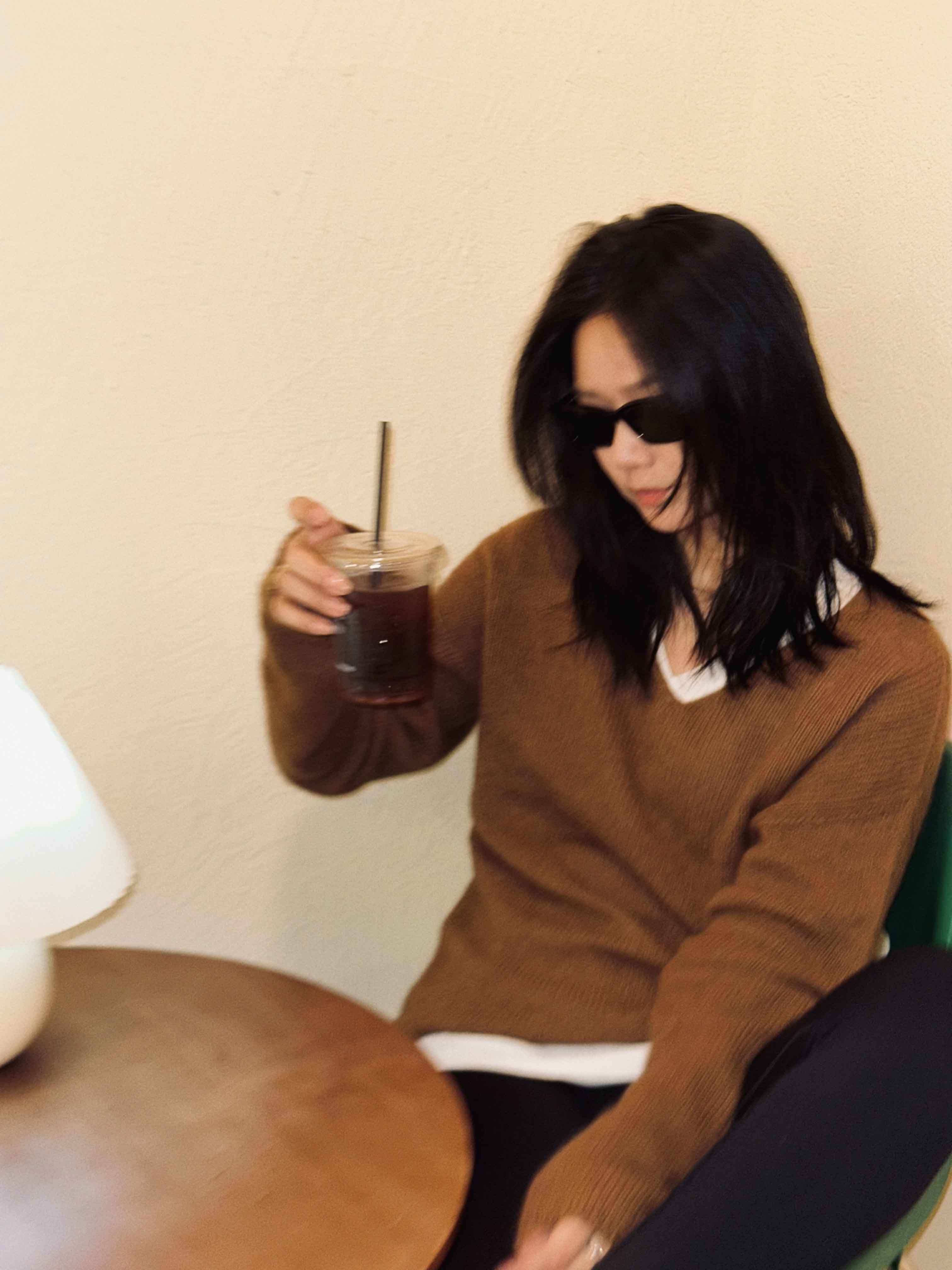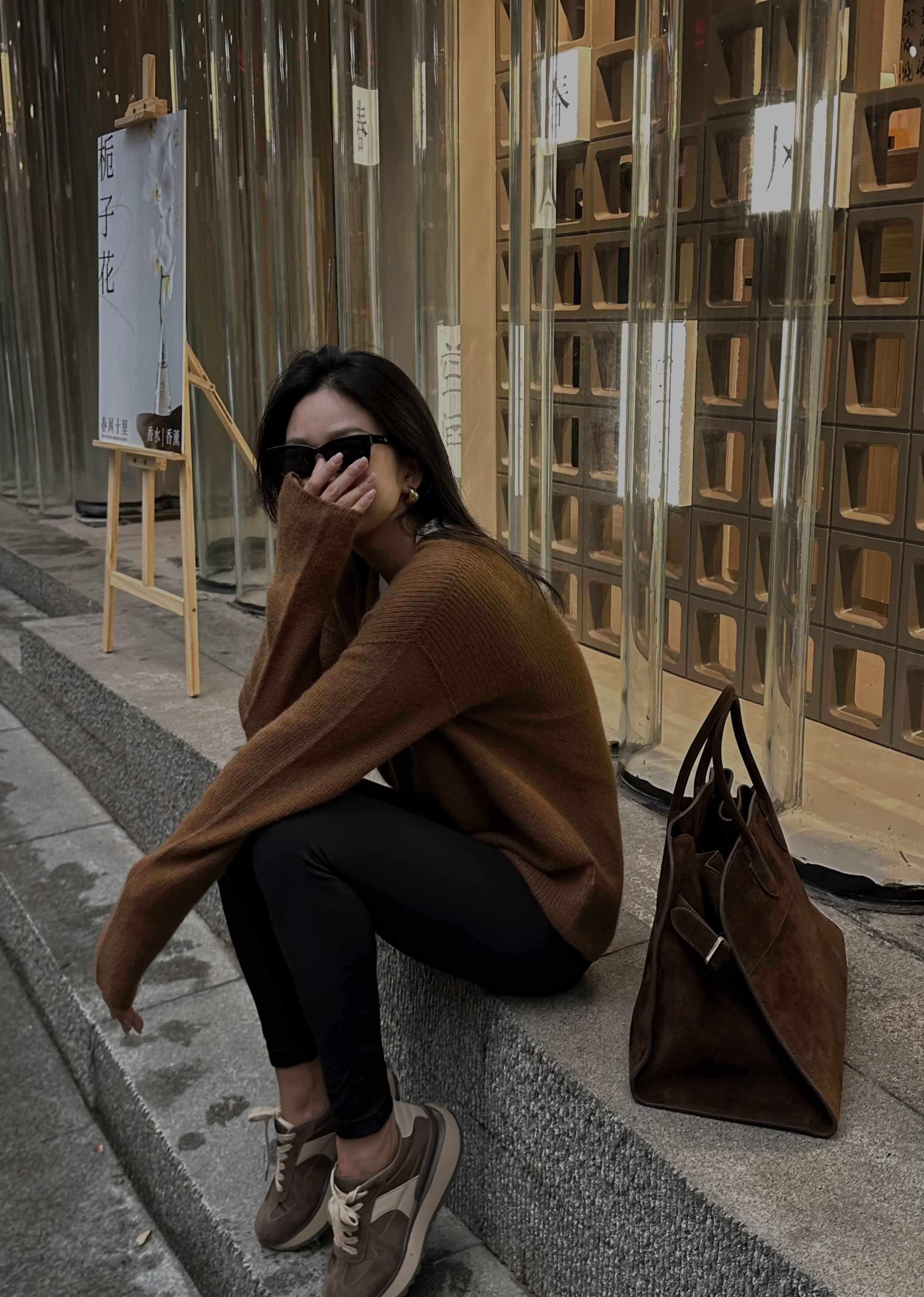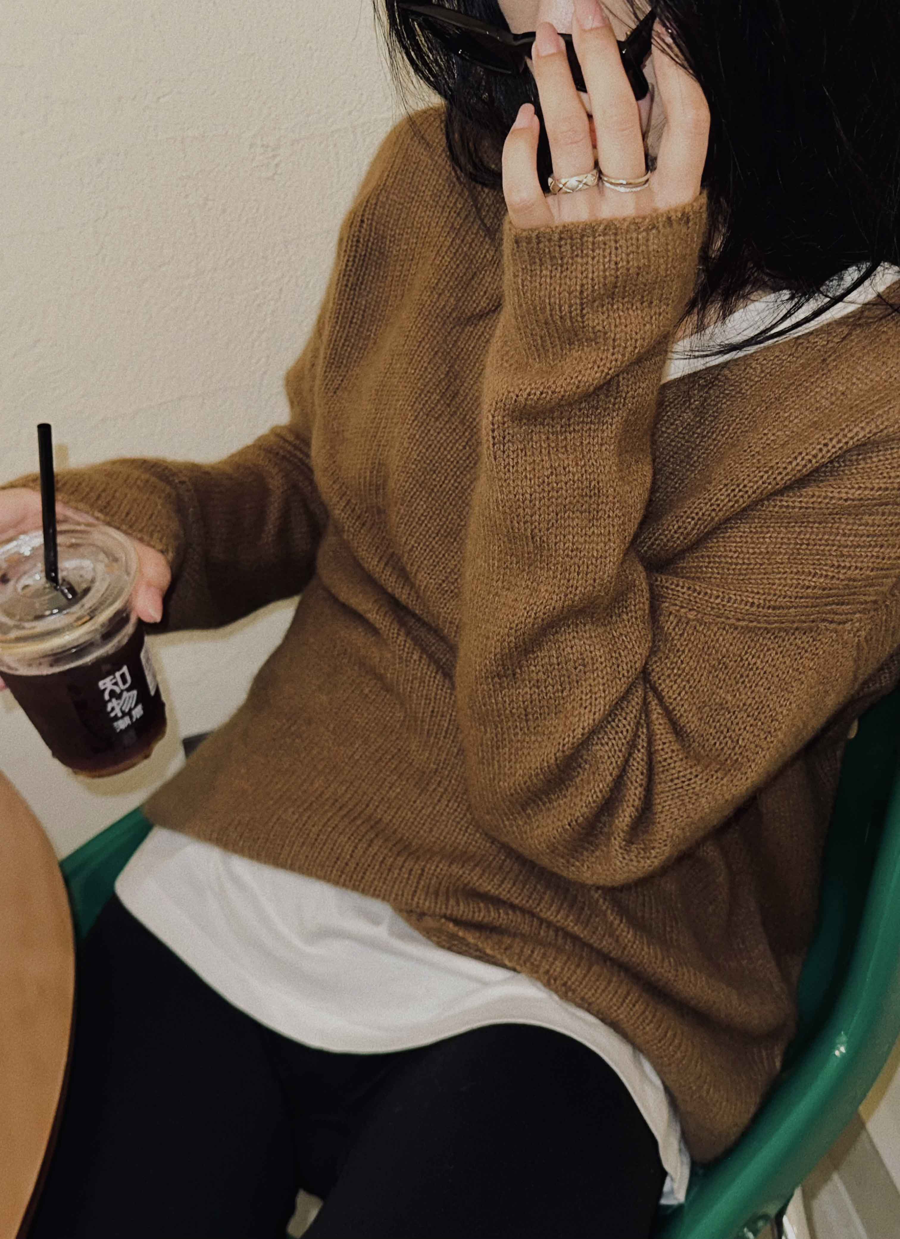 “毛绒绒”小浣熊无缝V领套头毛衣· 米色/咖色/安可拉红