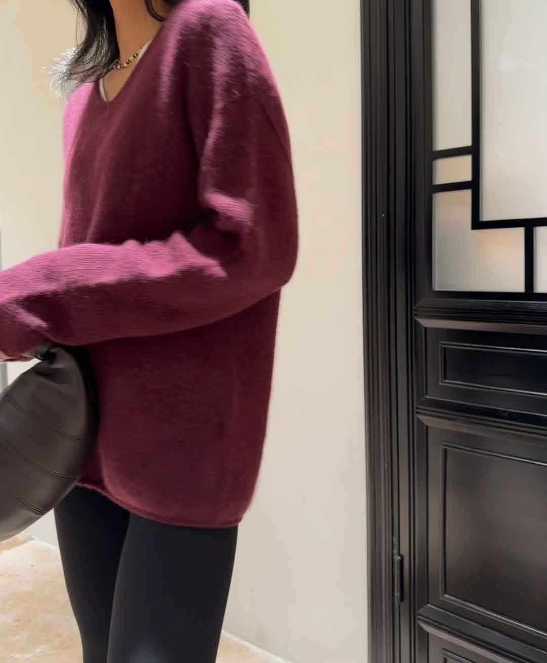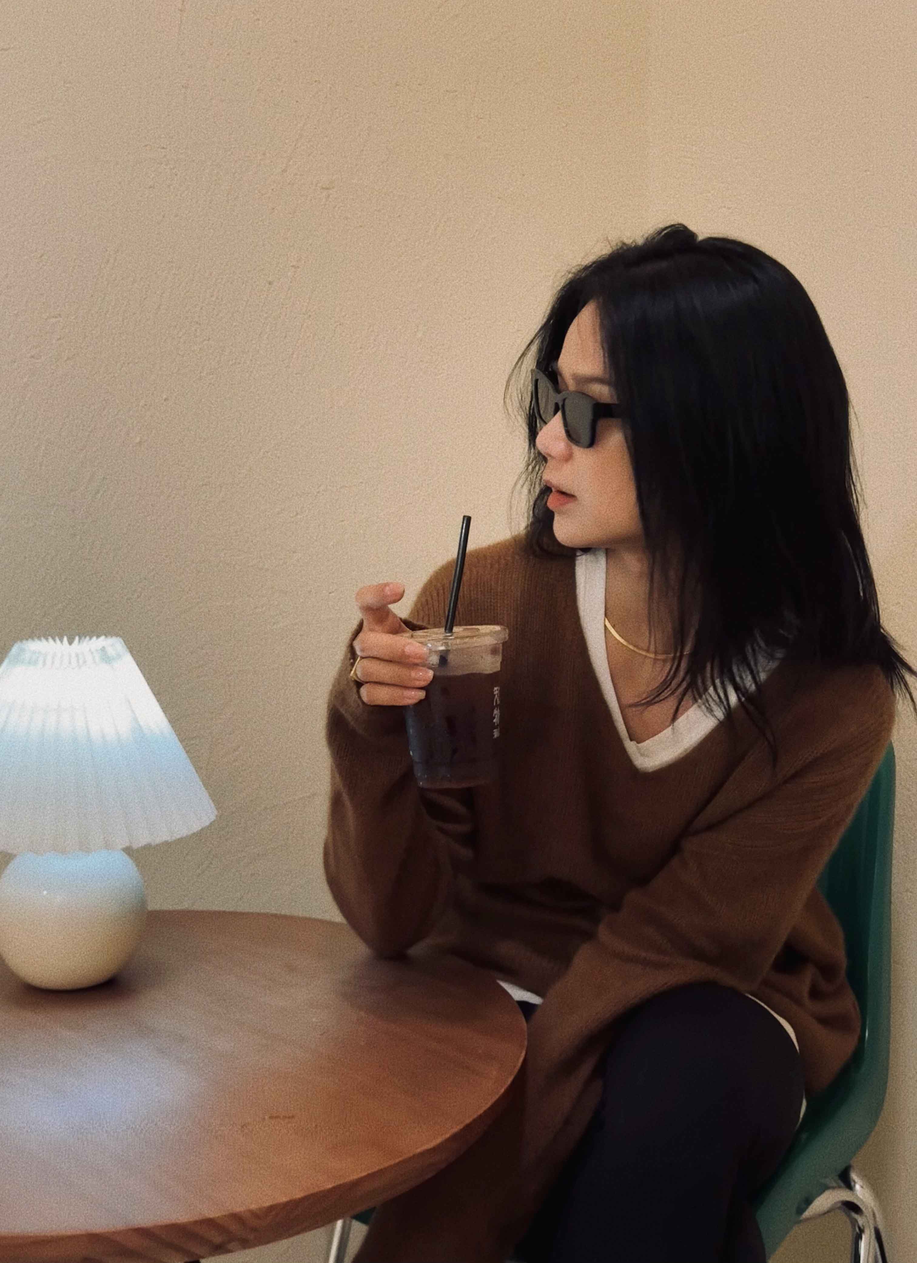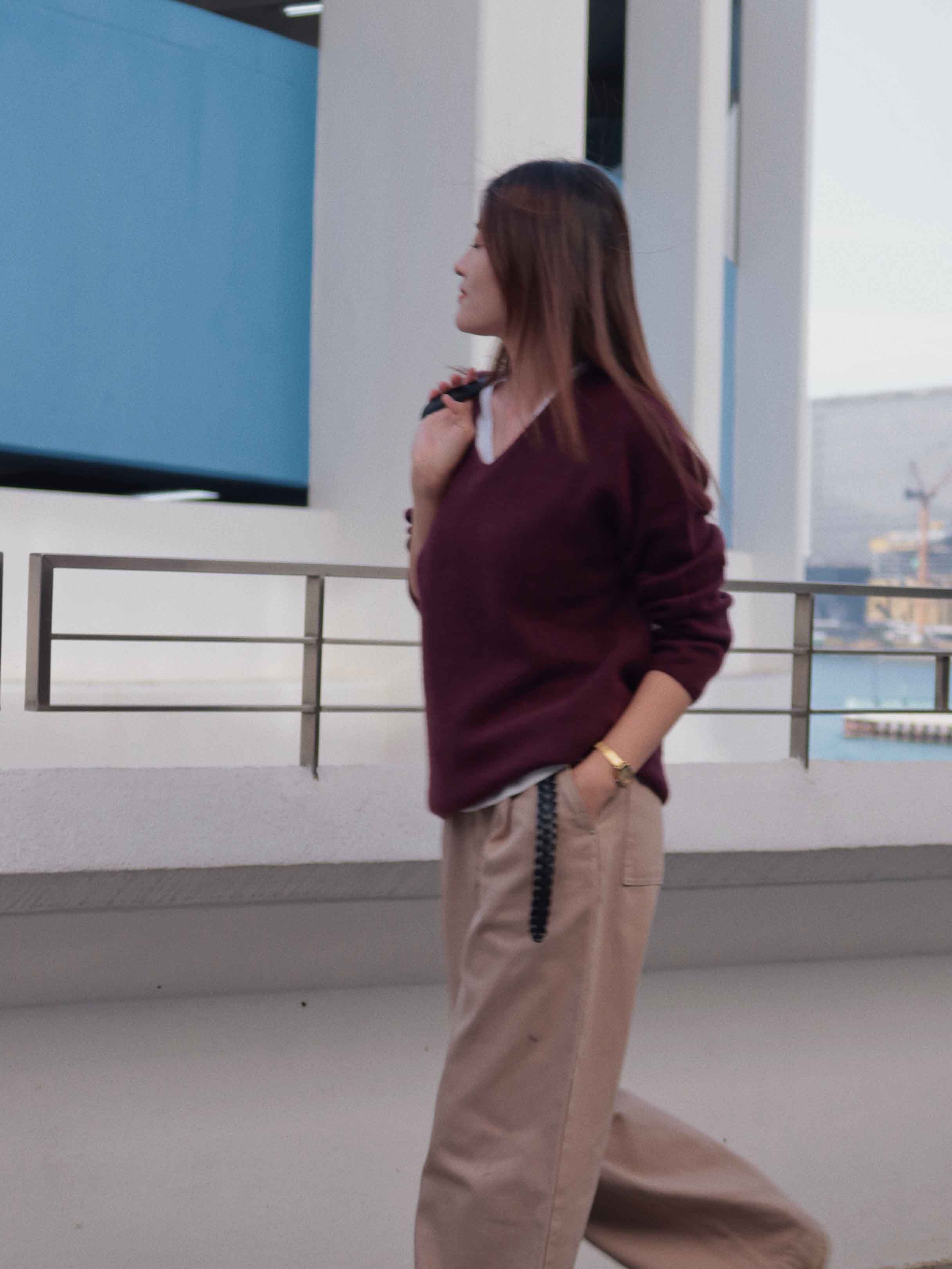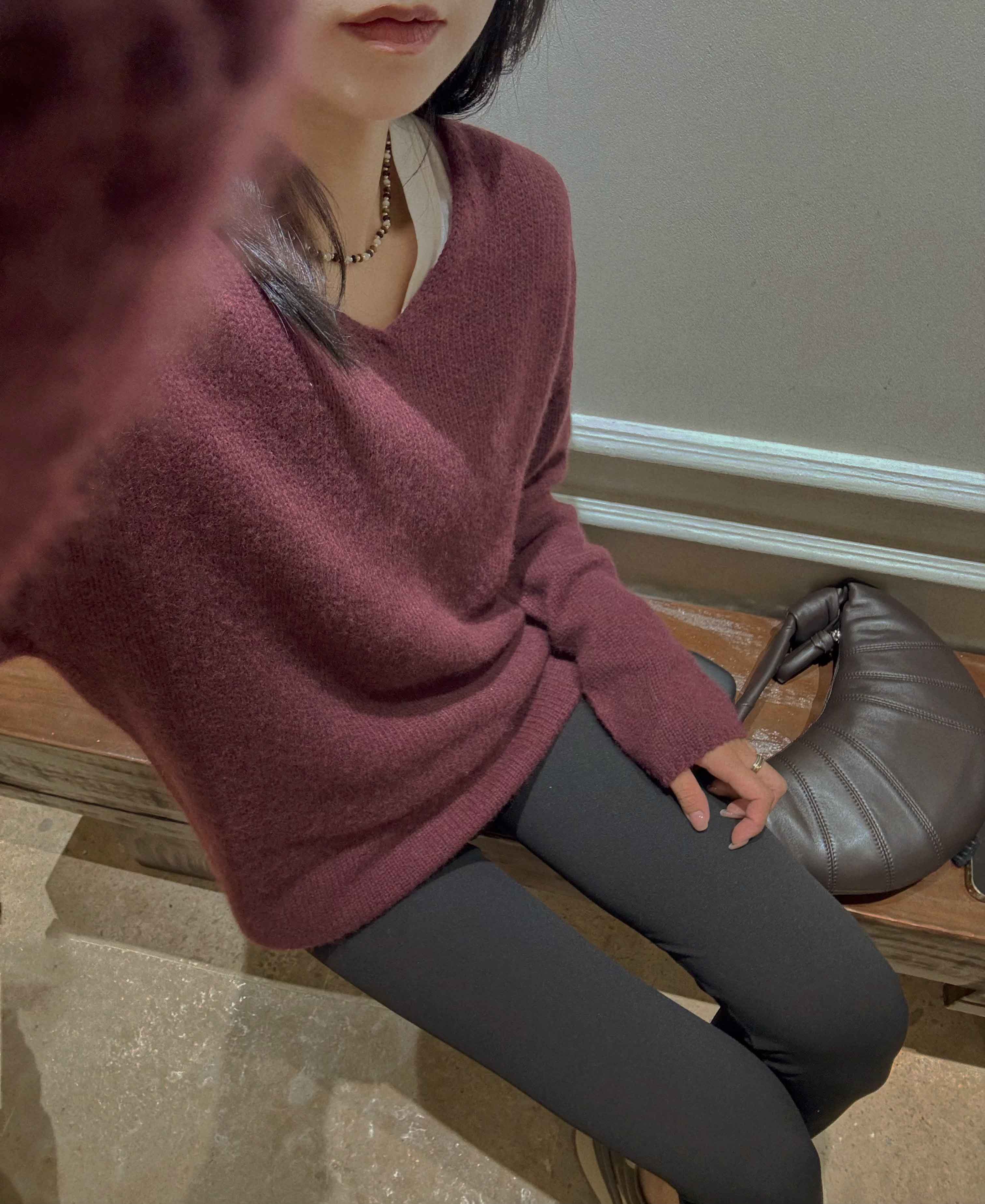 “毛绒绒”小浣熊无缝V领套头毛衣· 米色/咖色/安可拉红