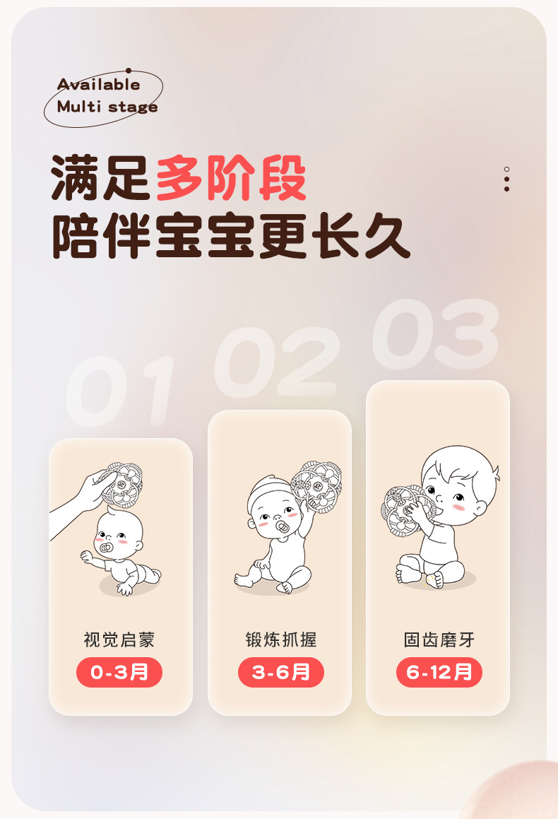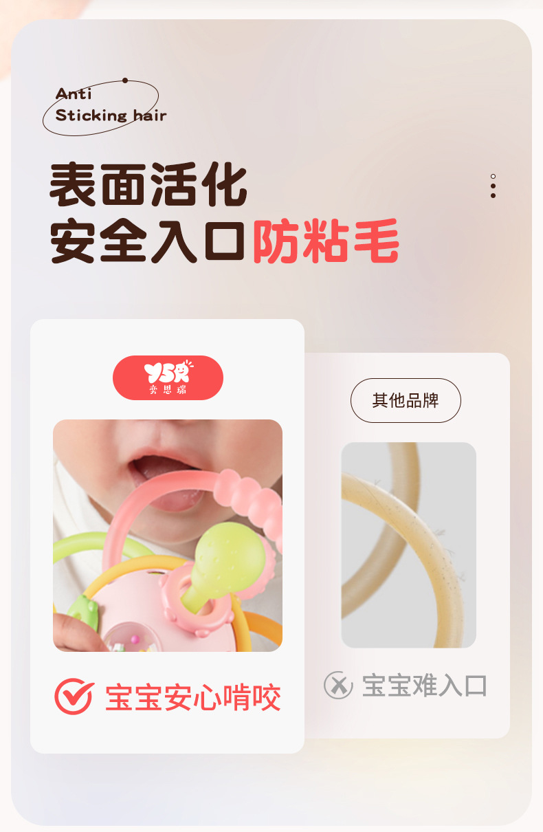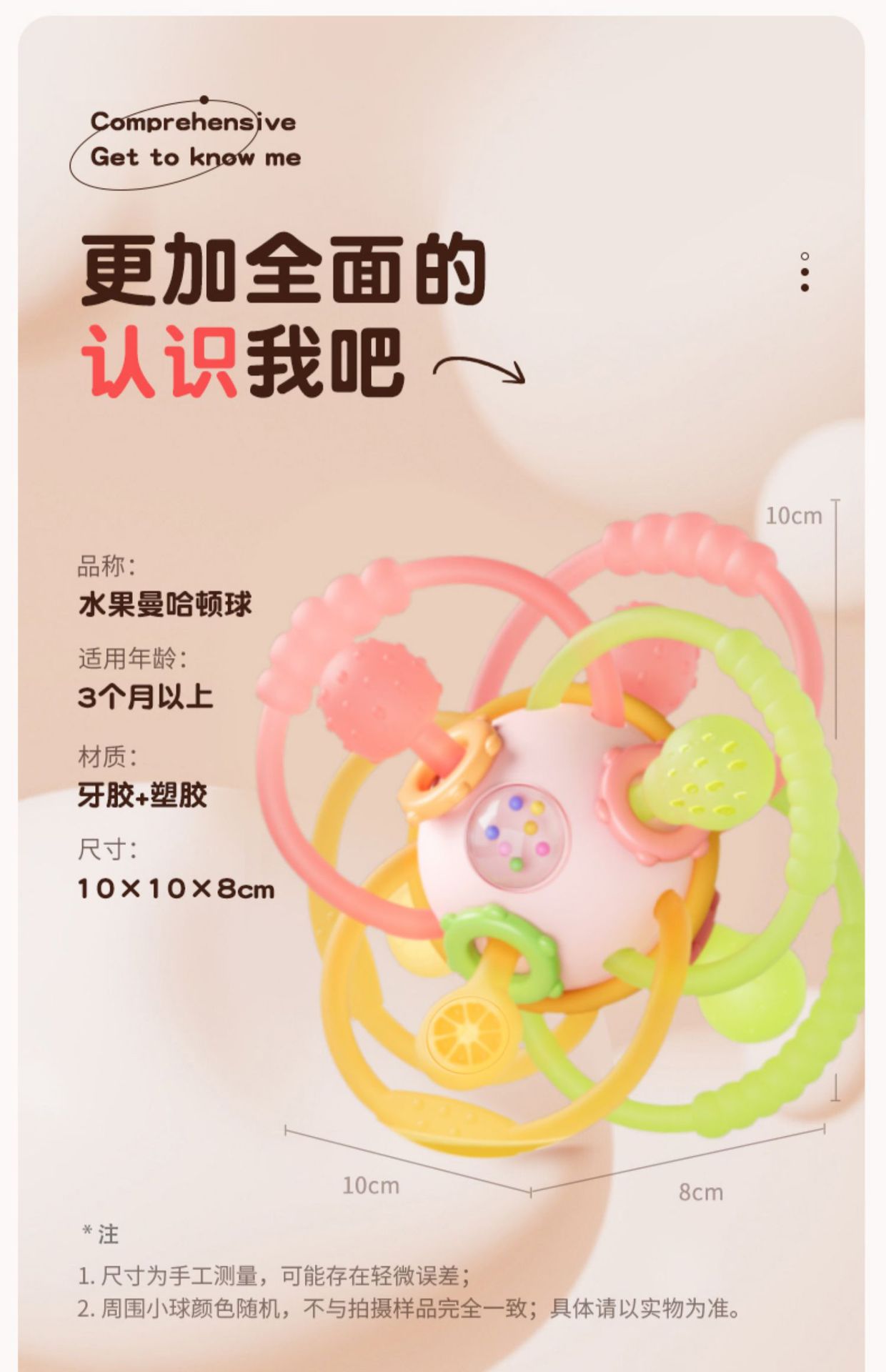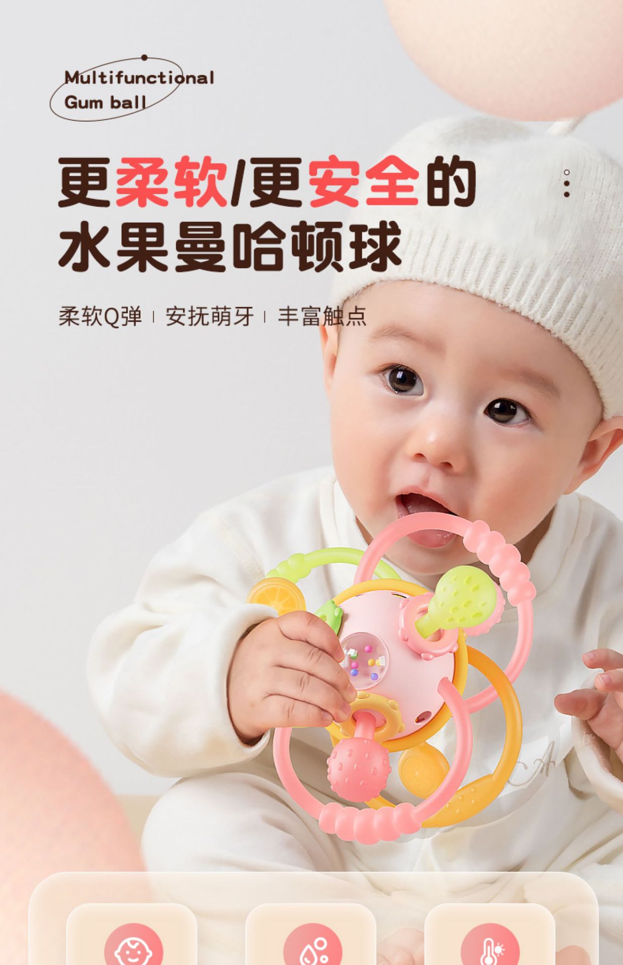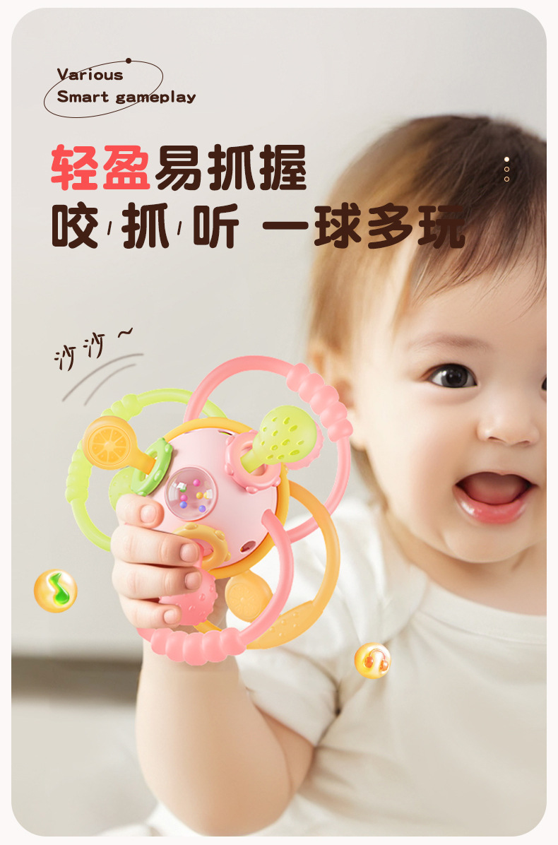 【丰富触点 安抚萌牙】YSR曼哈顿手抓球 硅胶可咬 婴儿玩具 0-1岁 早教益智 3到6个月宝宝磨牙胶-QQ