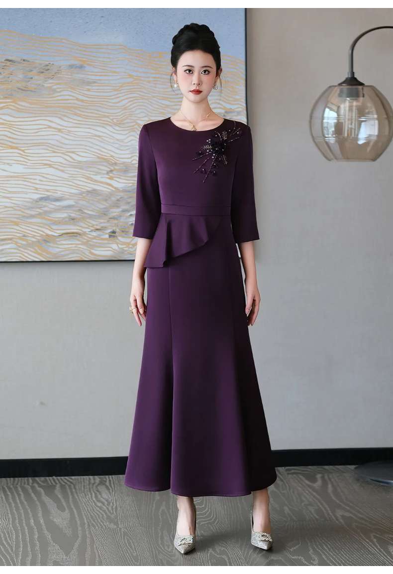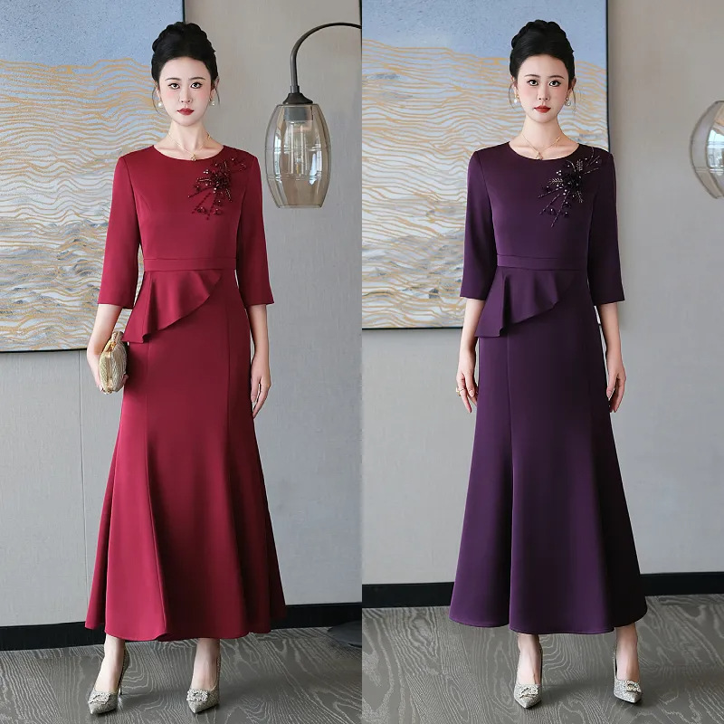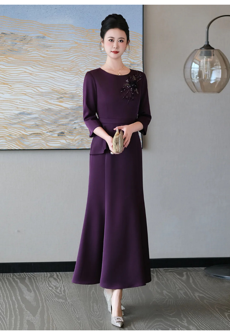 5IF5507-1高端喜婆婆婚宴装2025新款喜妈妈婚礼服小个子高贵日常可穿连衣裙
