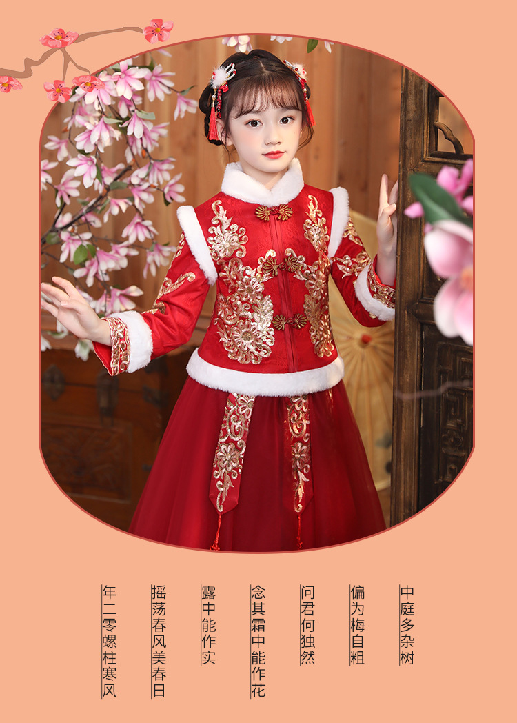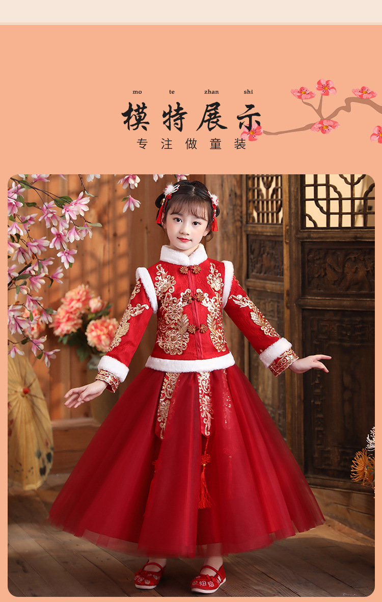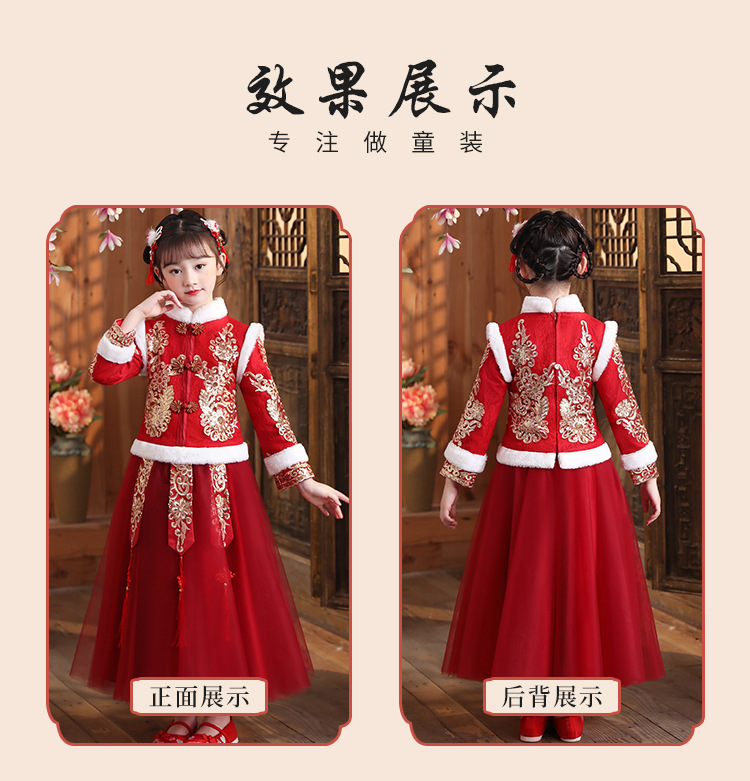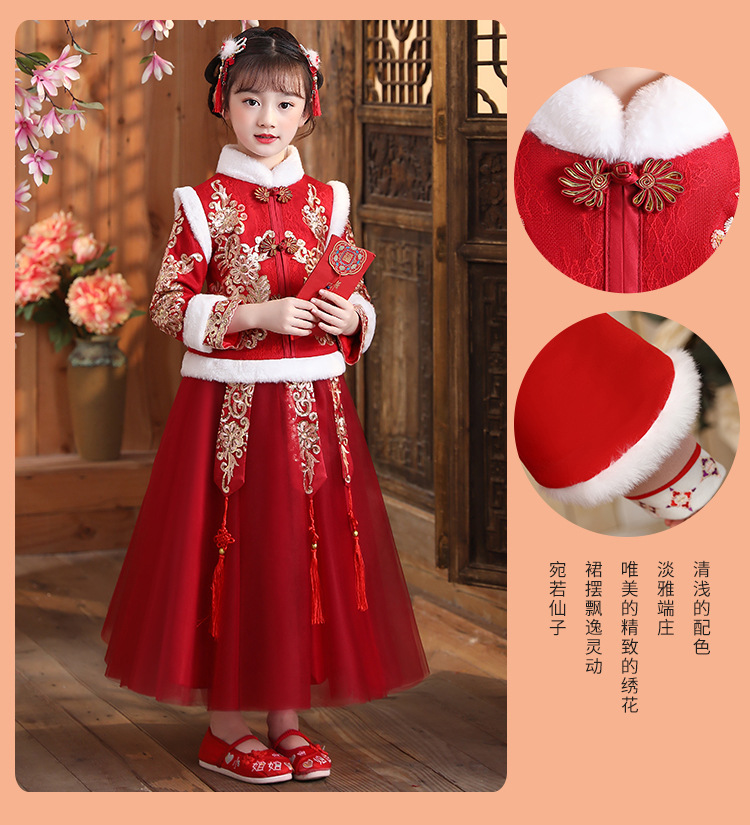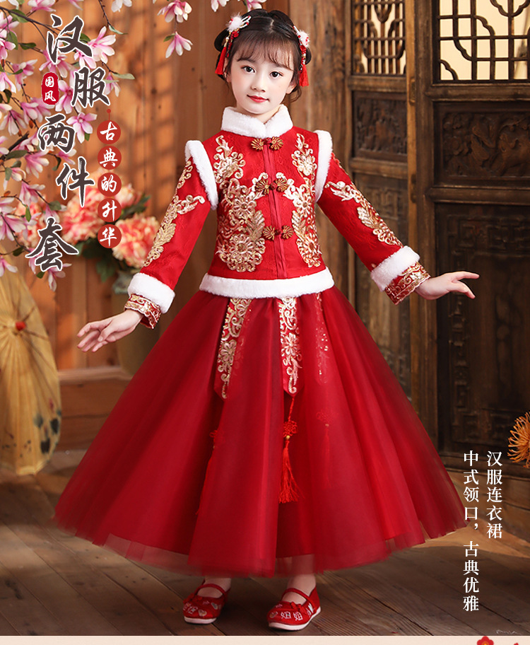 DY-9922汉服女童裙套装秋冬加绒中国风唐装拜年服女孩演出儿童连衣裙