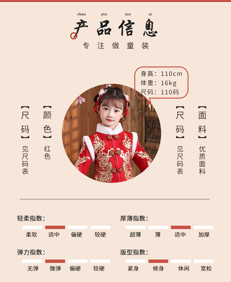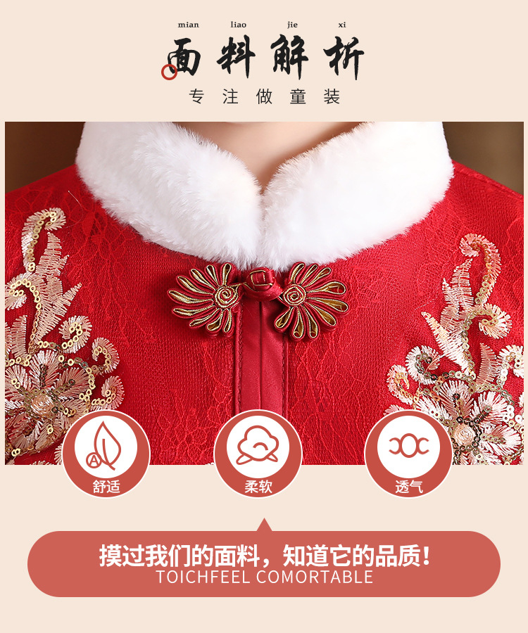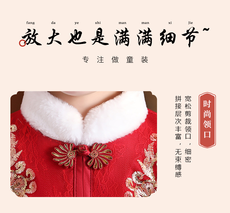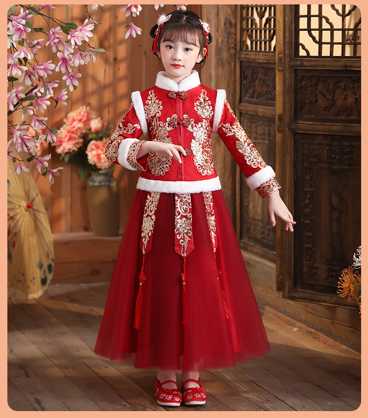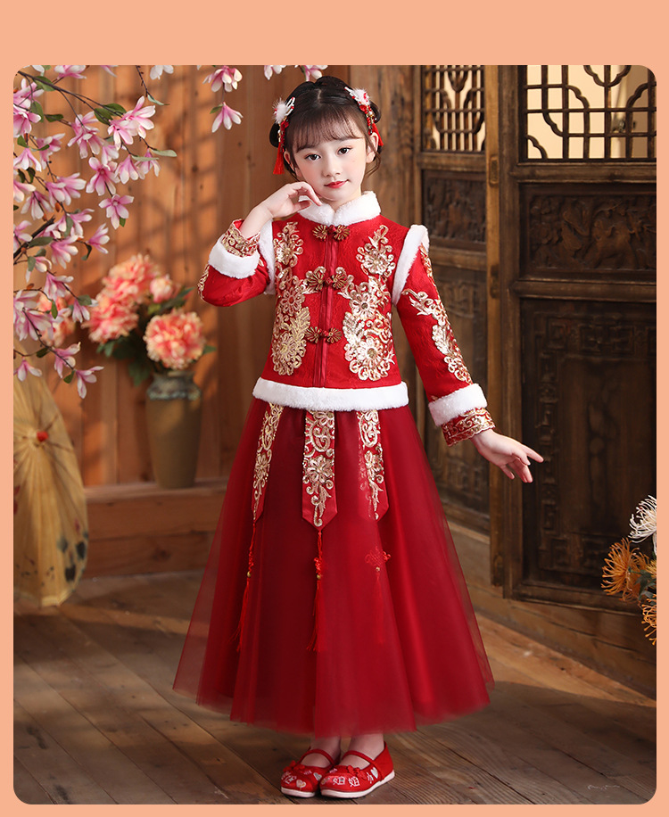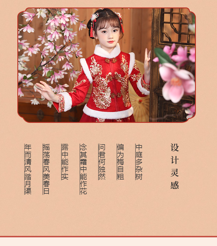 DY-9922汉服女童裙套装秋冬加绒中国风唐装拜年服女孩演出儿童连衣裙