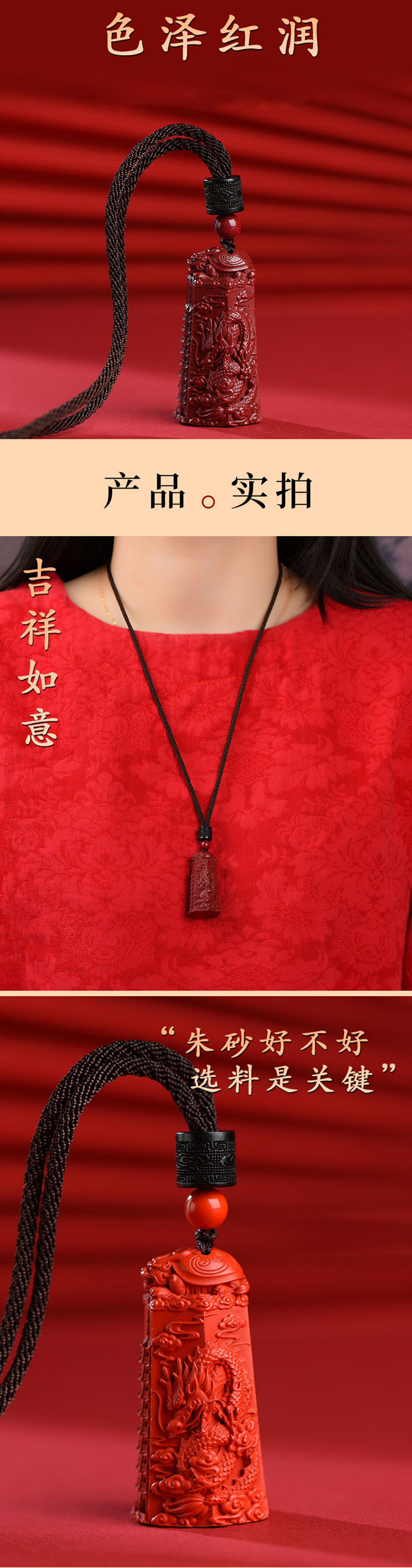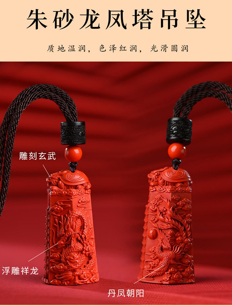 太清朱砂龙凤柱文昌塔吊坠红砂