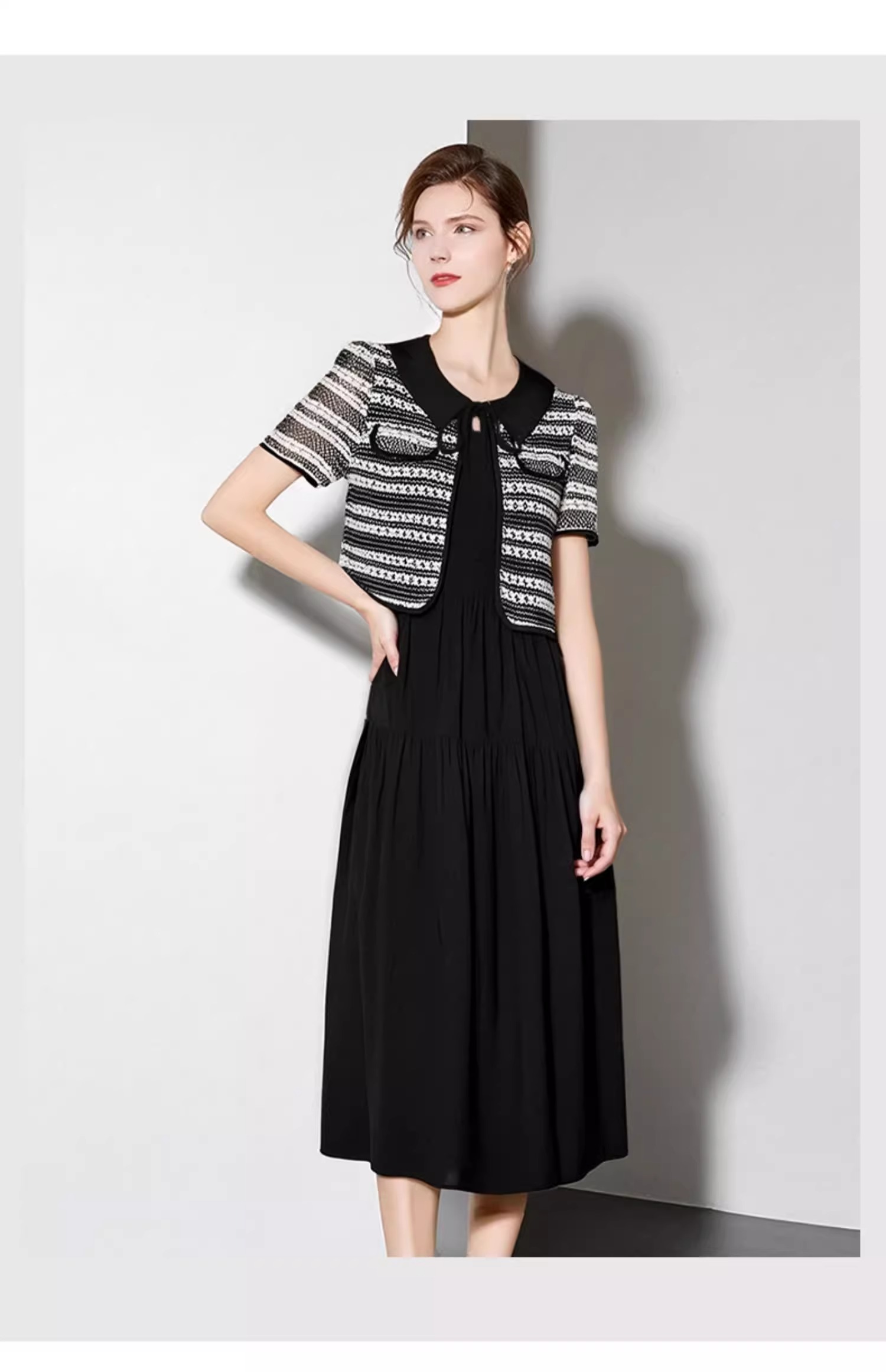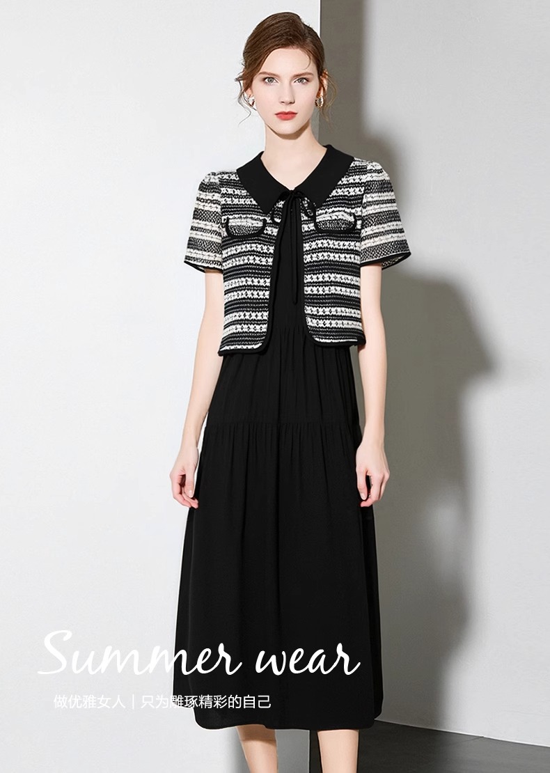 「自」全新升级【铂金会员247/天猫329/差价82】(99219)2025年新款夏季设计感小众时尚气质撞色连衣裙