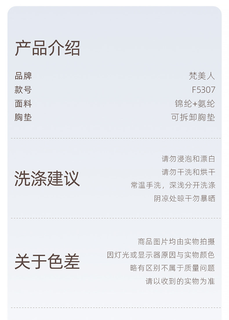 梵美人 F3159 瑜伽文胸 一体固定胸垫 裸感