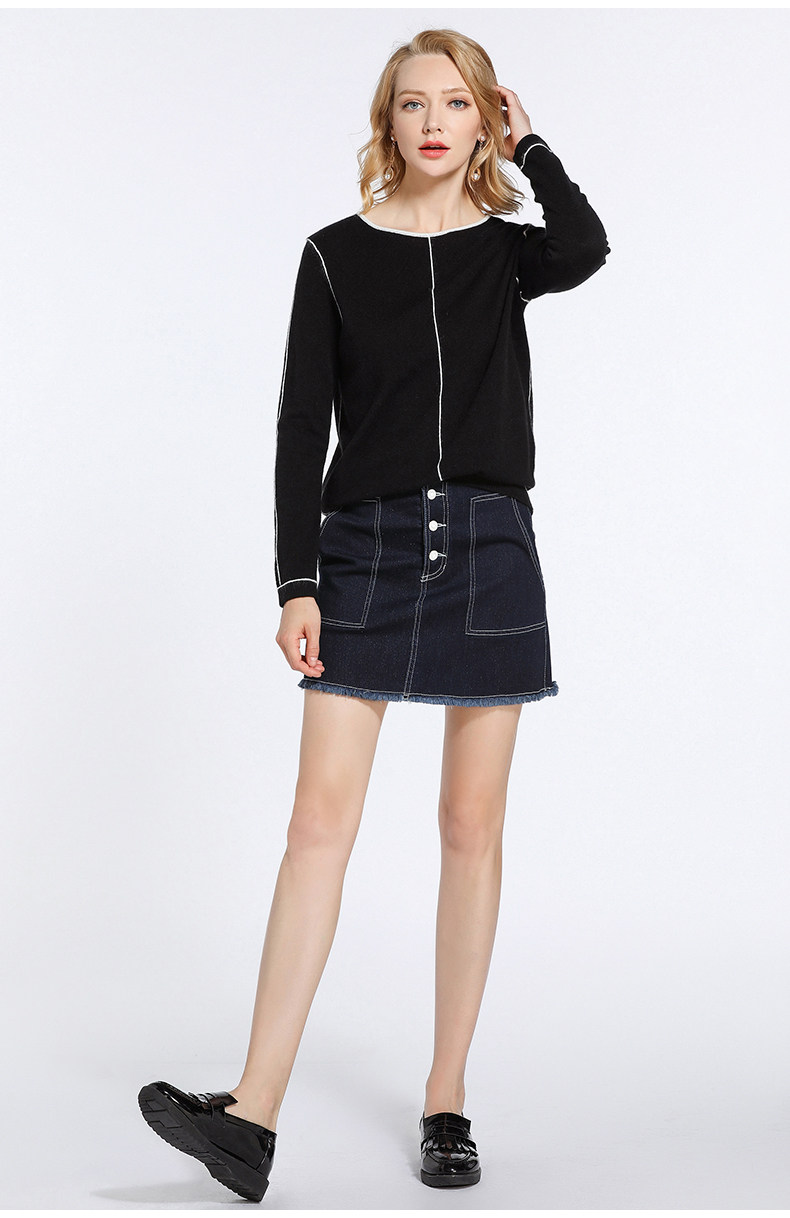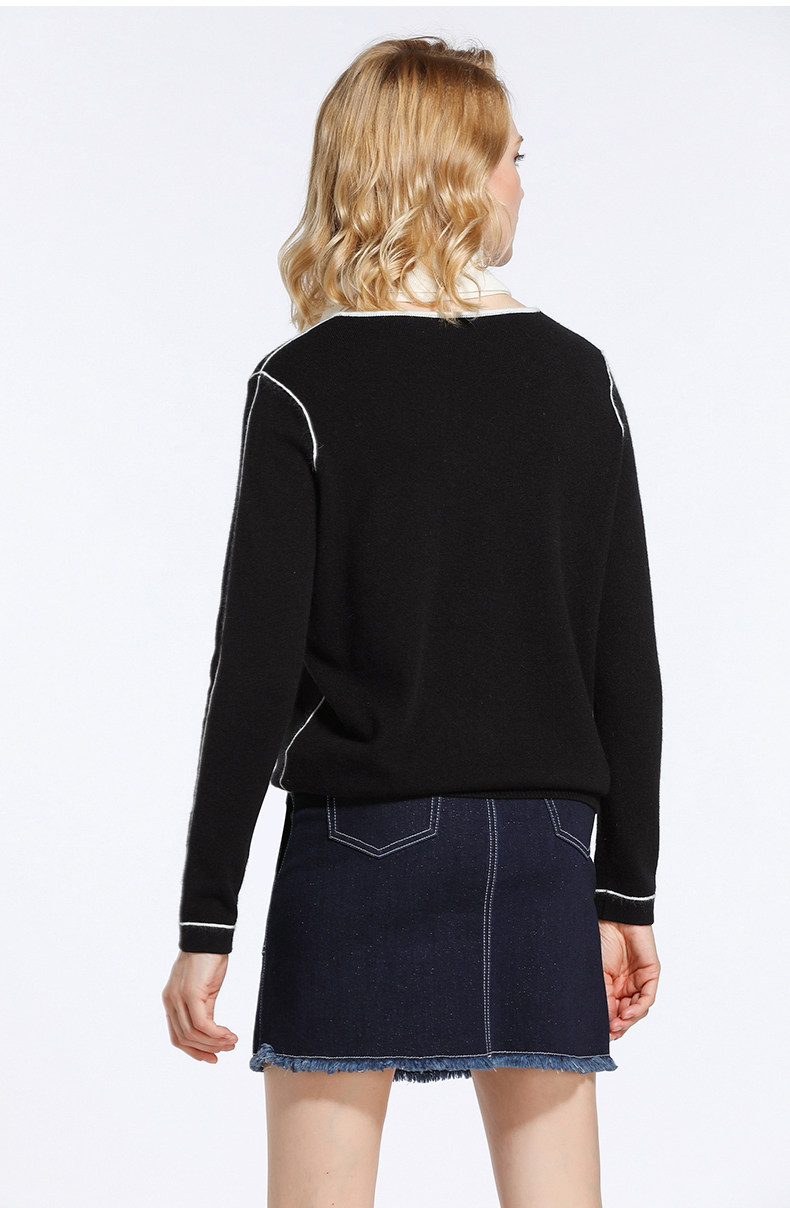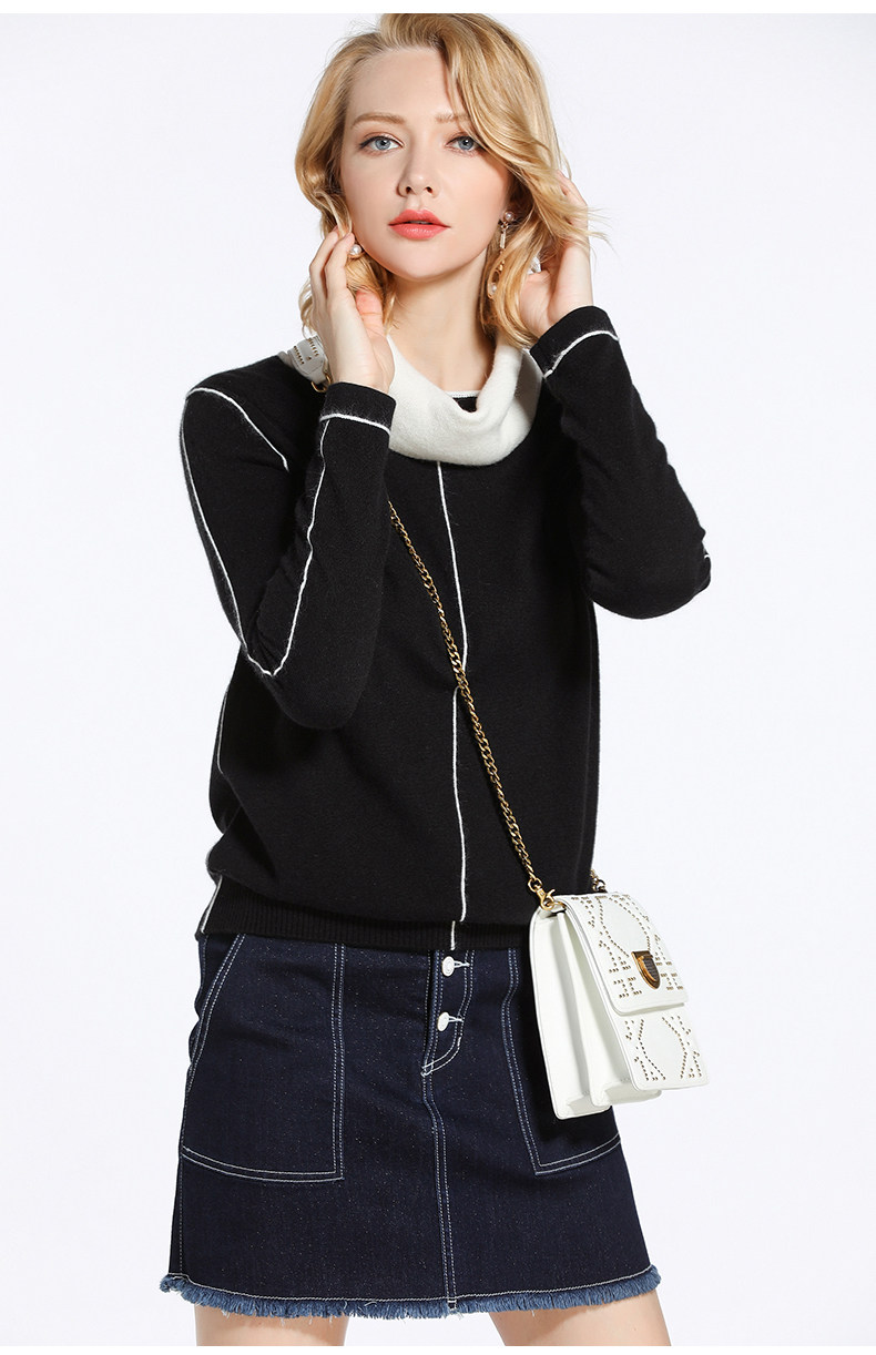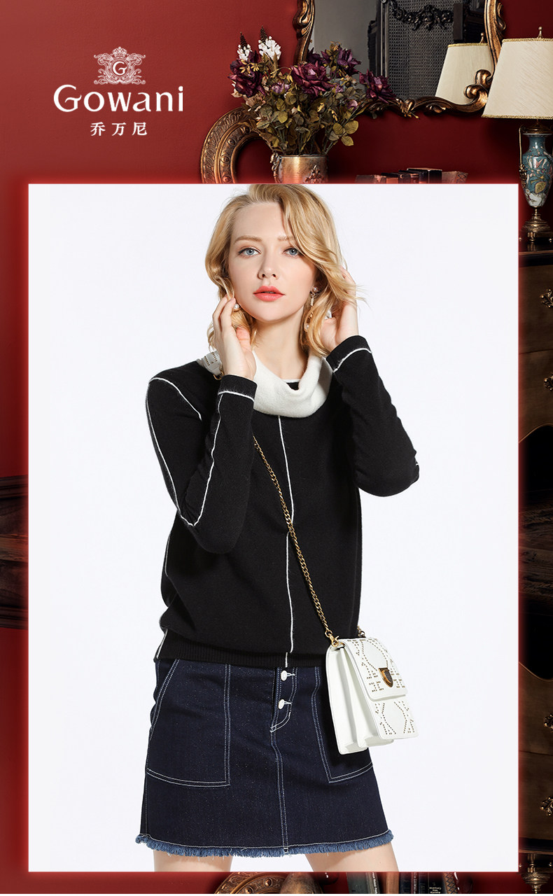 乔万尼羊毛衫女黑色简约宽松外穿针织打底衫上衣冬EB4M007