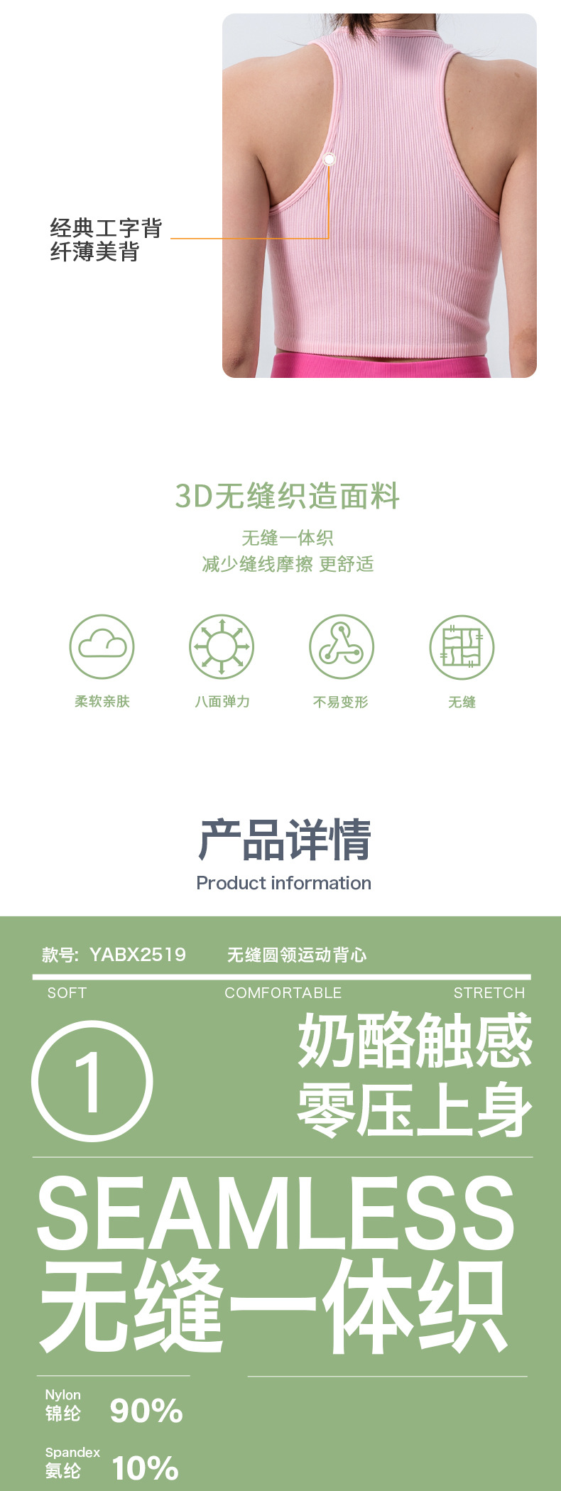 Gymicon能量符号 无缝一体织瑜伽服裸感紧身跑步运动背心健身上衣中强度运动内衣YABX2519