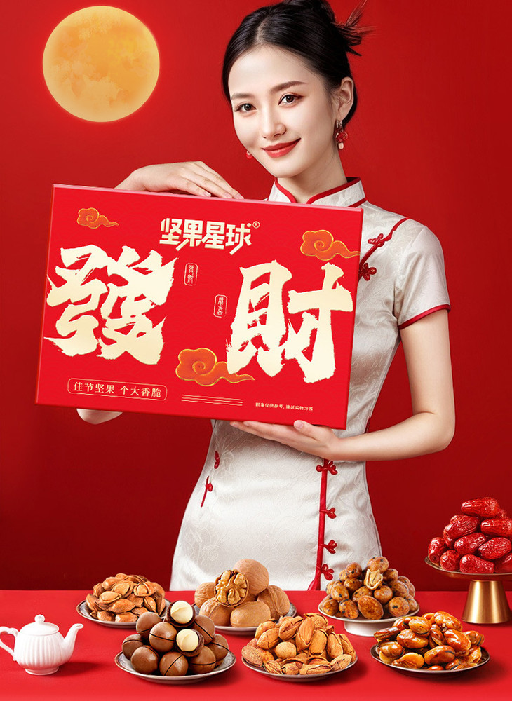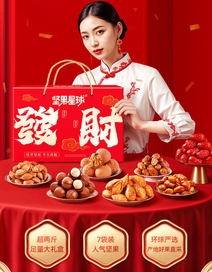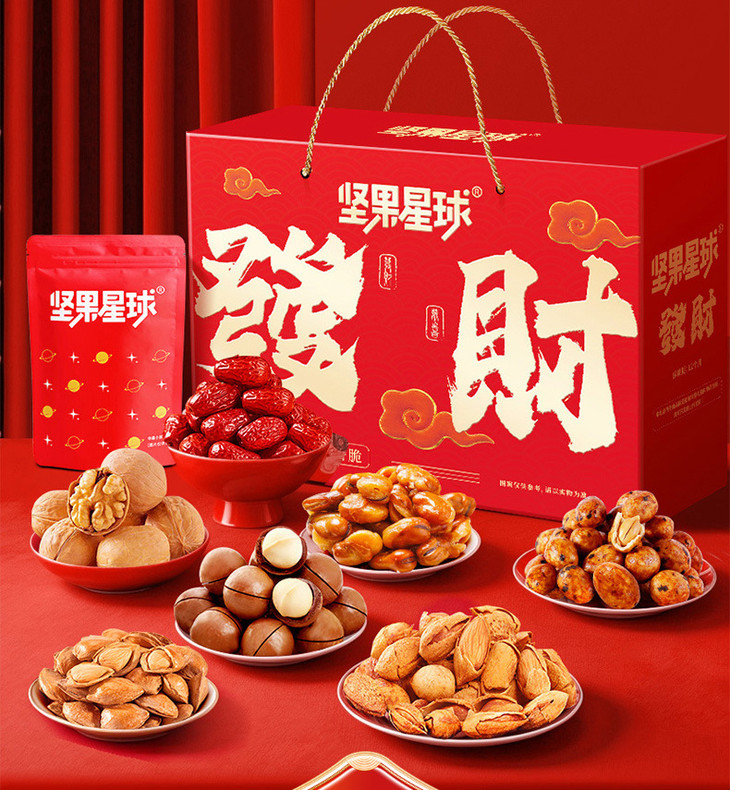 沃隆春节年货礼盒 坚果星球发财礼1010g混合坚果果仁过年 送礼