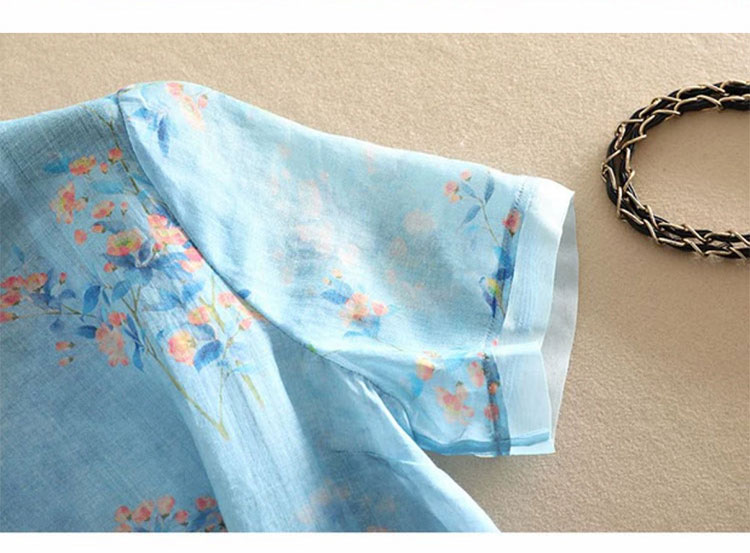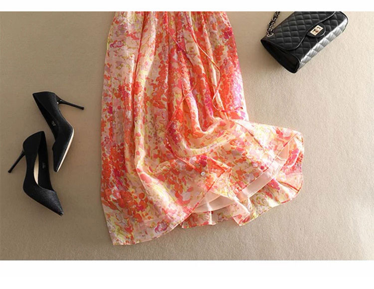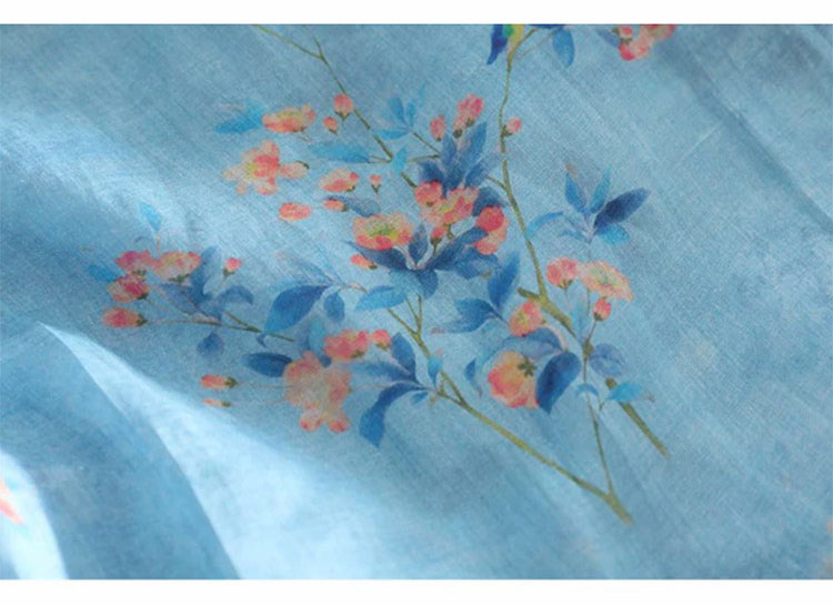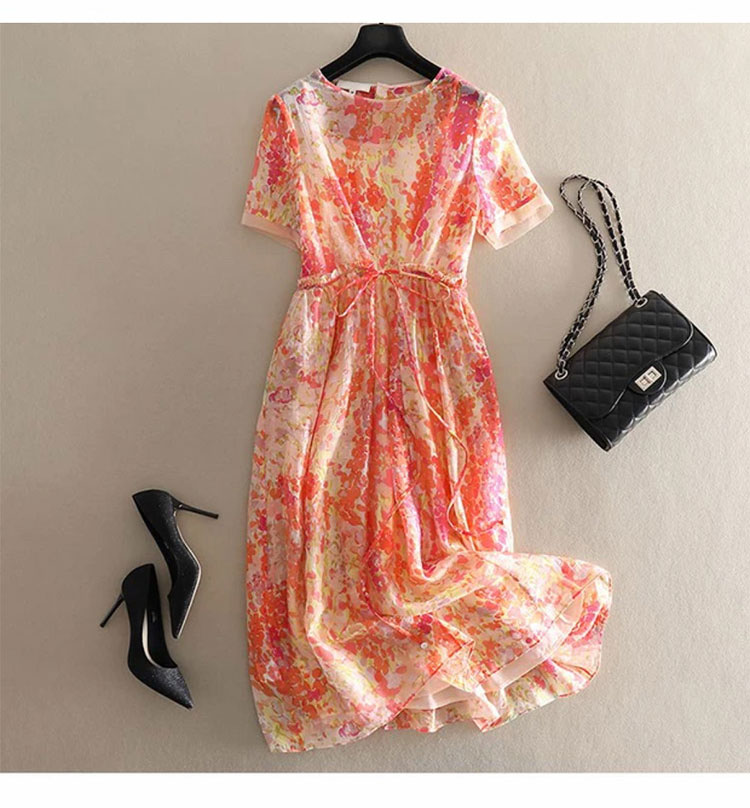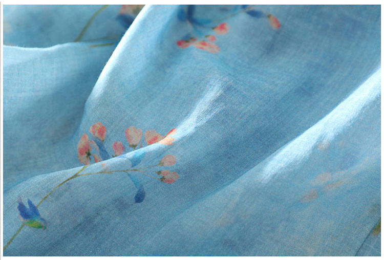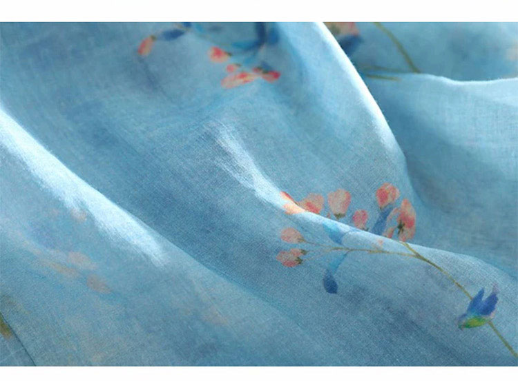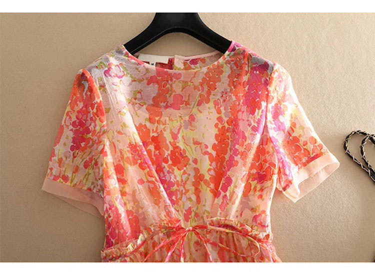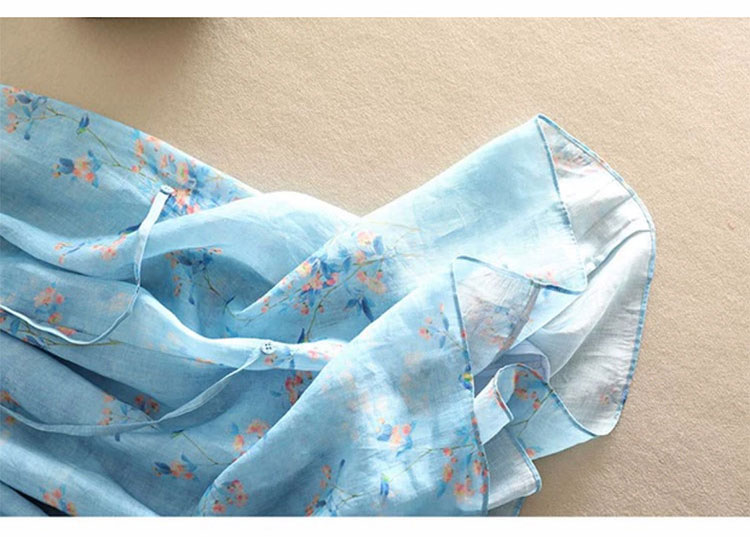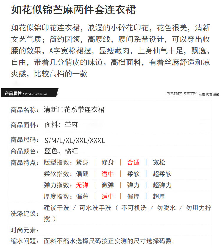 岐氏姐妹 真丝梢苎麻拼接清新印花系带旅行度假复古连衣裙20-146-DS399