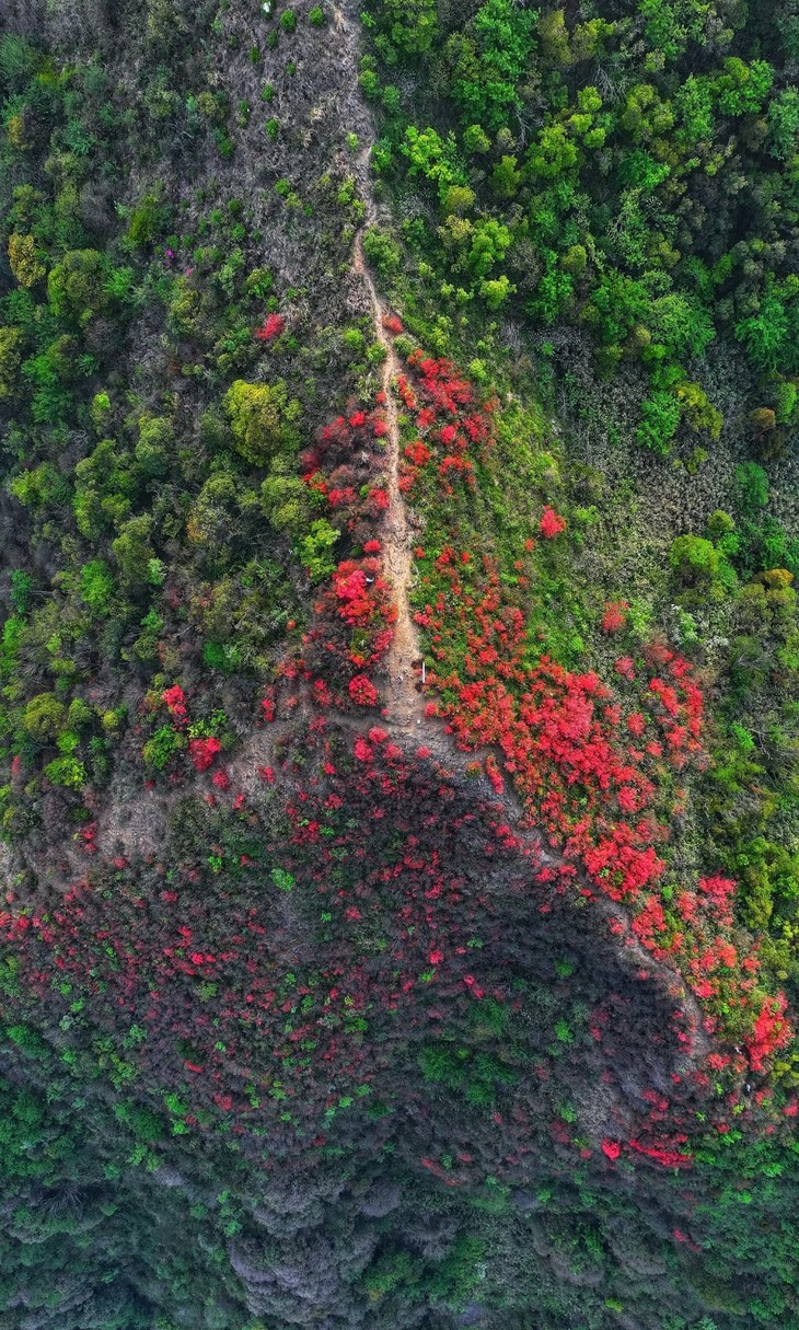 每年3-4月春暖花开的季节,海拔900米以上满山遍野都是红灿灿的杜鹃花,远远看去就像红烛辉映天空,故当地人称之为通天蜡烛。