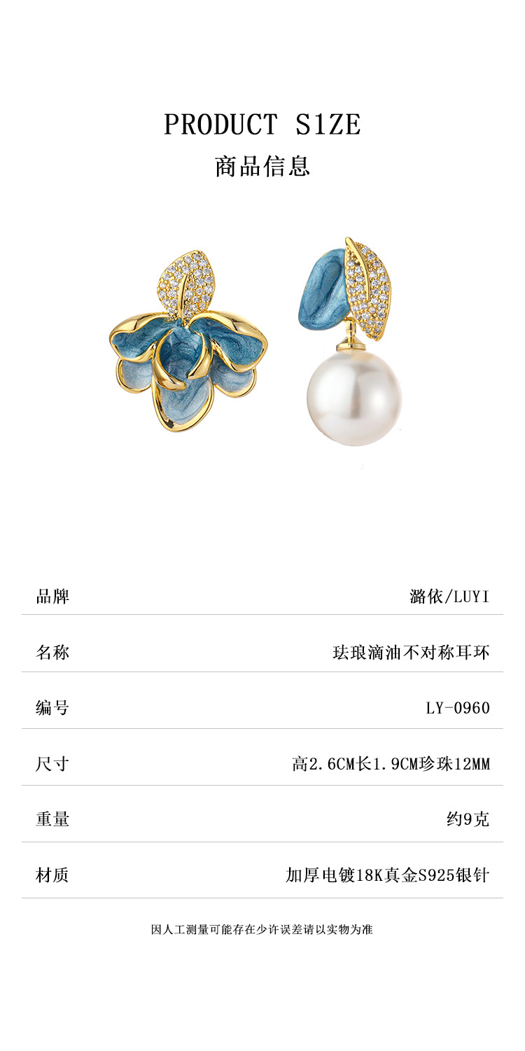 雀说 真金电镀银针滴油花瓣珍珠耳钉法式复古宫廷风耳环LY-0960