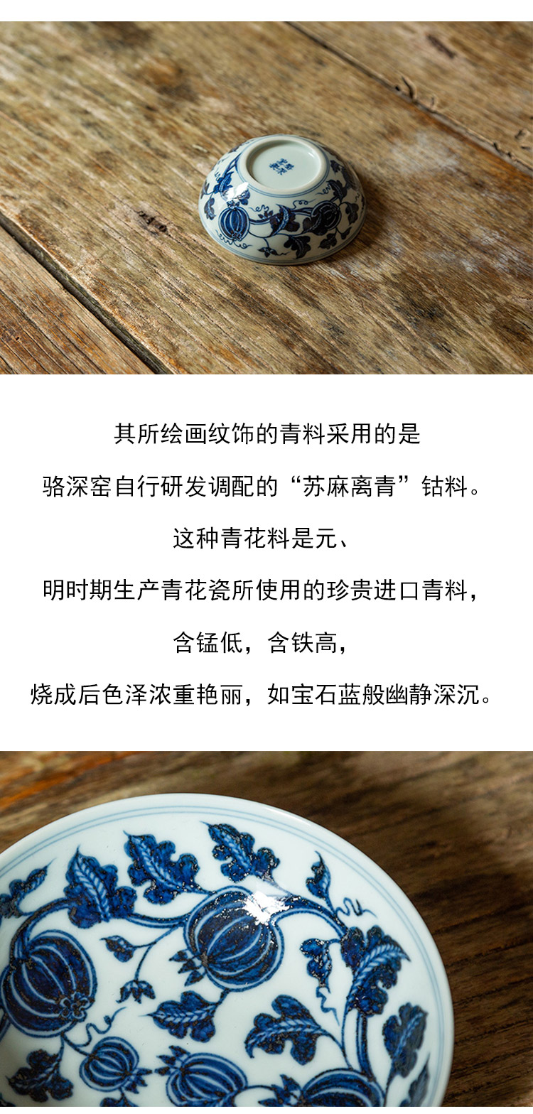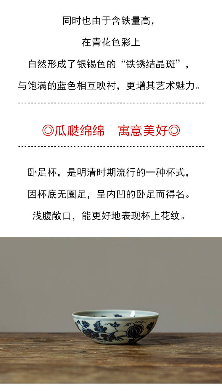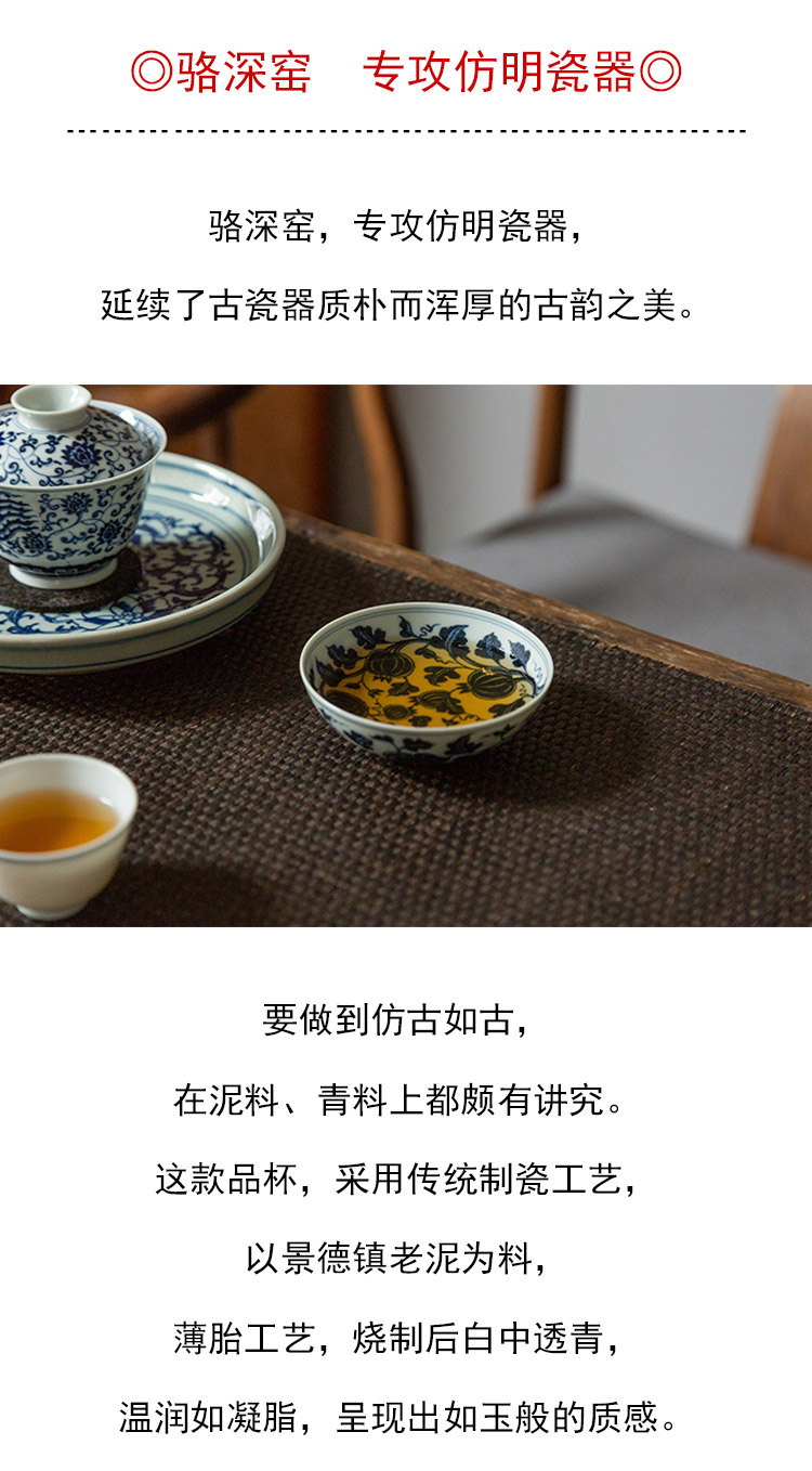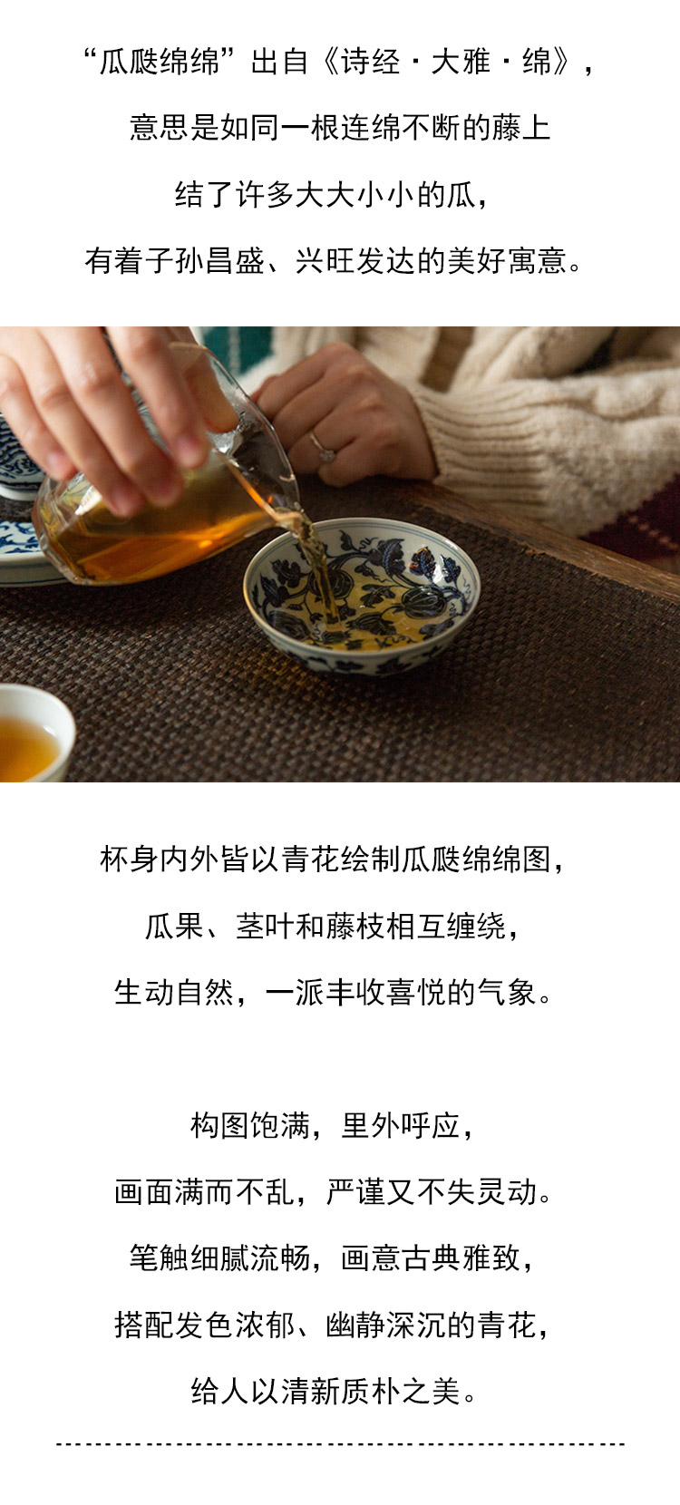 茶香记 景德镇骆深窑仿明青花瓜瓞绵绵杯普洱杯80ml手绘陶瓷茶杯