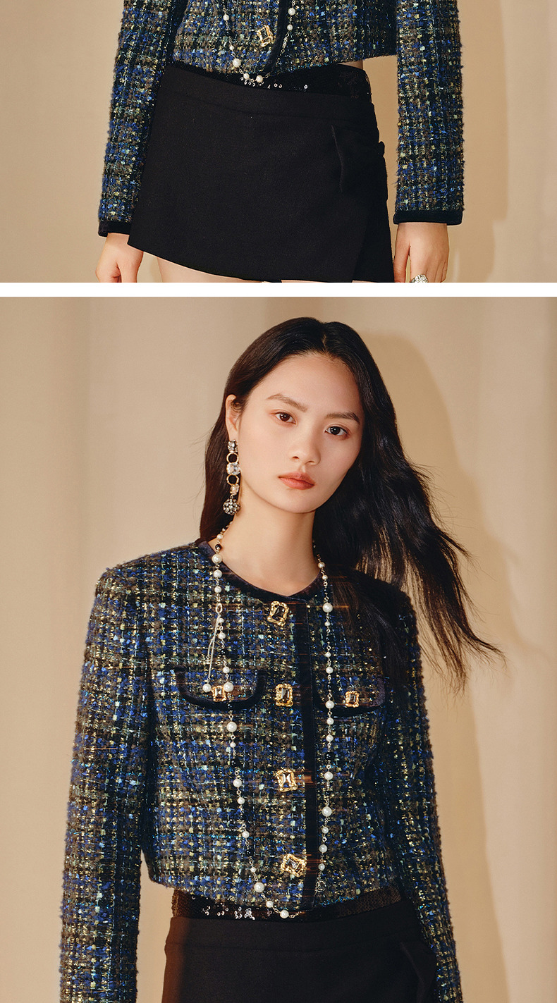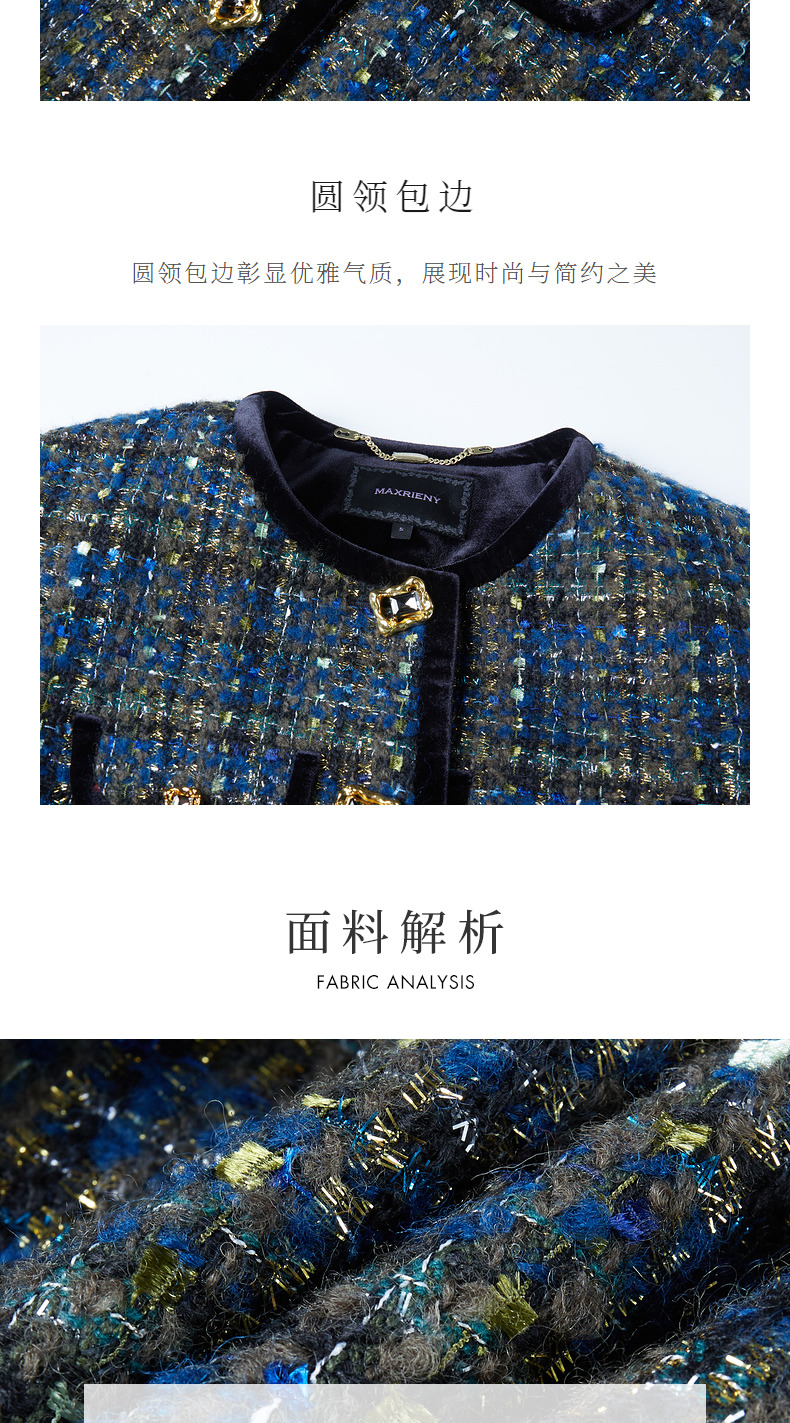 MAXRIENY轻奢气质高级感钻扣外套文艺复古感上衣女(货号:MC88JA818)