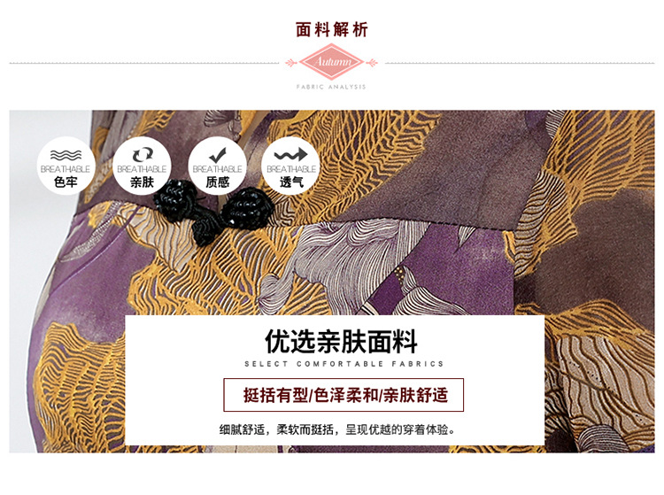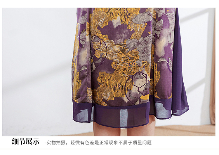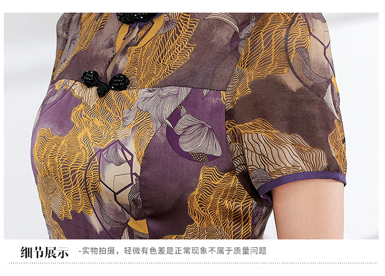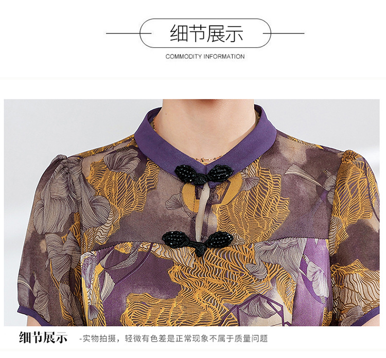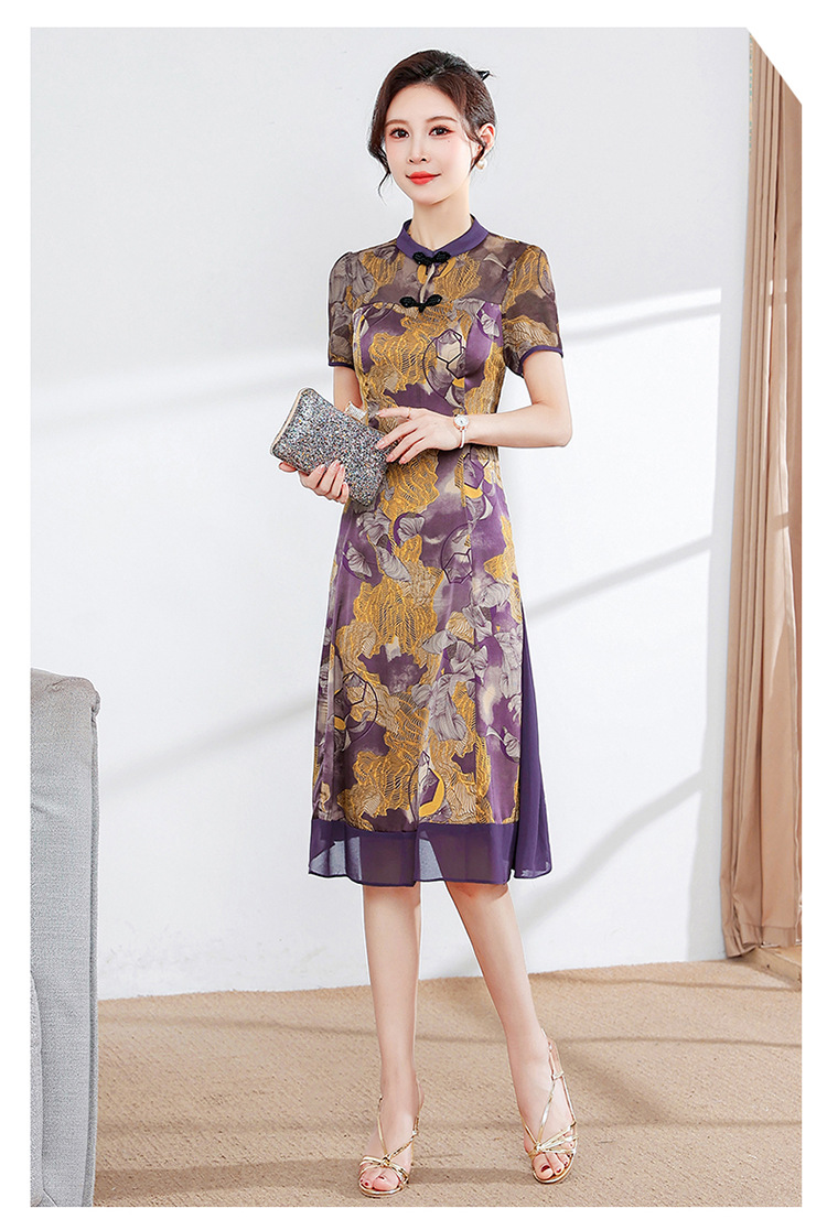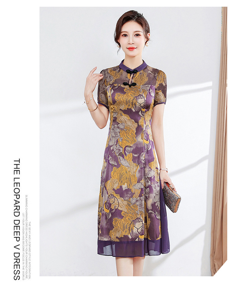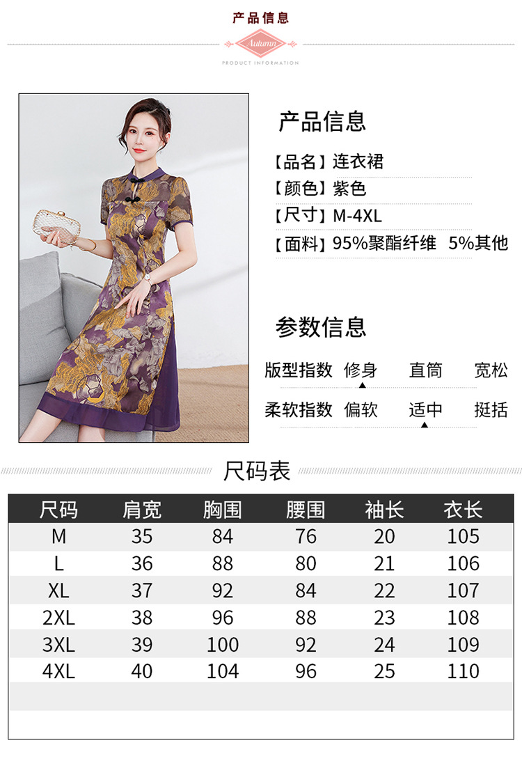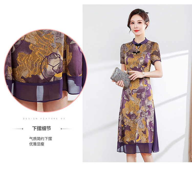 QYM-23TA52-Y复古旗袍裙夏季新款短袖裙中长款印花裙时尚气质妈妈装连衣裙