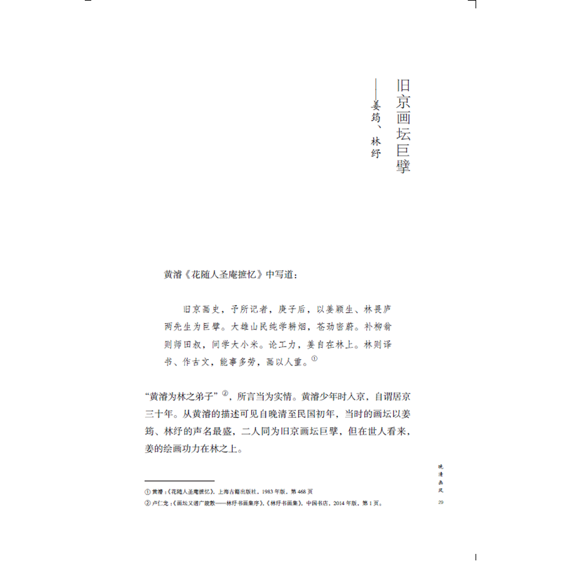 民国时间短暂。很多画家由晚清、历民国而至新中国,不好划定其时间界线,且艺术本身的流变不会如同国体变更、政体更迭这般鲜明,很多改变循序渐进,有些则是一直延续。新中国成立后,在革命方针、路线指导下,很多画家“在新生活的洪流中改造自我”用传统技法反映现实生活,作品呈现了不同面貌。因此,本书由晚清开始,截止到新中国建立之前。