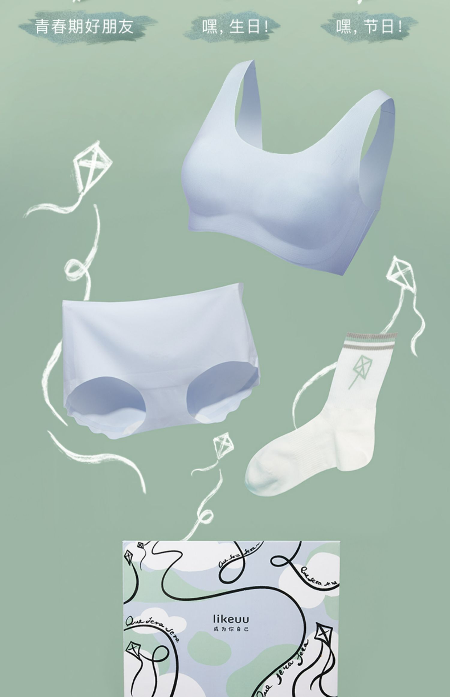 likeuu周年限定风筝多场景日常运动礼盒内衣内裤袜子小初高中女童