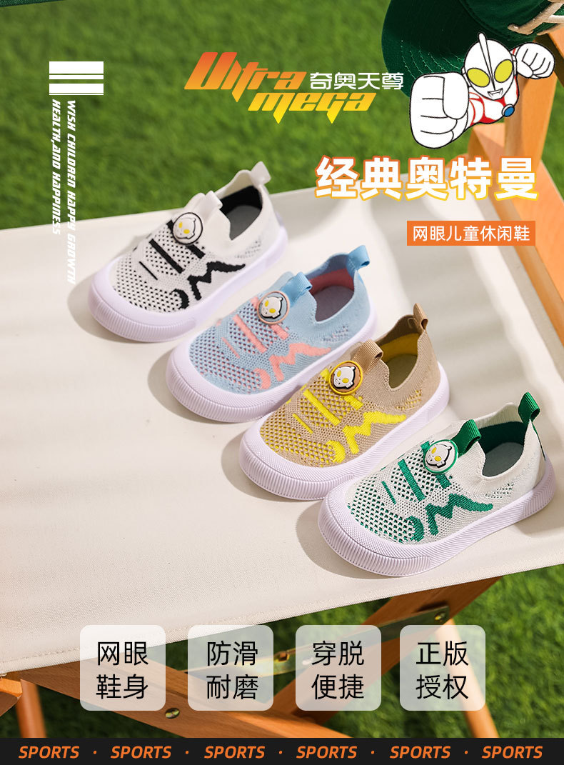【经典奥特曼,网眼儿童休闲鞋!】奥特曼正版授权儿童运动鞋 春夏新款男童单鞋 时尚透气飞织套脚板鞋-QQ