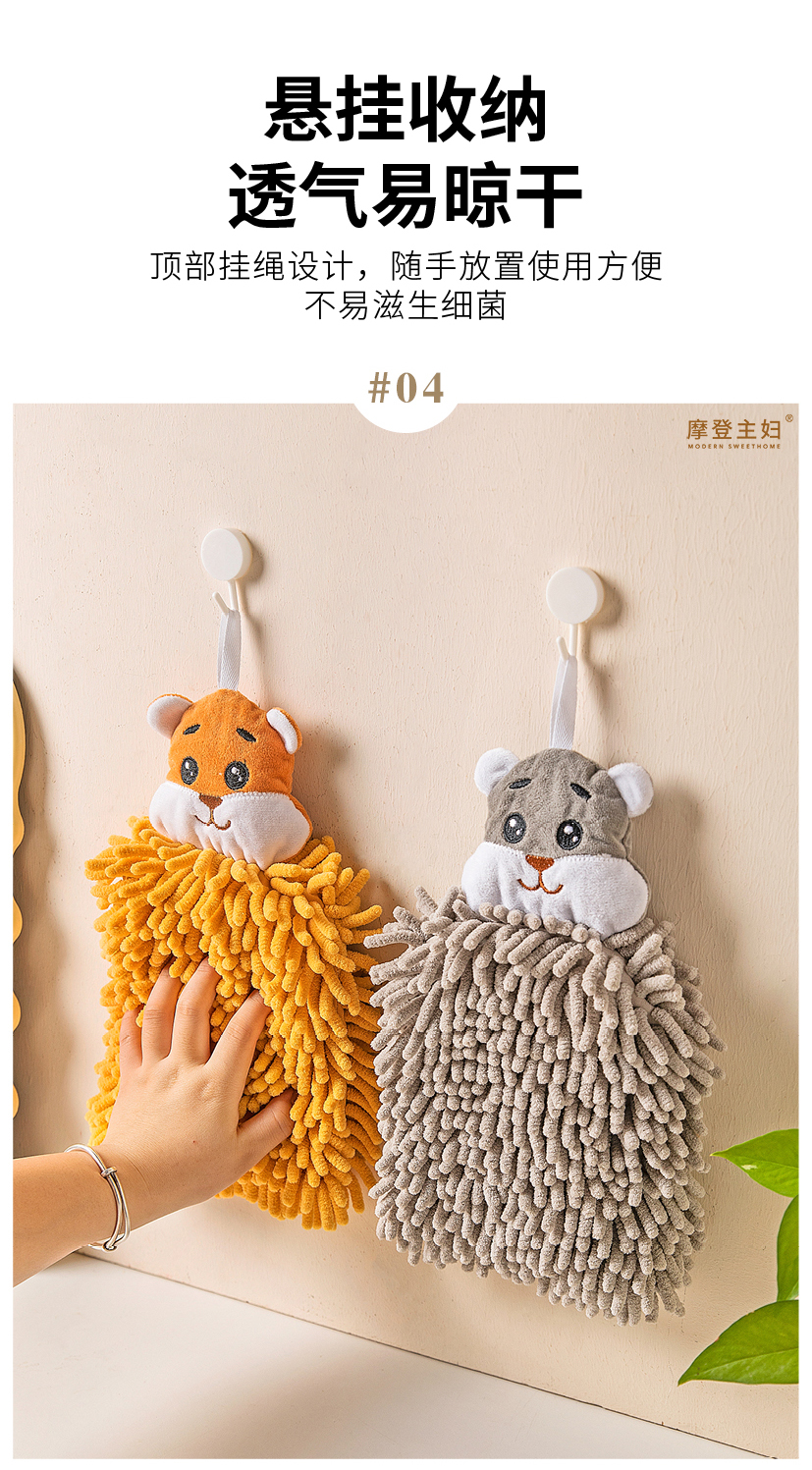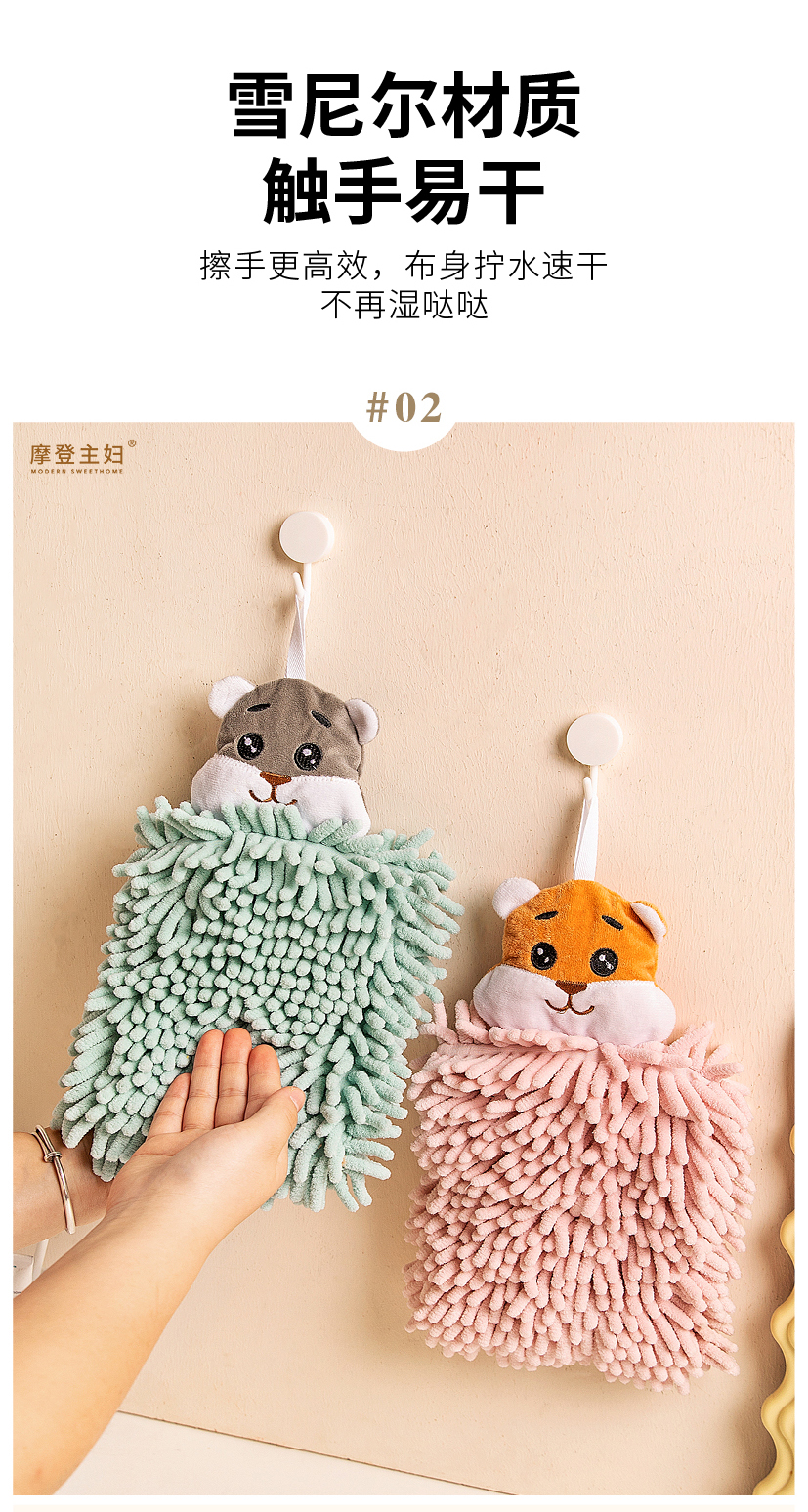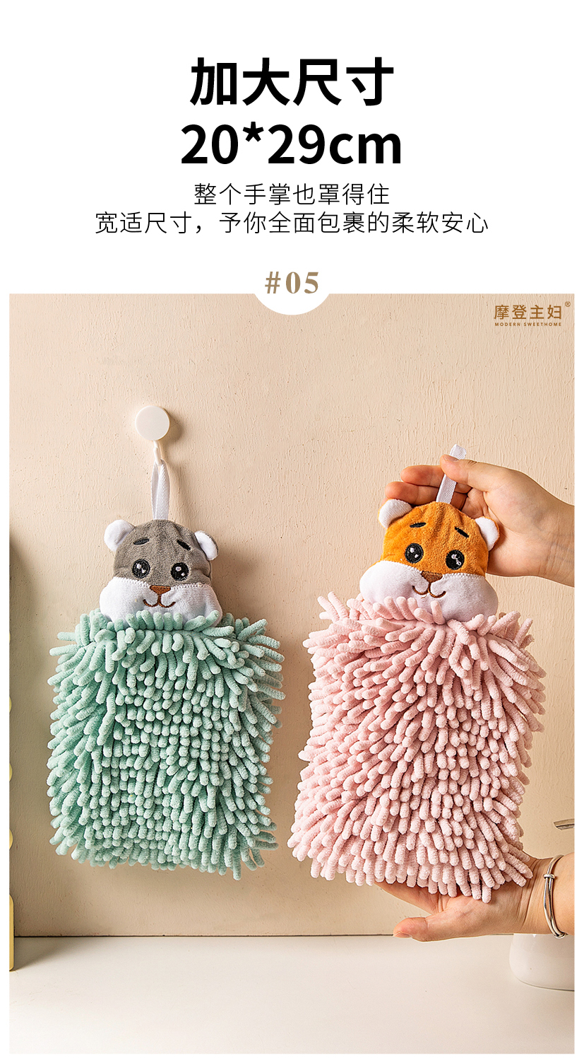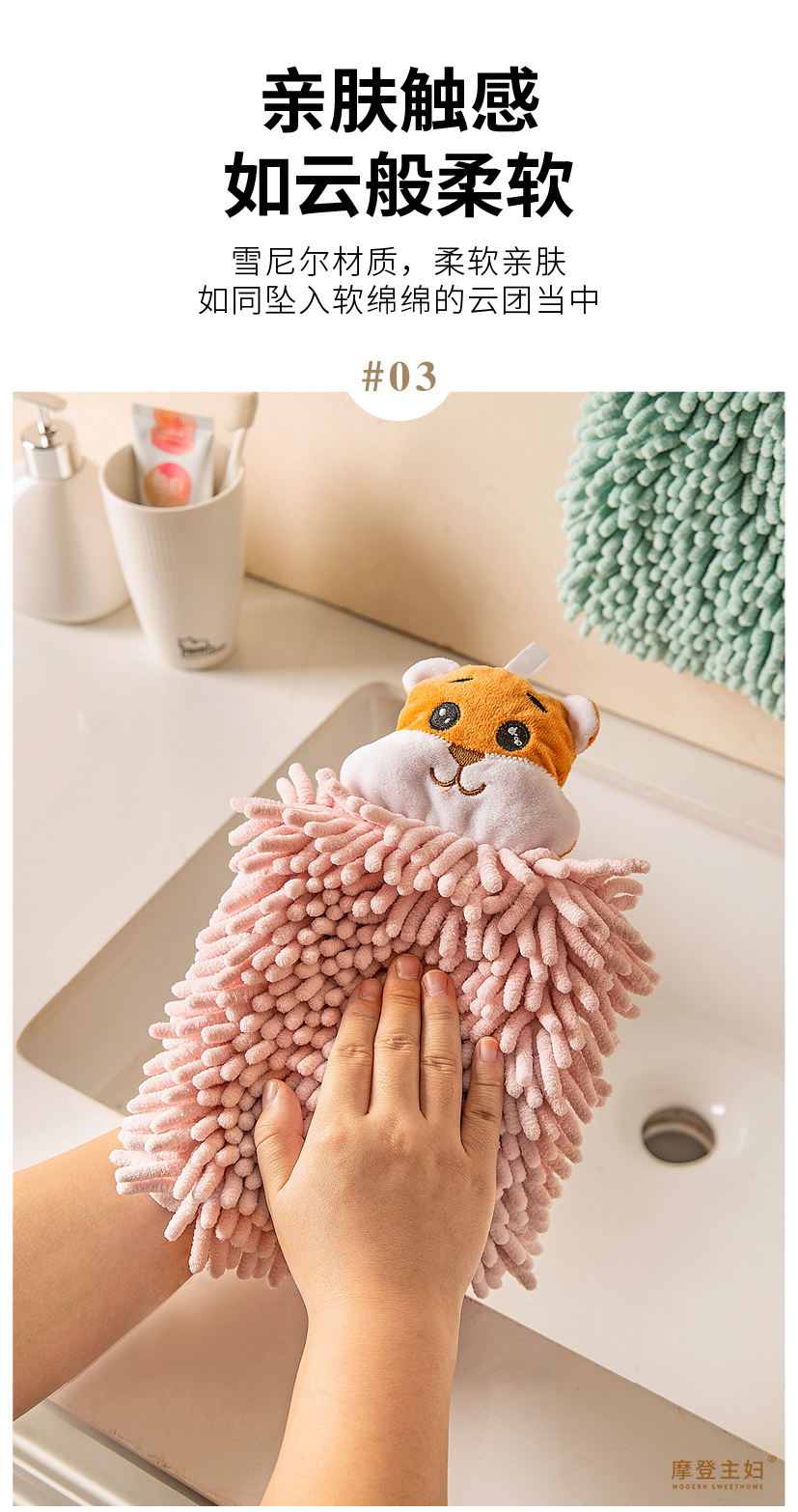 摩登主妇雪尼尔擦手巾挂式可爱厨房卫生间吸水加厚高颜值儿童毛巾