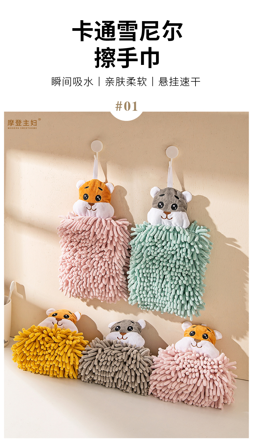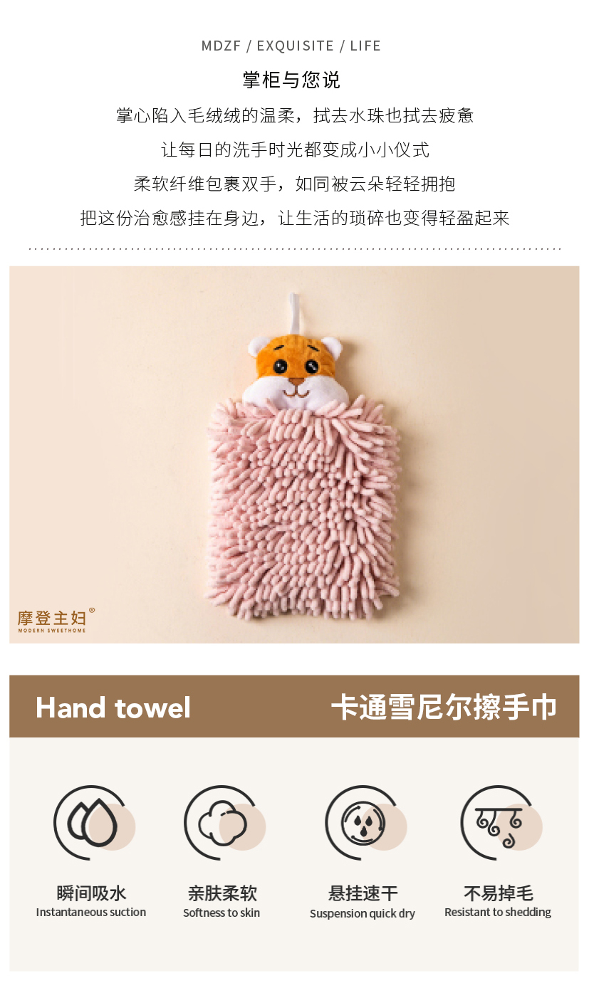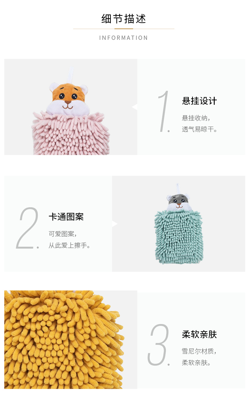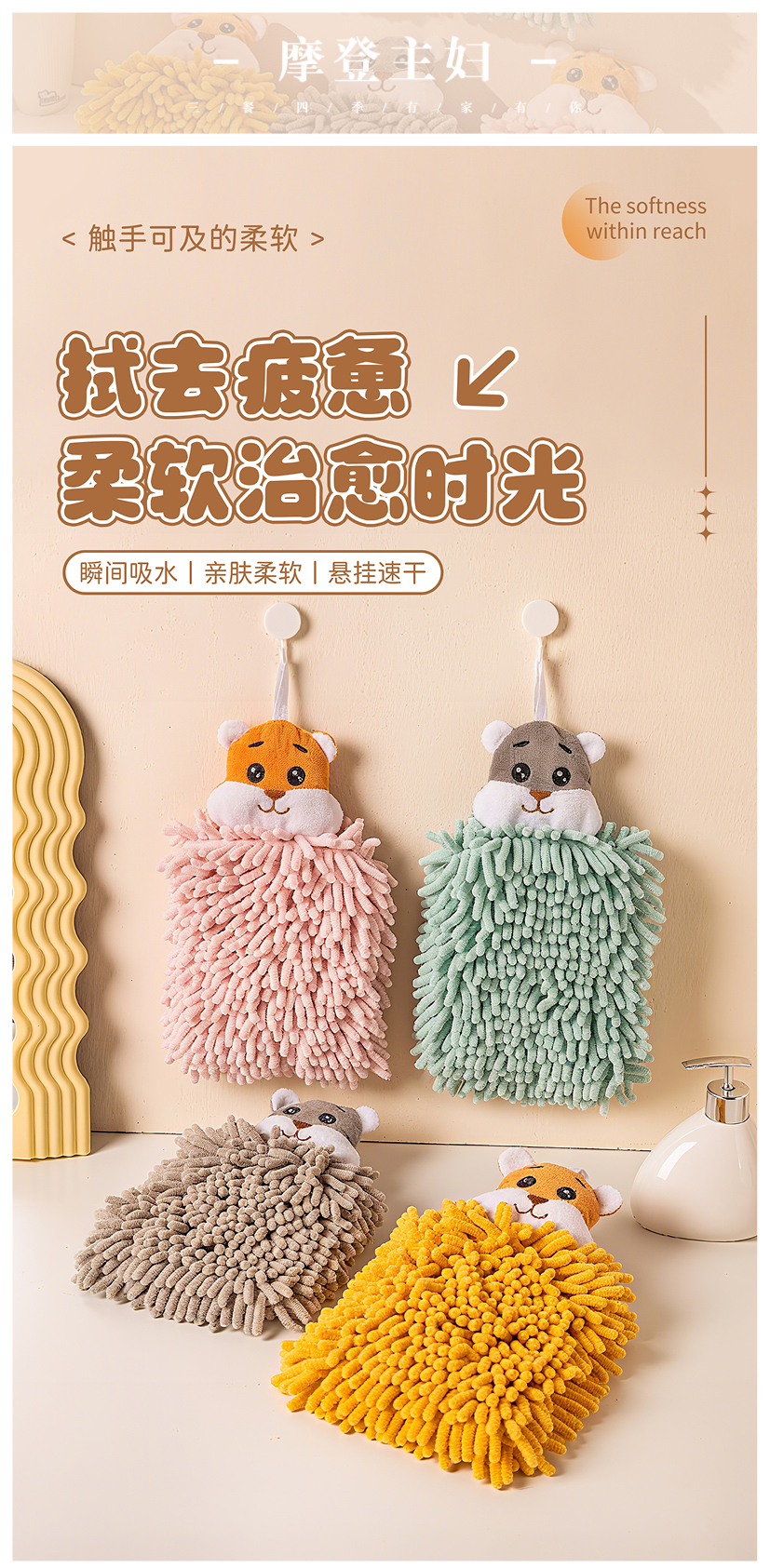 摩登主妇雪尼尔擦手巾挂式可爱厨房卫生间吸水加厚高颜值儿童毛巾