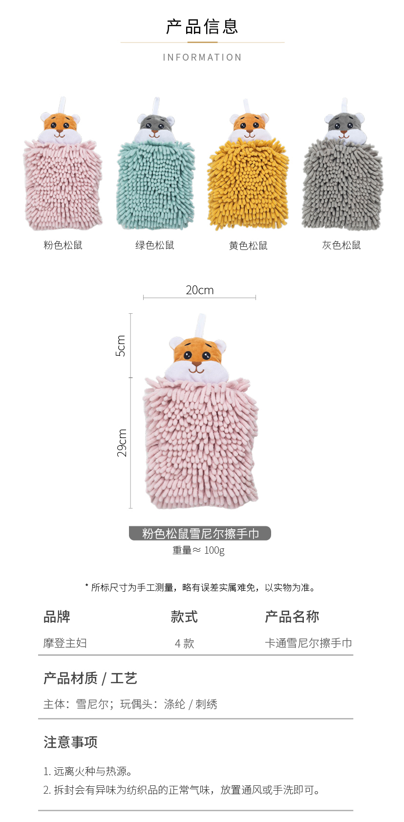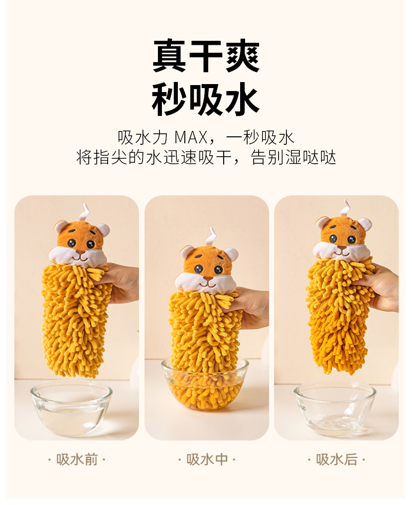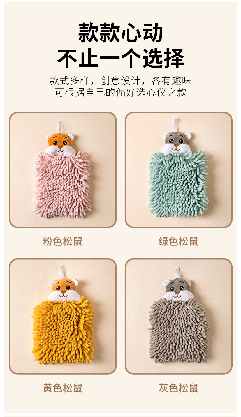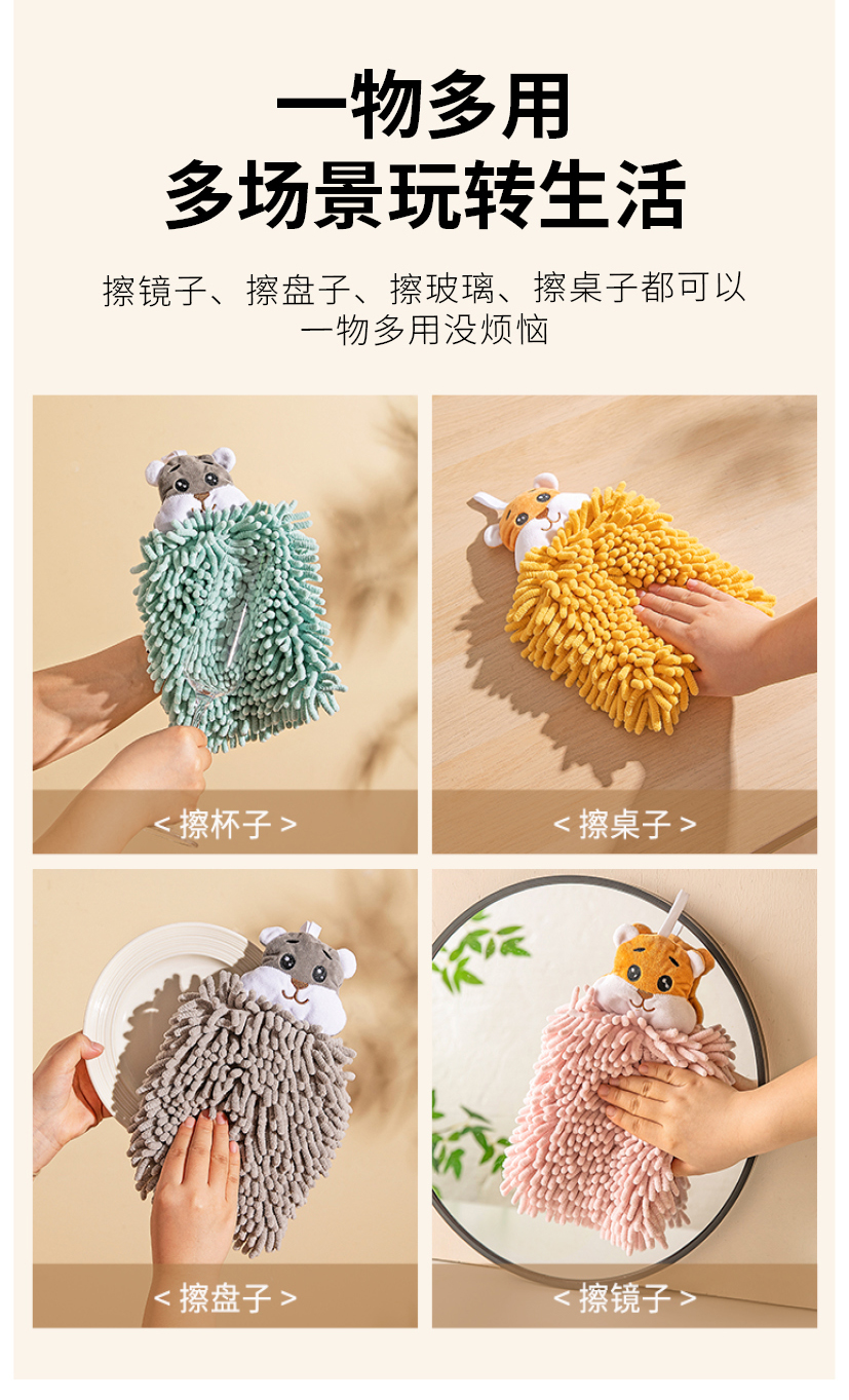 摩登主妇雪尼尔擦手巾挂式可爱厨房卫生间吸水加厚高颜值儿童毛巾
