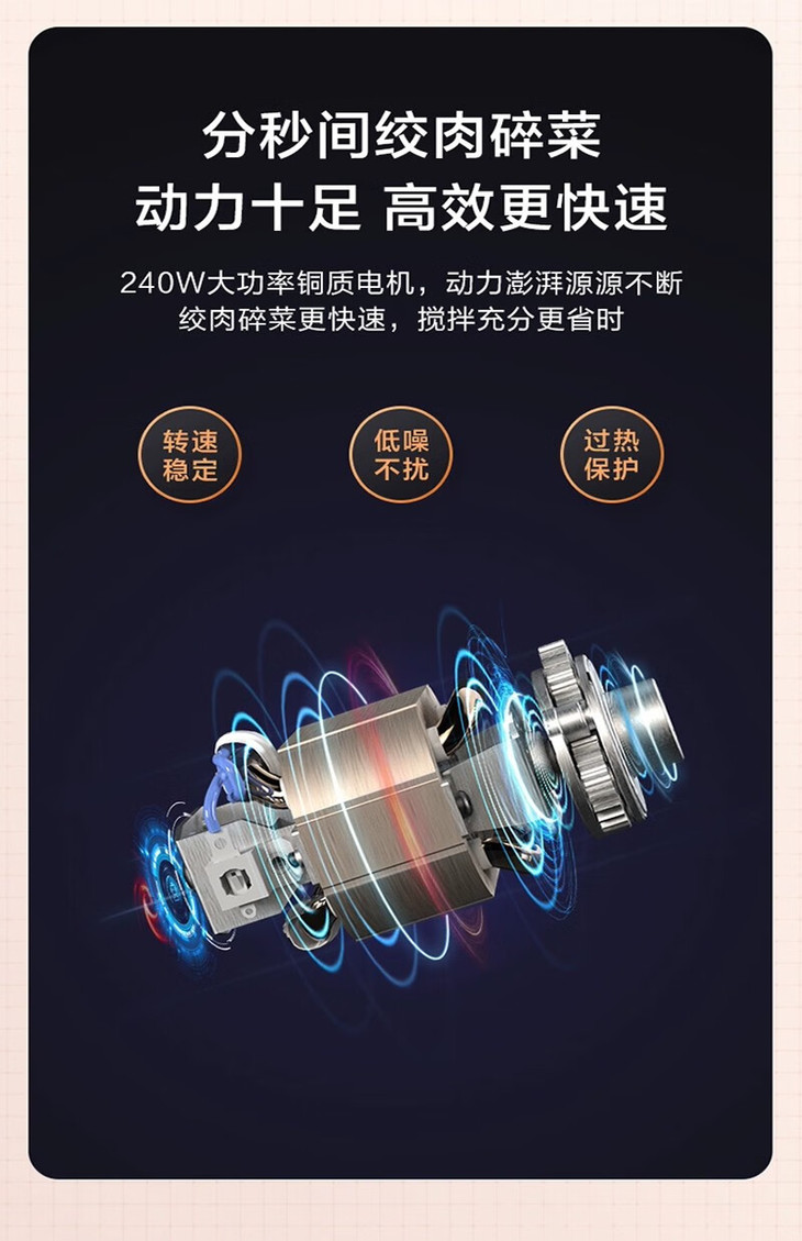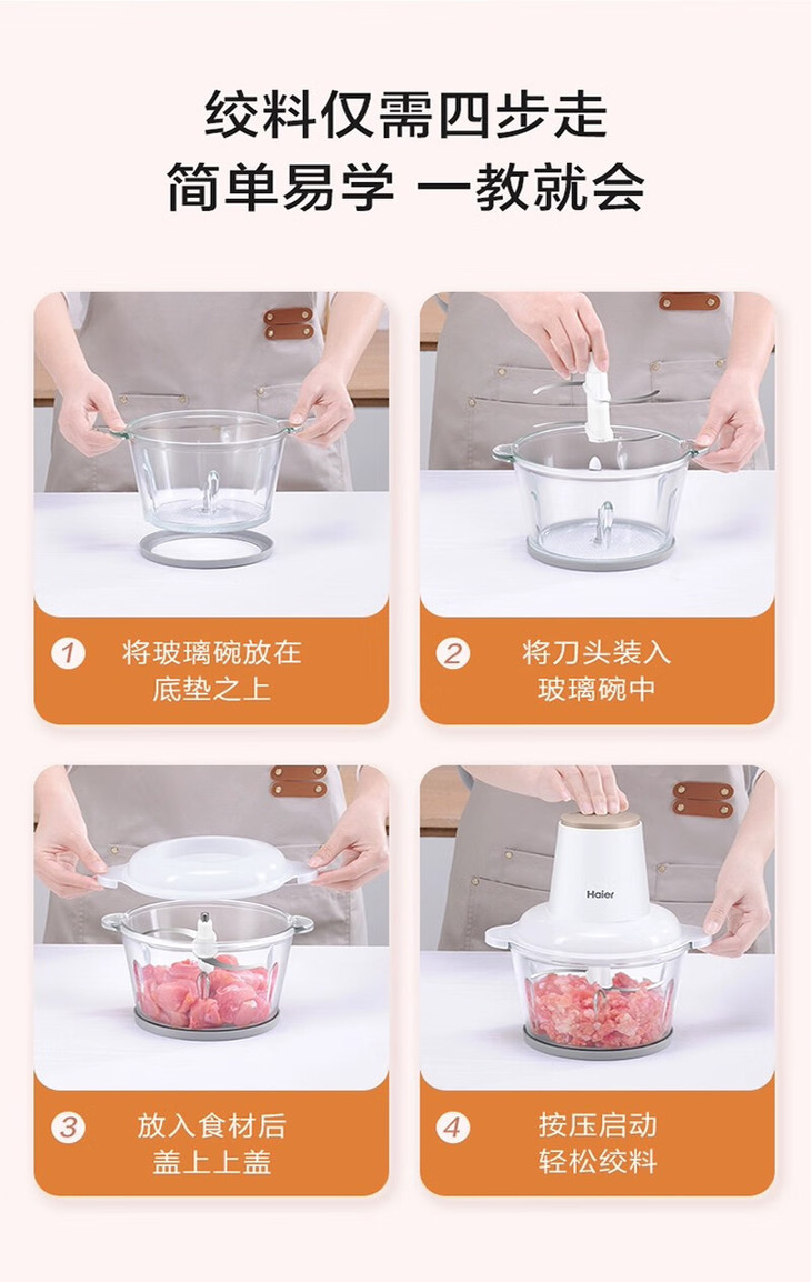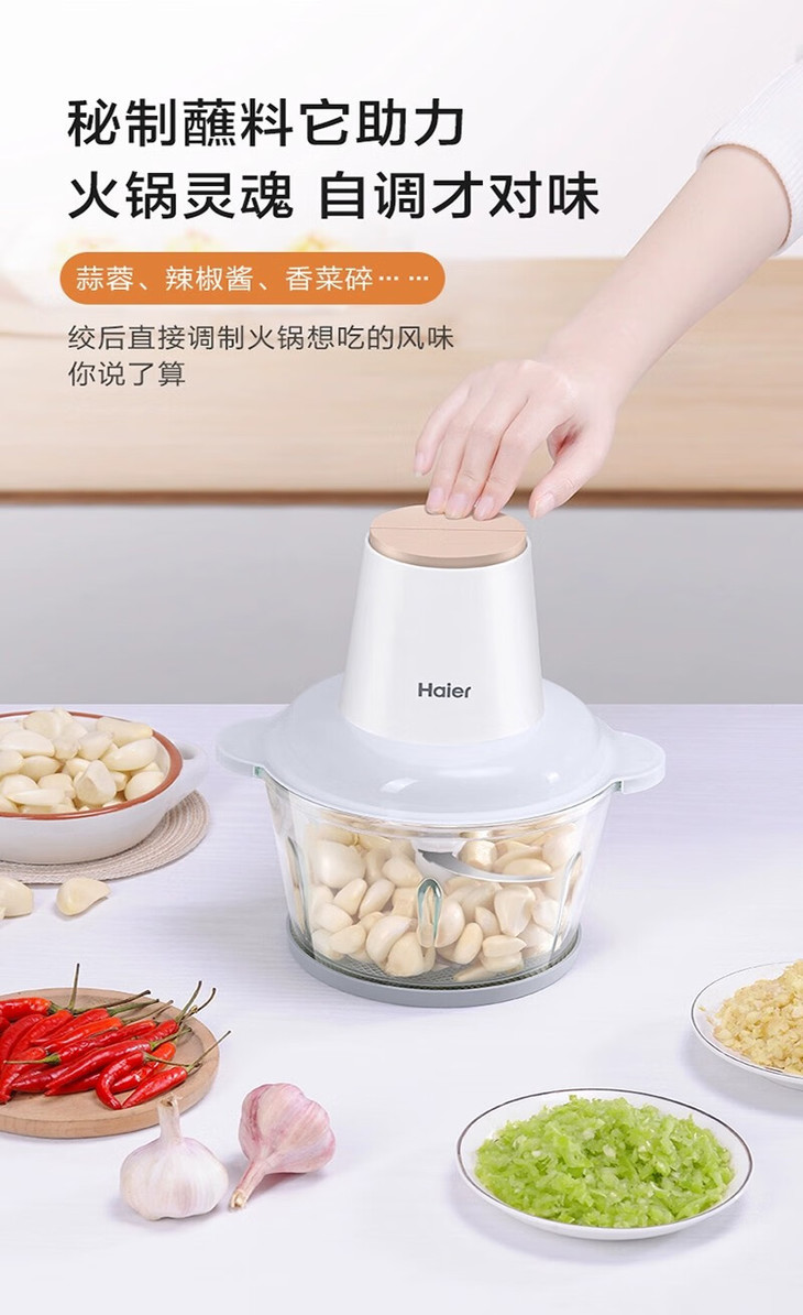 【海尔】家用绞肉机HJR-DK1AWZ绞馅机1.8L容量 双层四页刀头加厚玻璃材质