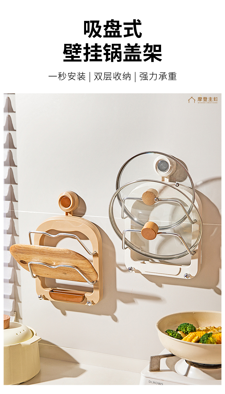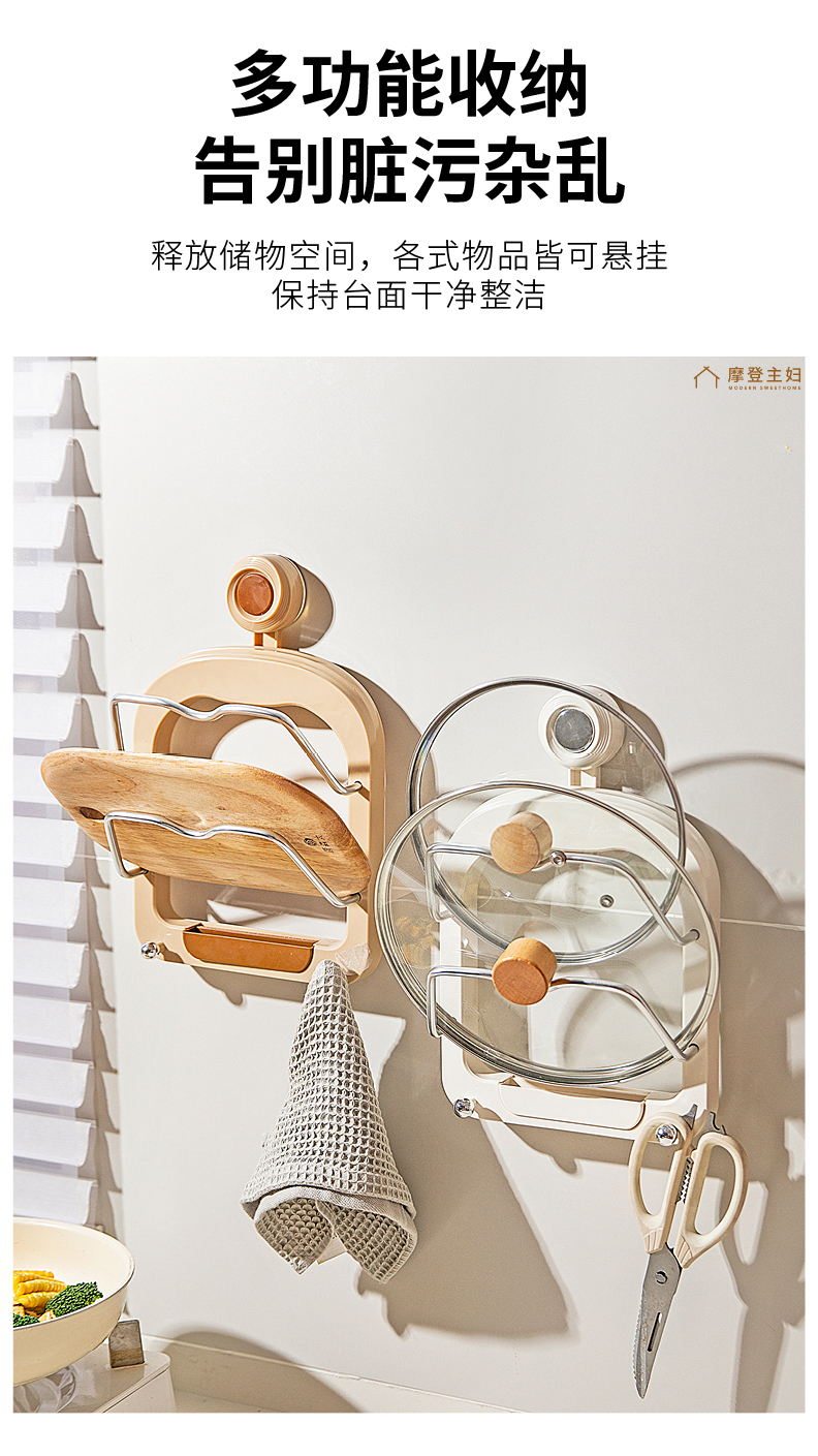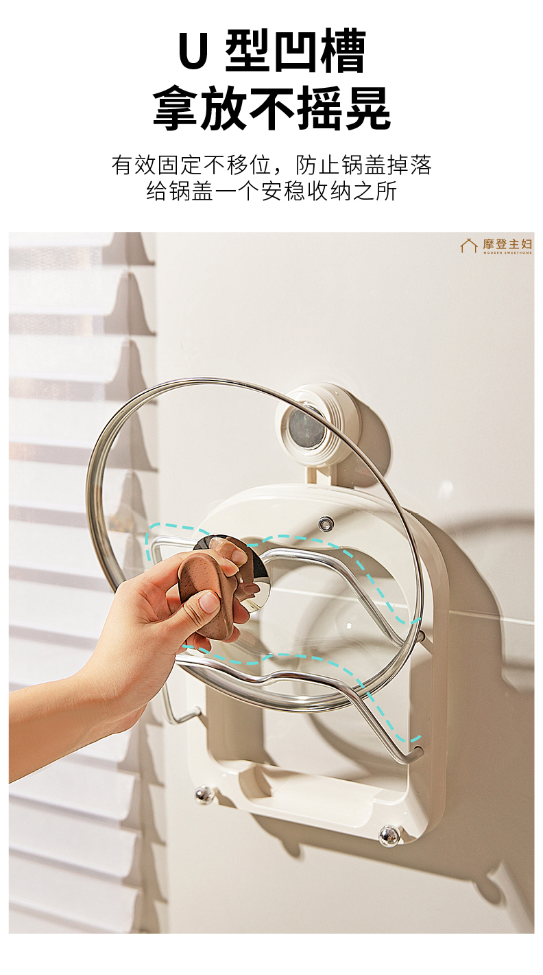 摩登主妇吸盘旋转锅盖架壁挂免打孔厨房菜板收纳架锅盖放置架神器