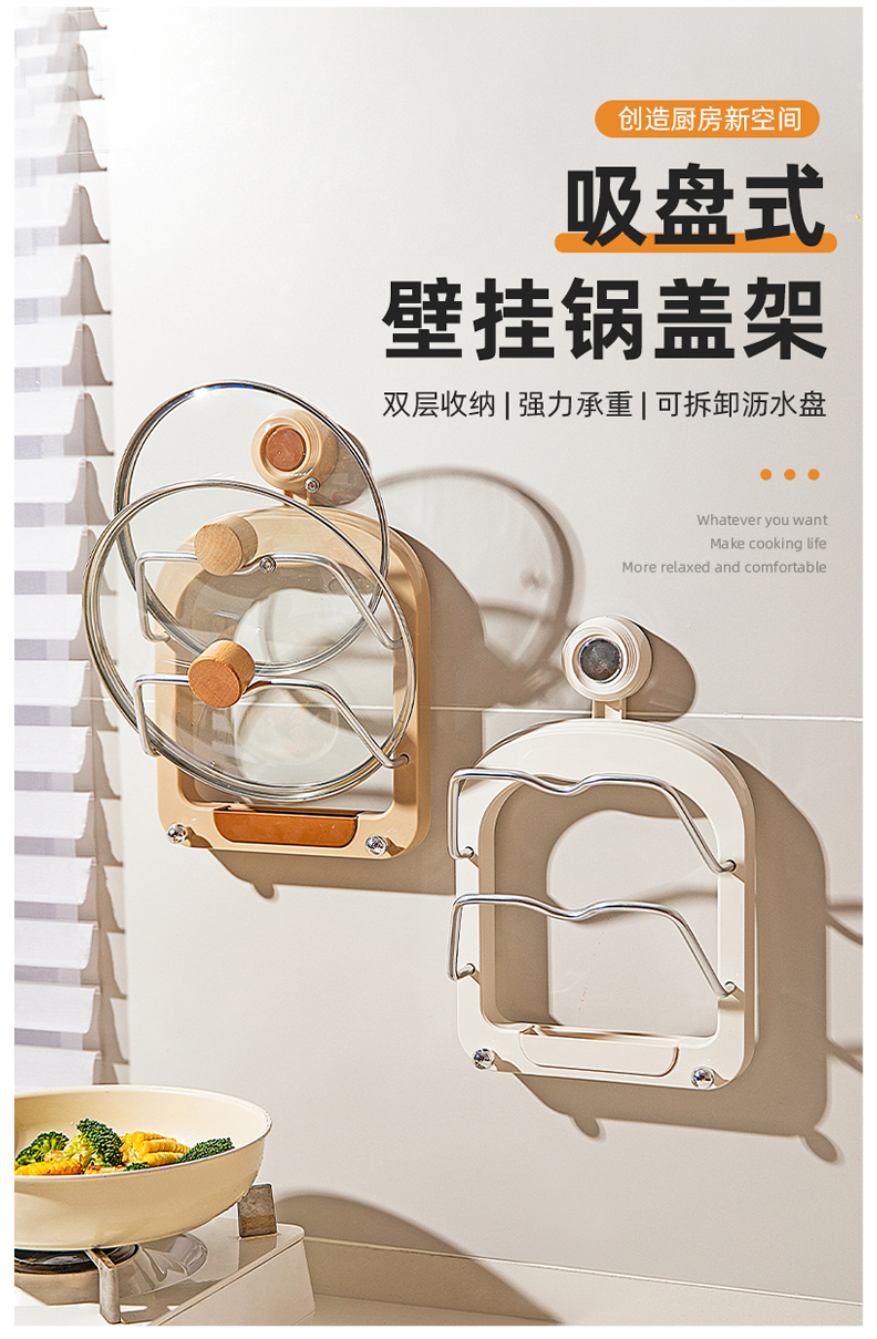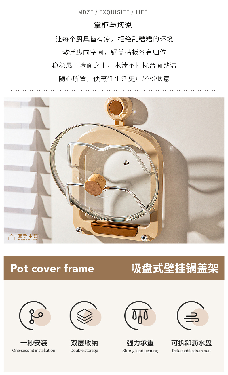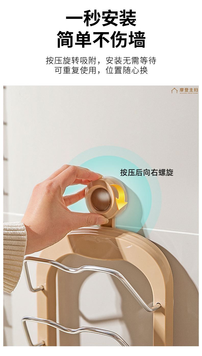 摩登主妇吸盘旋转锅盖架壁挂免打孔厨房菜板收纳架锅盖放置架神器