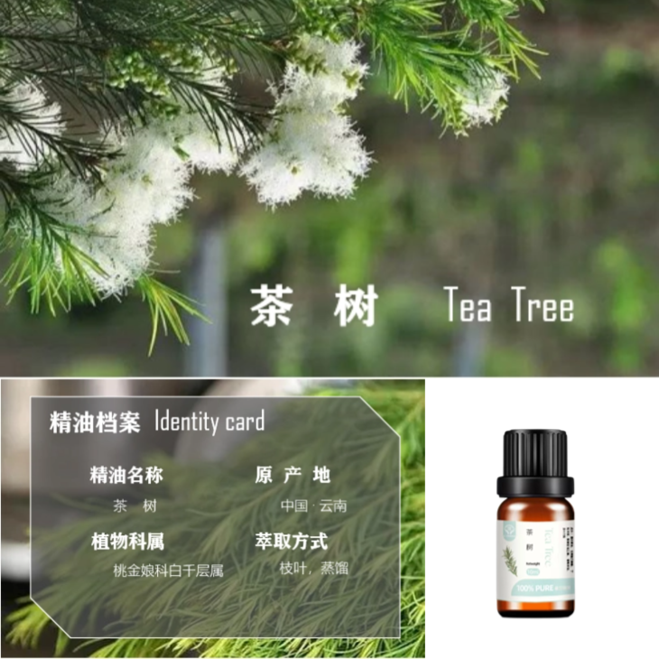 它是一种天然的抑菌剂,根据研究发现,茶树的抗菌效果比最常使用的苯酚高出12倍,因此被广泛用于医疗及环境清洁。