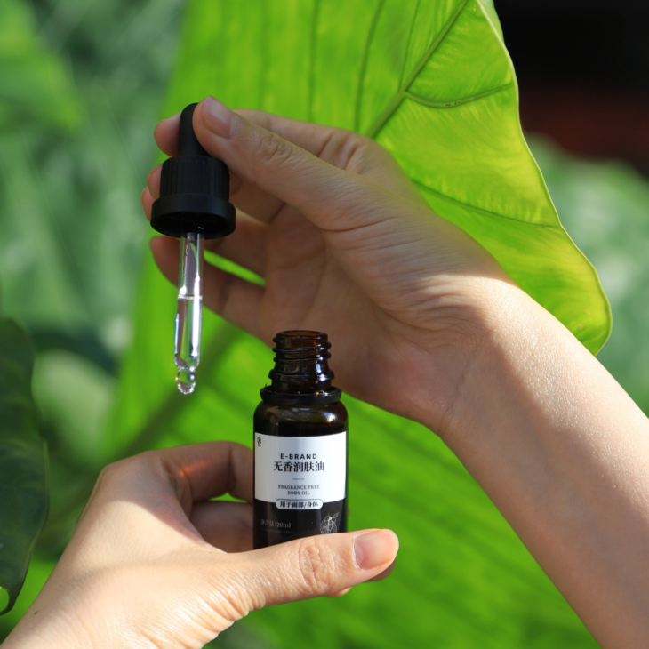 加无香润肤油稀释后,涂抹耳后、颈部、手腕、胸前可做香水使用;可涂抹按摩腹部,胸部等。