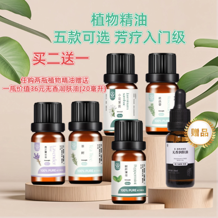 任购二瓶植物精油即赠一瓶价值36元的无香润肤油(20ml)