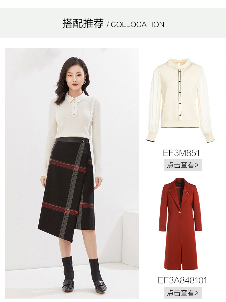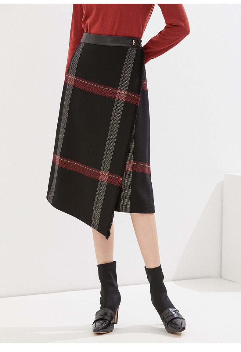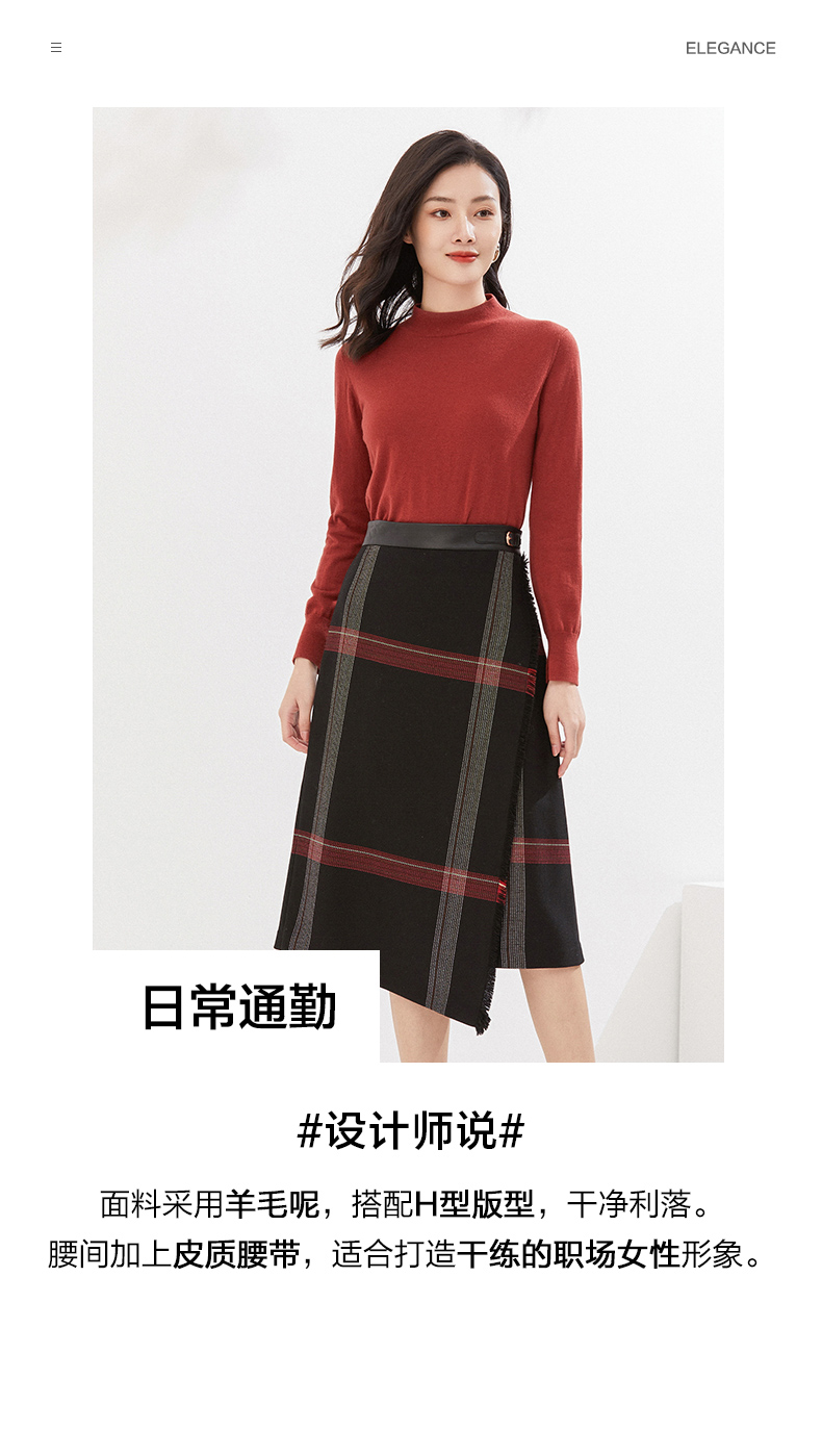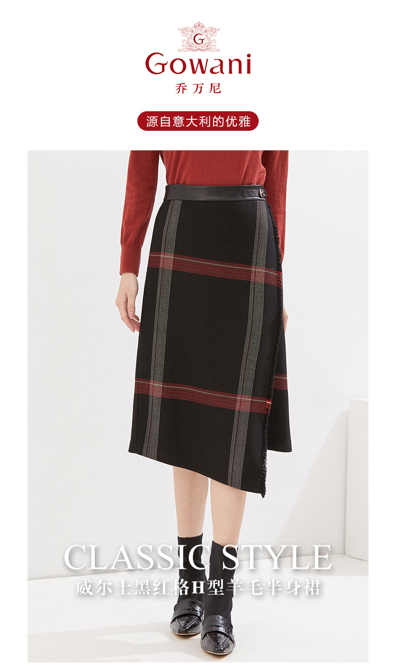 【100%绵羊毛】乔万尼春新款半身裙女英伦格纹EF3D810