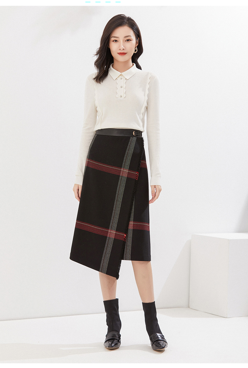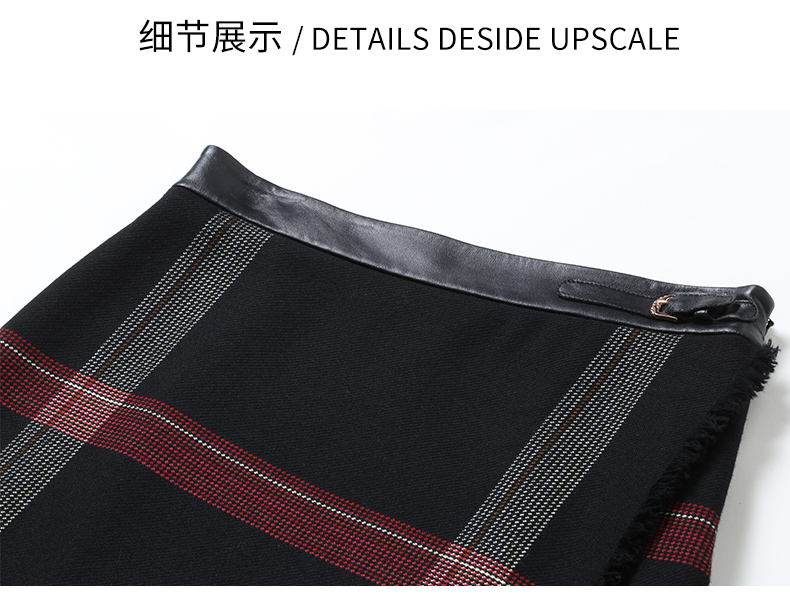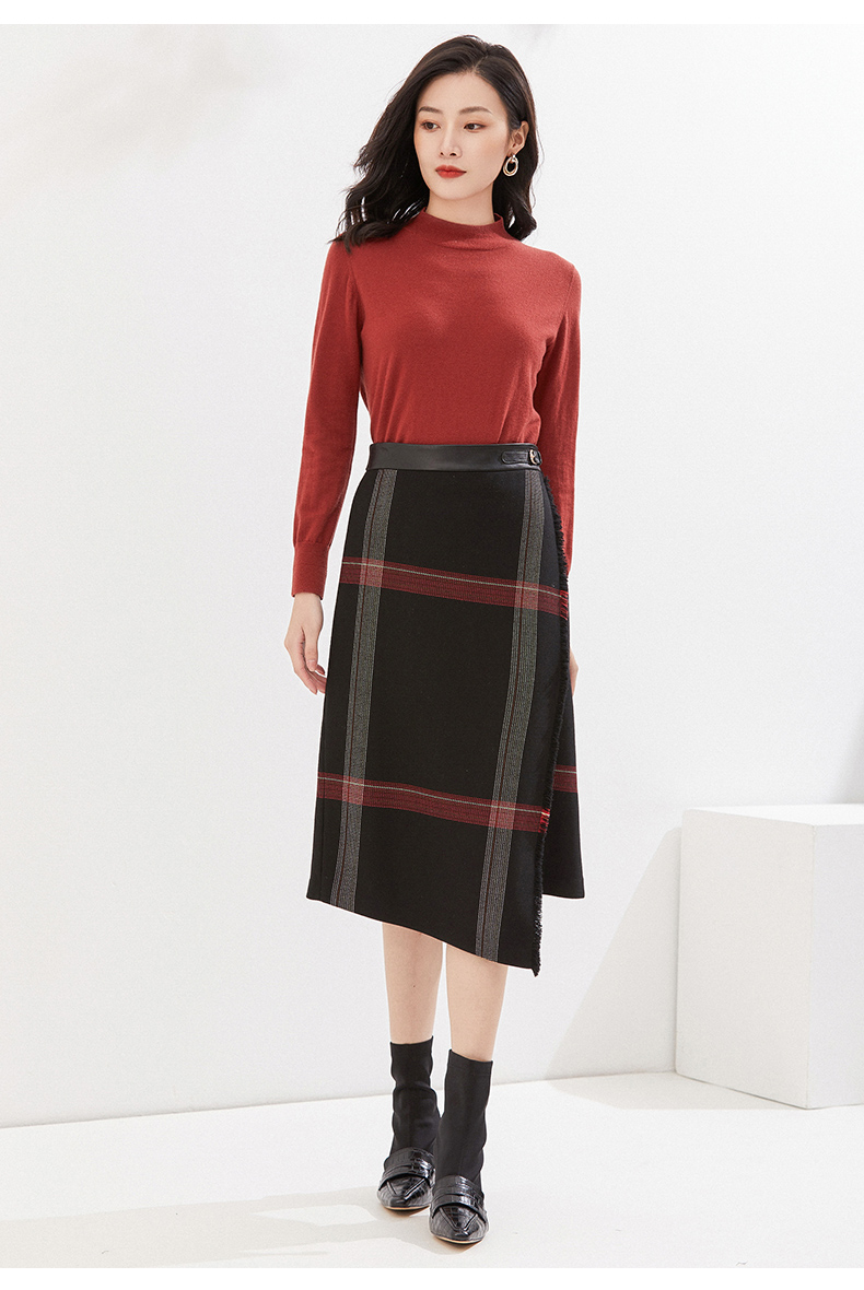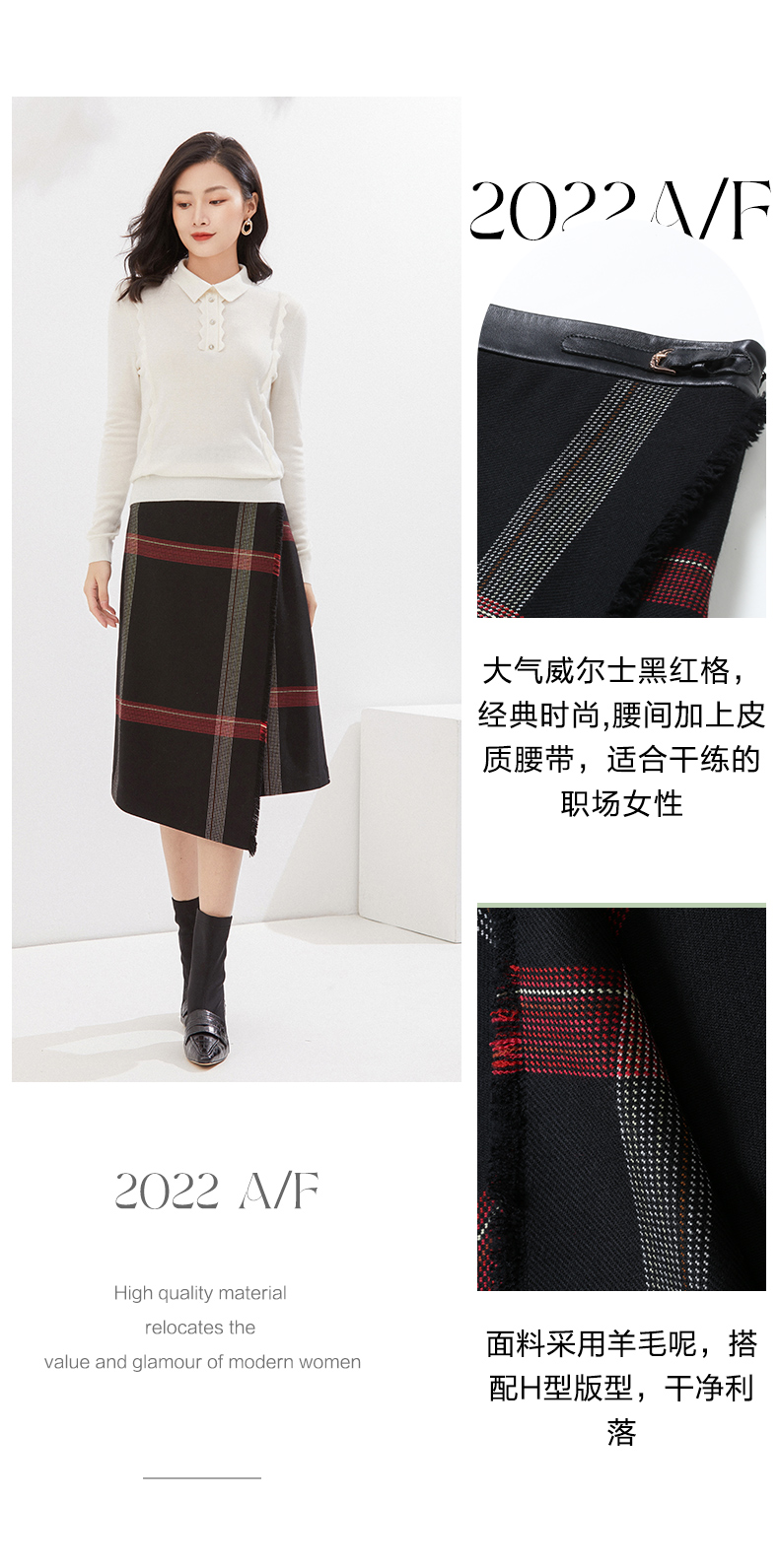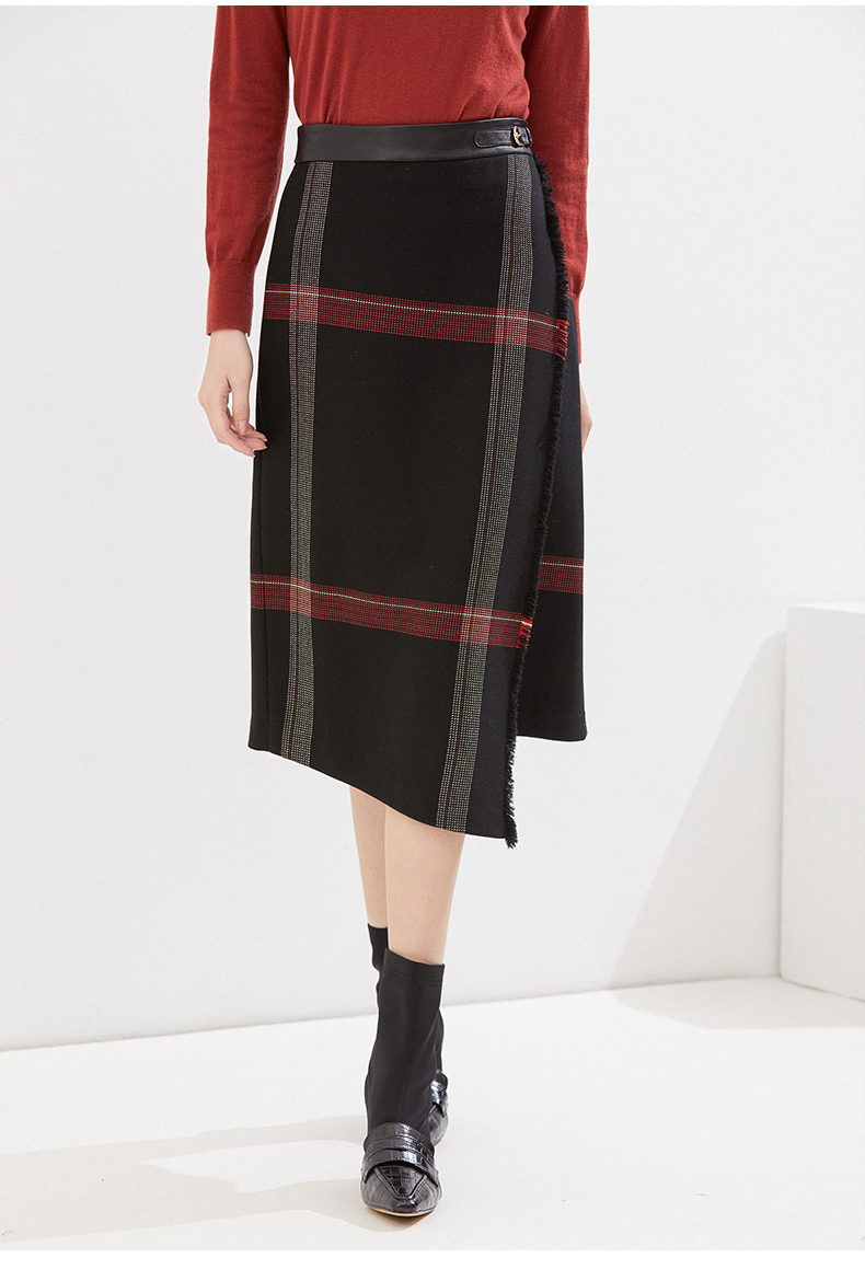 【100%绵羊毛】乔万尼春新款半身裙女英伦格纹EF3D810