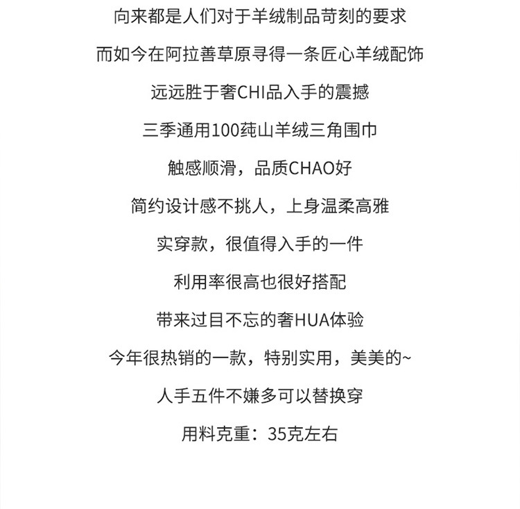 丁摩 100%纯山羊绒小三角巾女针织领巾护颈围脖秋冬新披肩外搭围巾5ZF-804