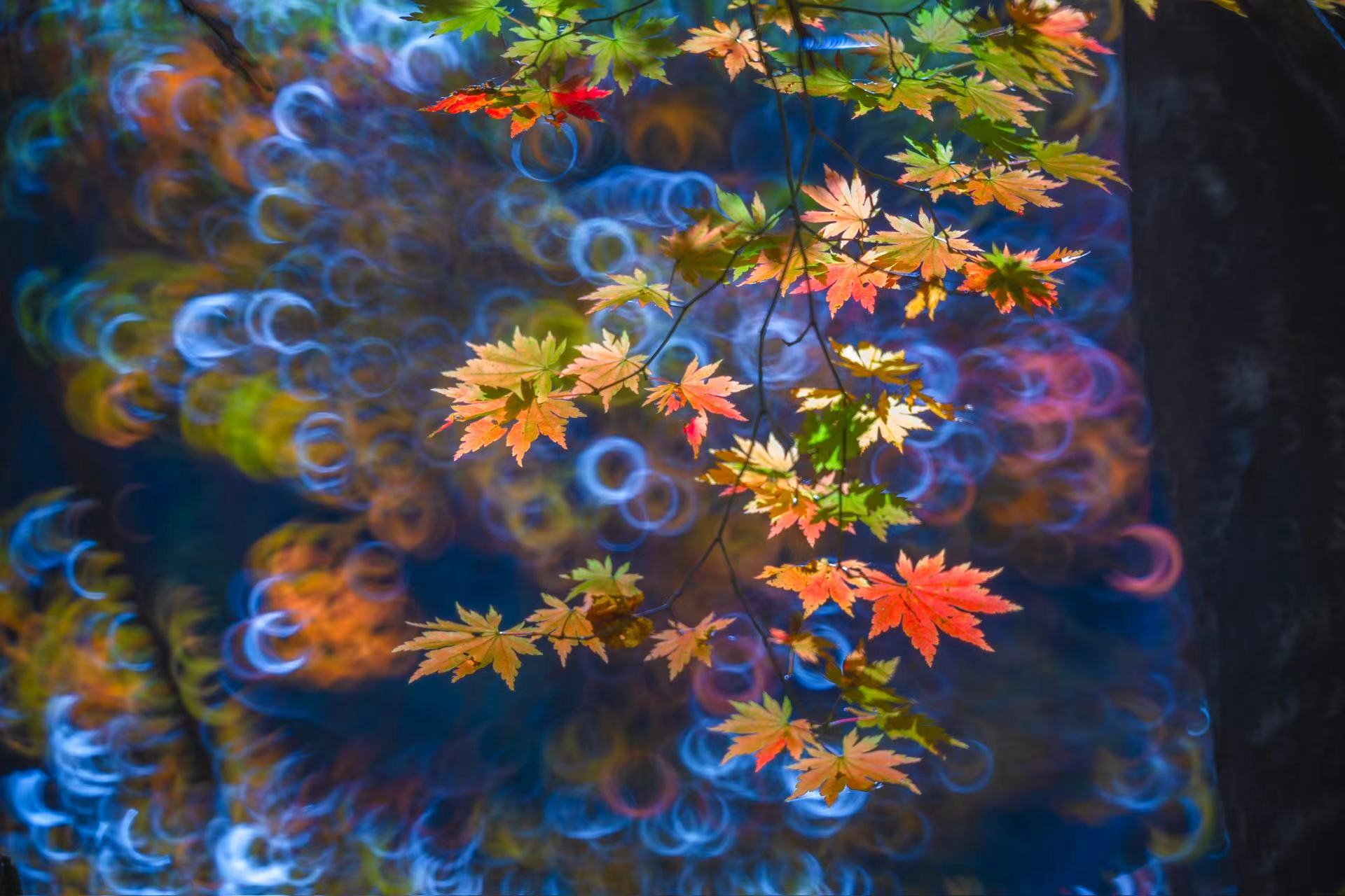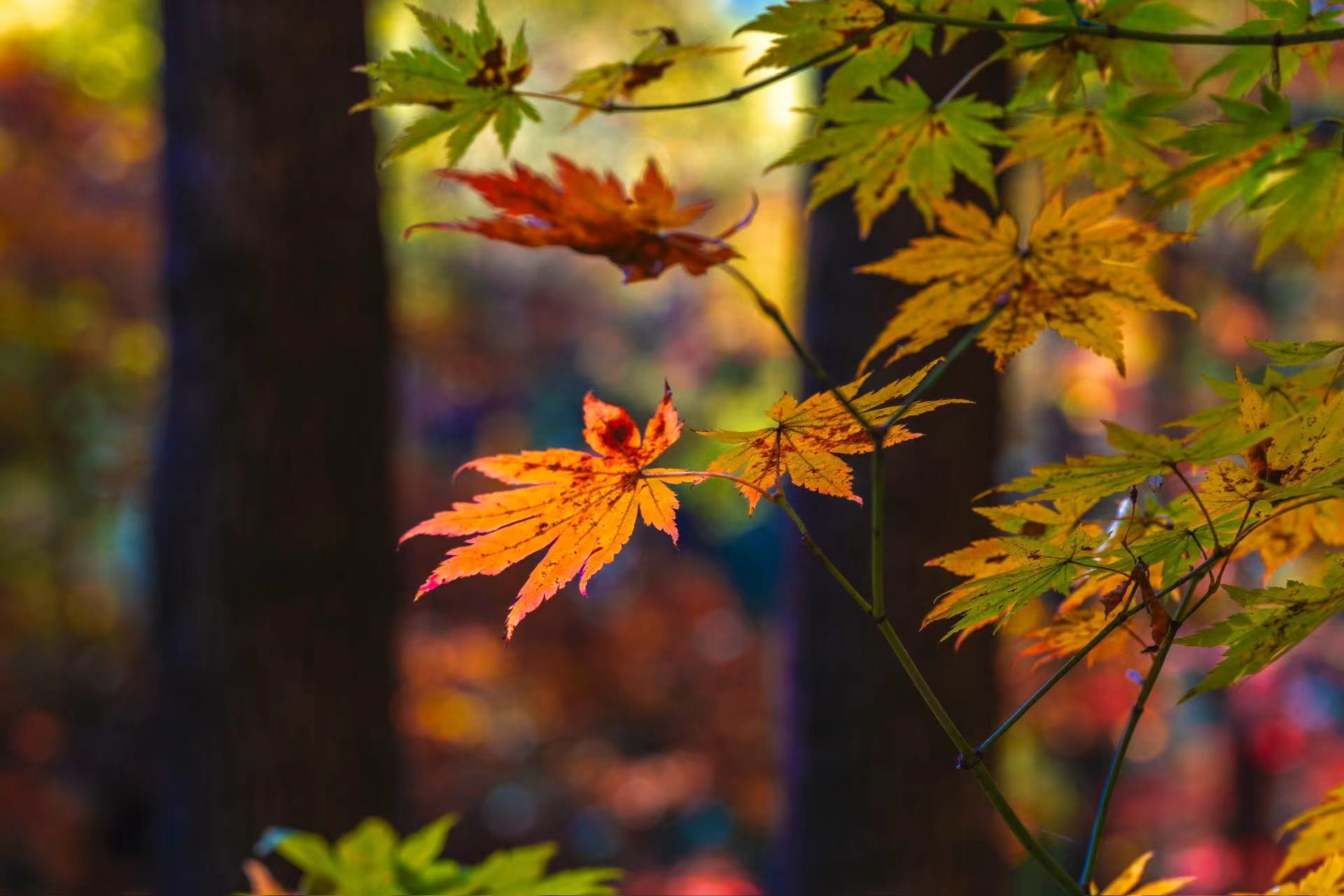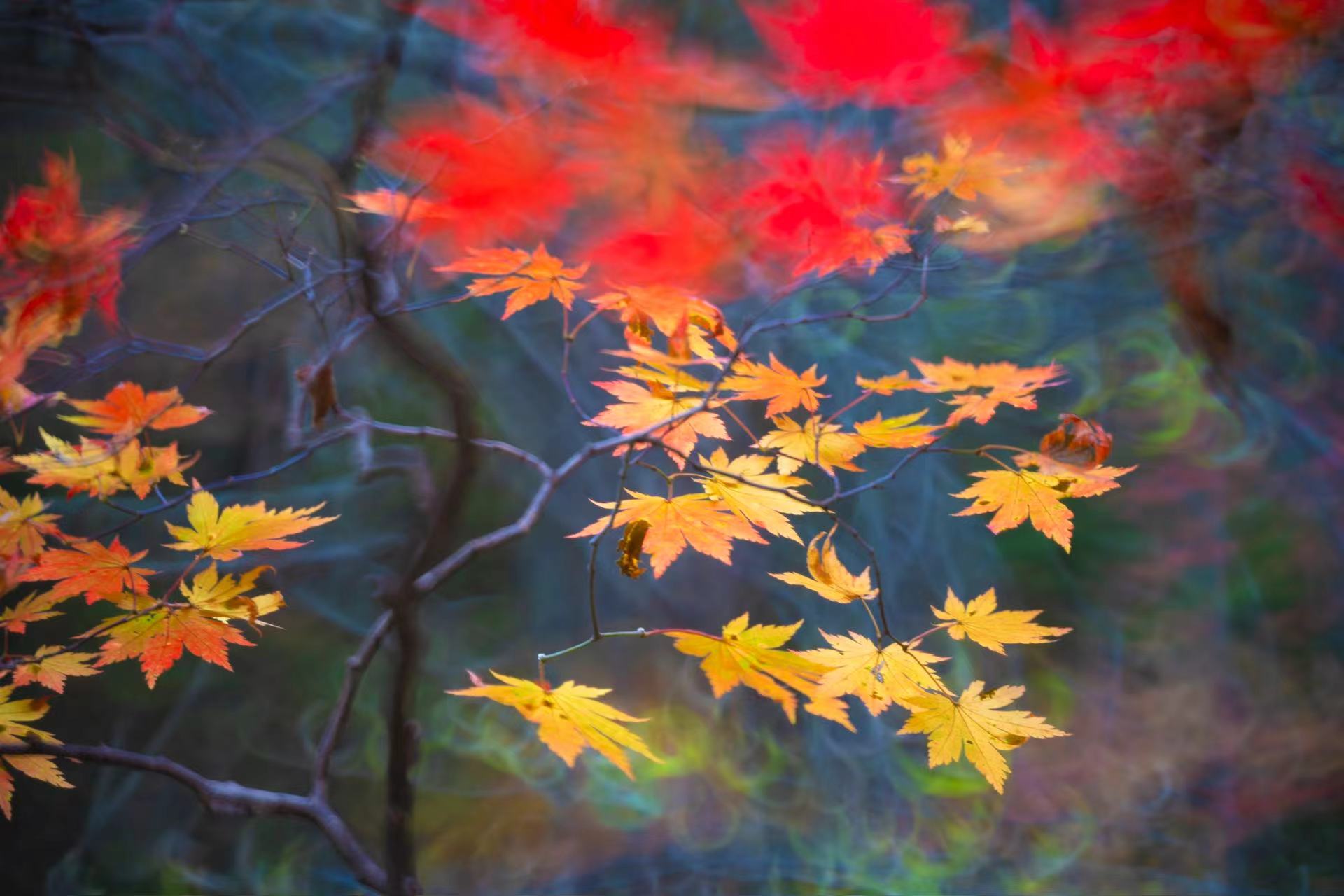 秋天来临,关门山层林尽染,橙、黄、赤、绿、赭,五彩缤纷。
