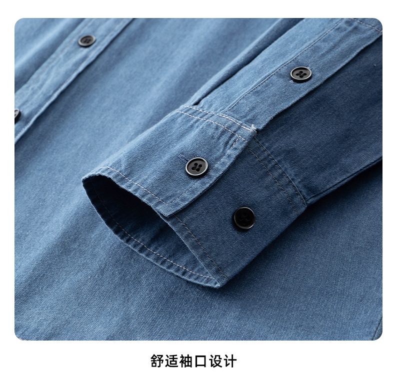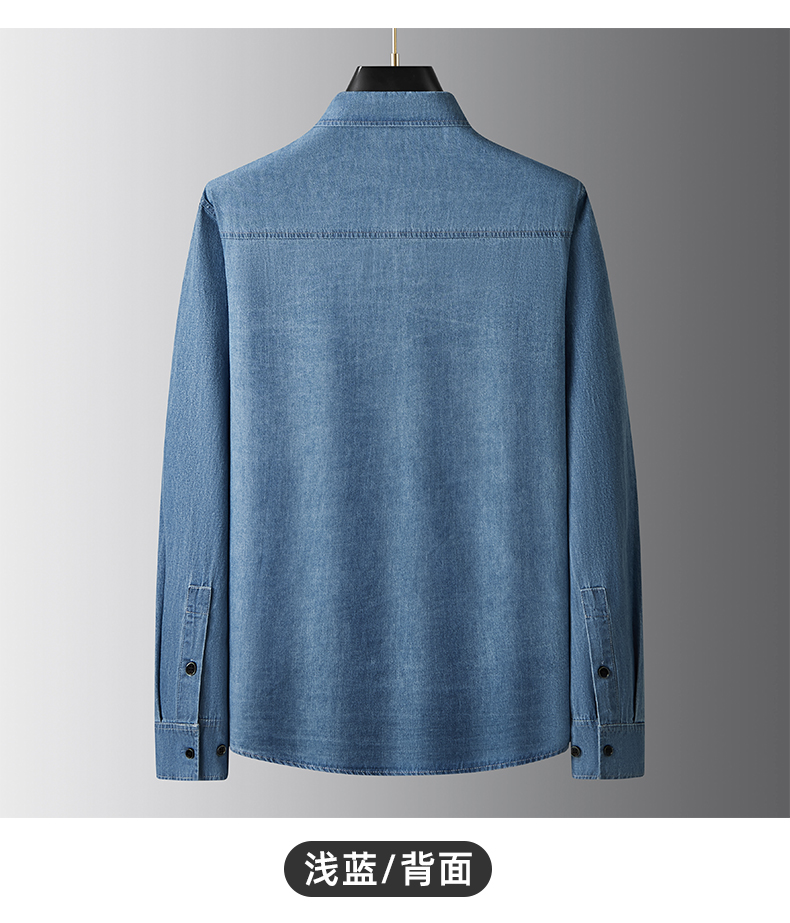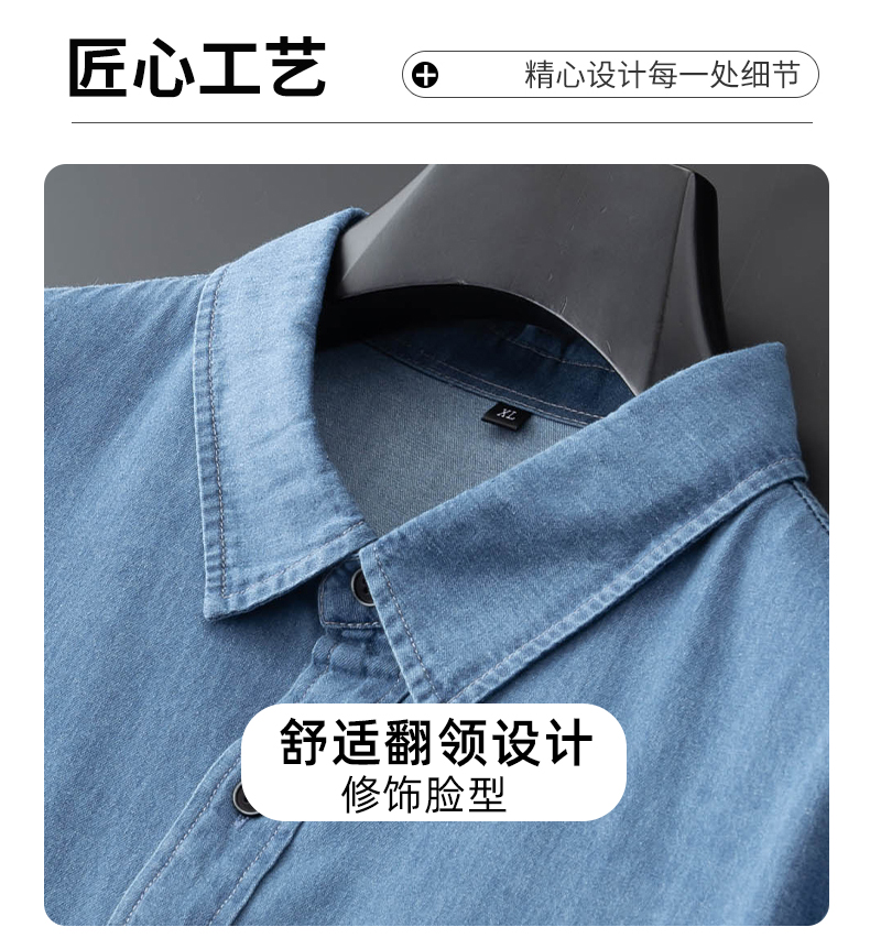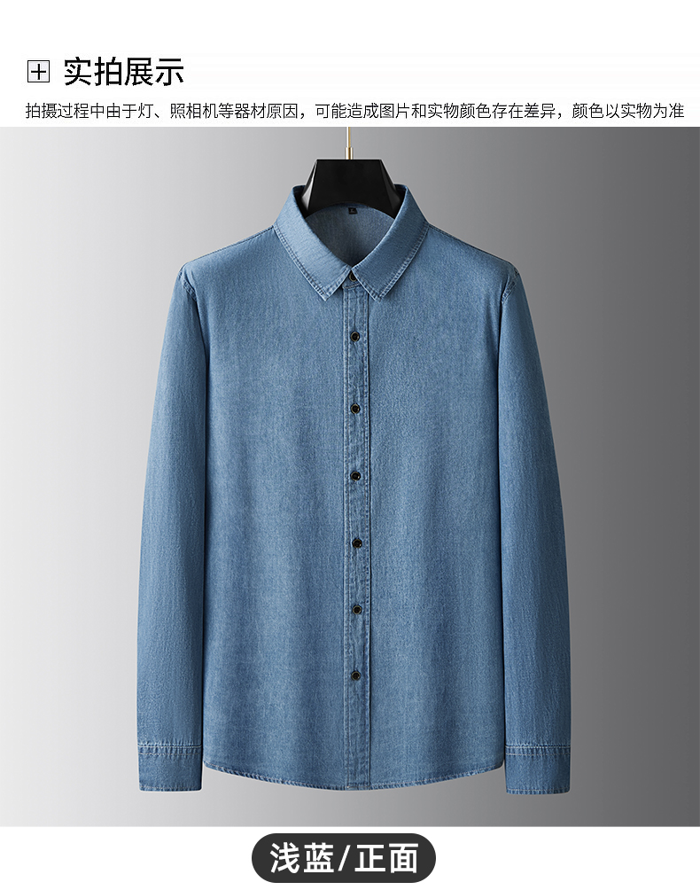 【100%棉】【新款DDA】大依优型大码牛仔长袖衬衫翻领加肥加大肥佬休闲商务宽松透气上衣