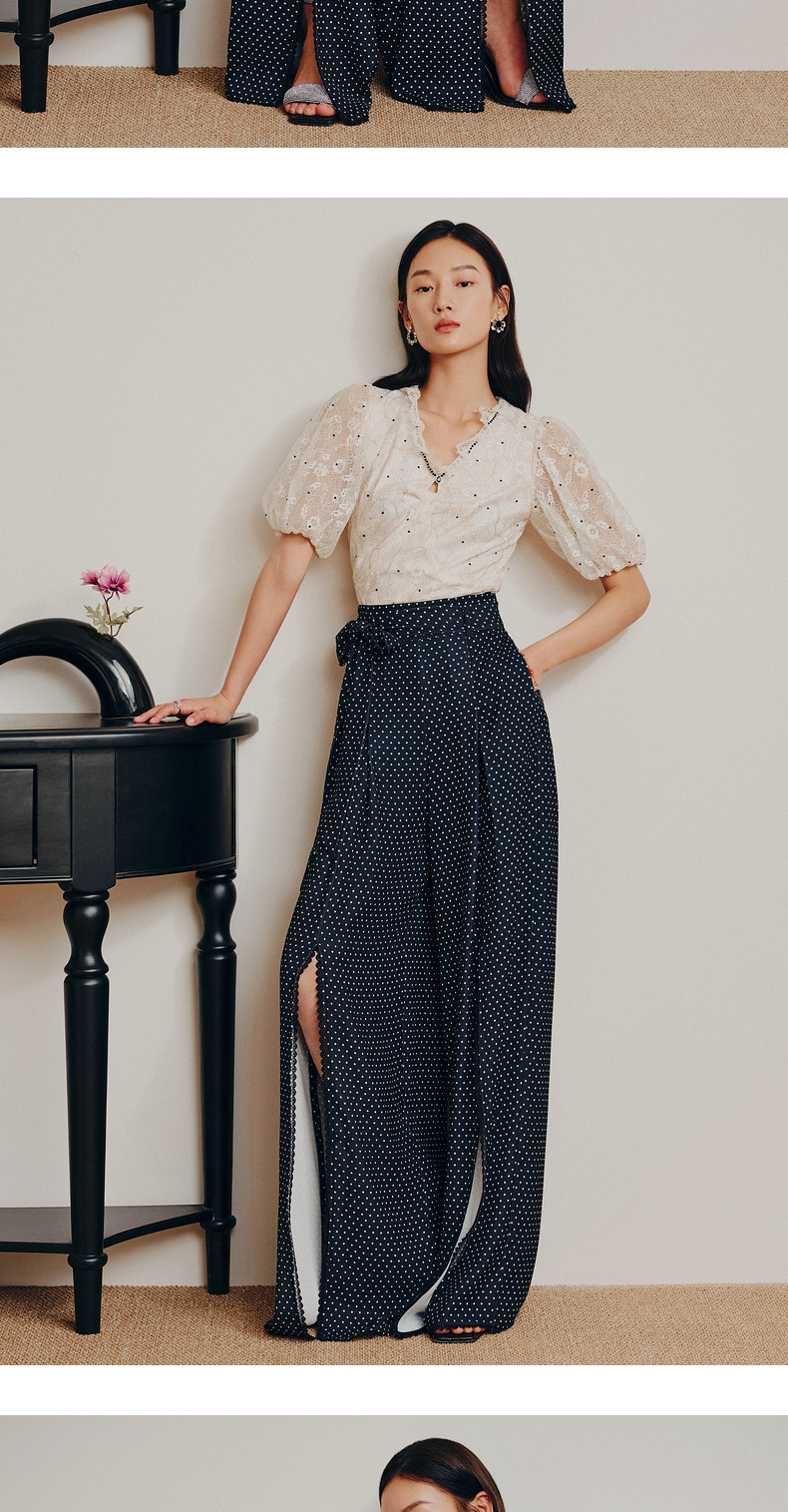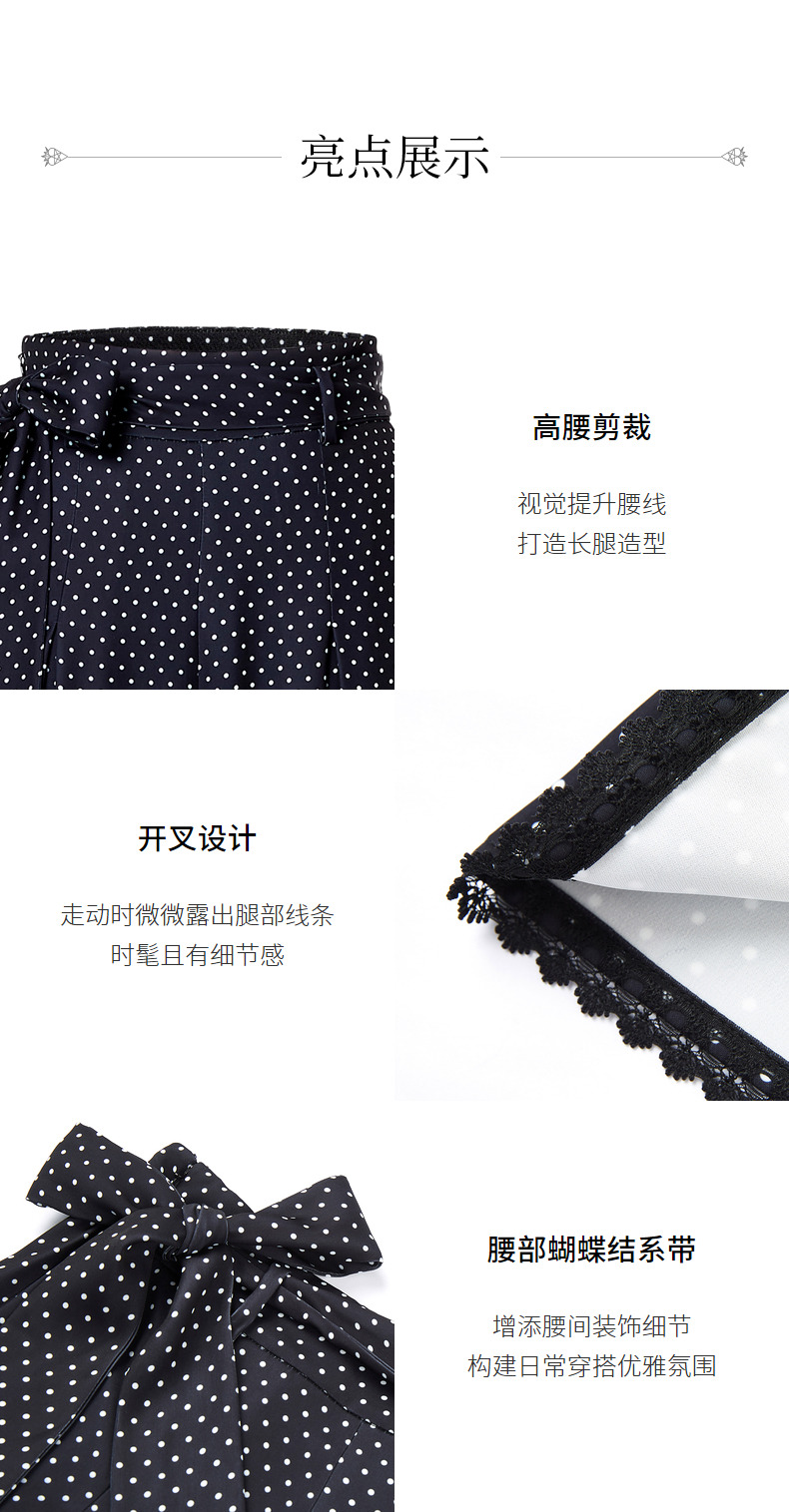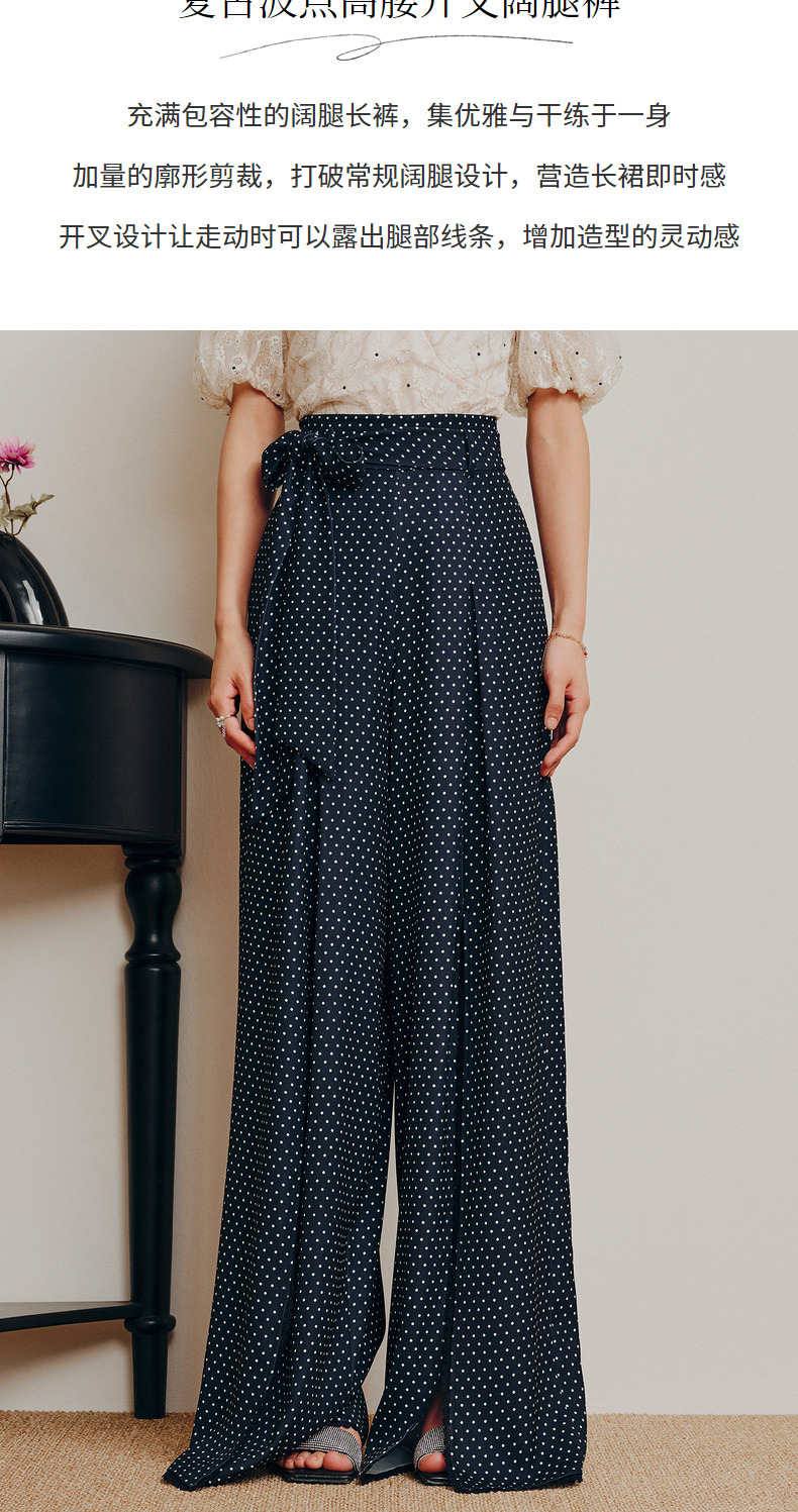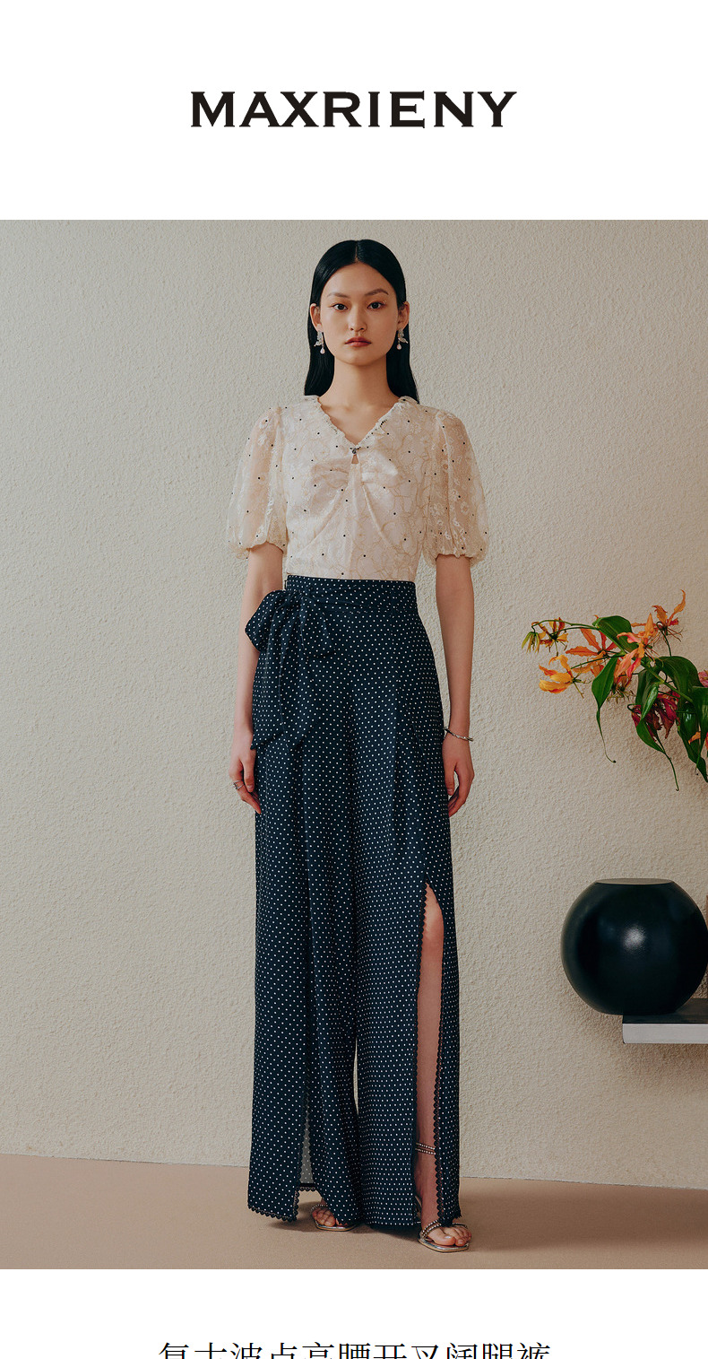 MAXRIENY复古赫本风波点高腰开叉阔腿裤廓形西装裤(货号:MC88PA295)