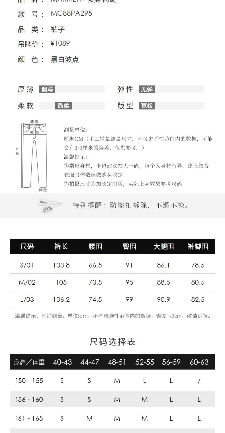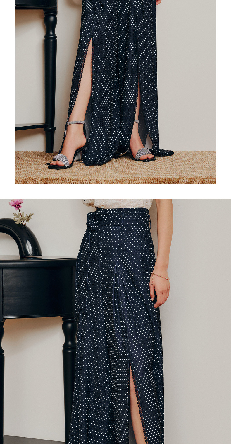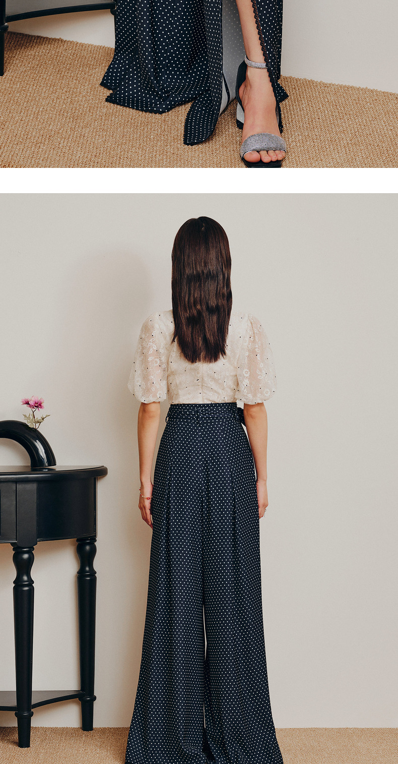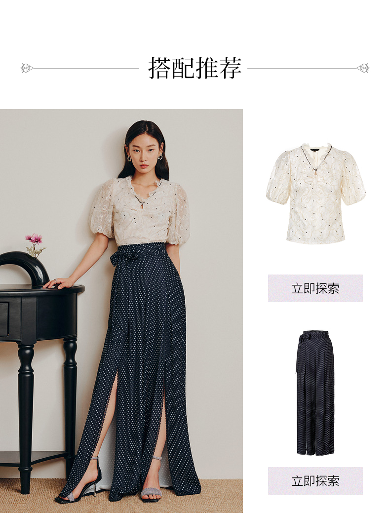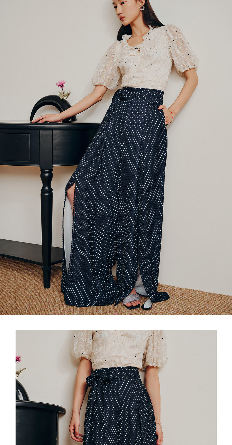 MAXRIENY复古赫本风波点高腰开叉阔腿裤廓形西装裤(货号:MC88PA295)