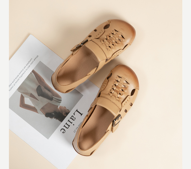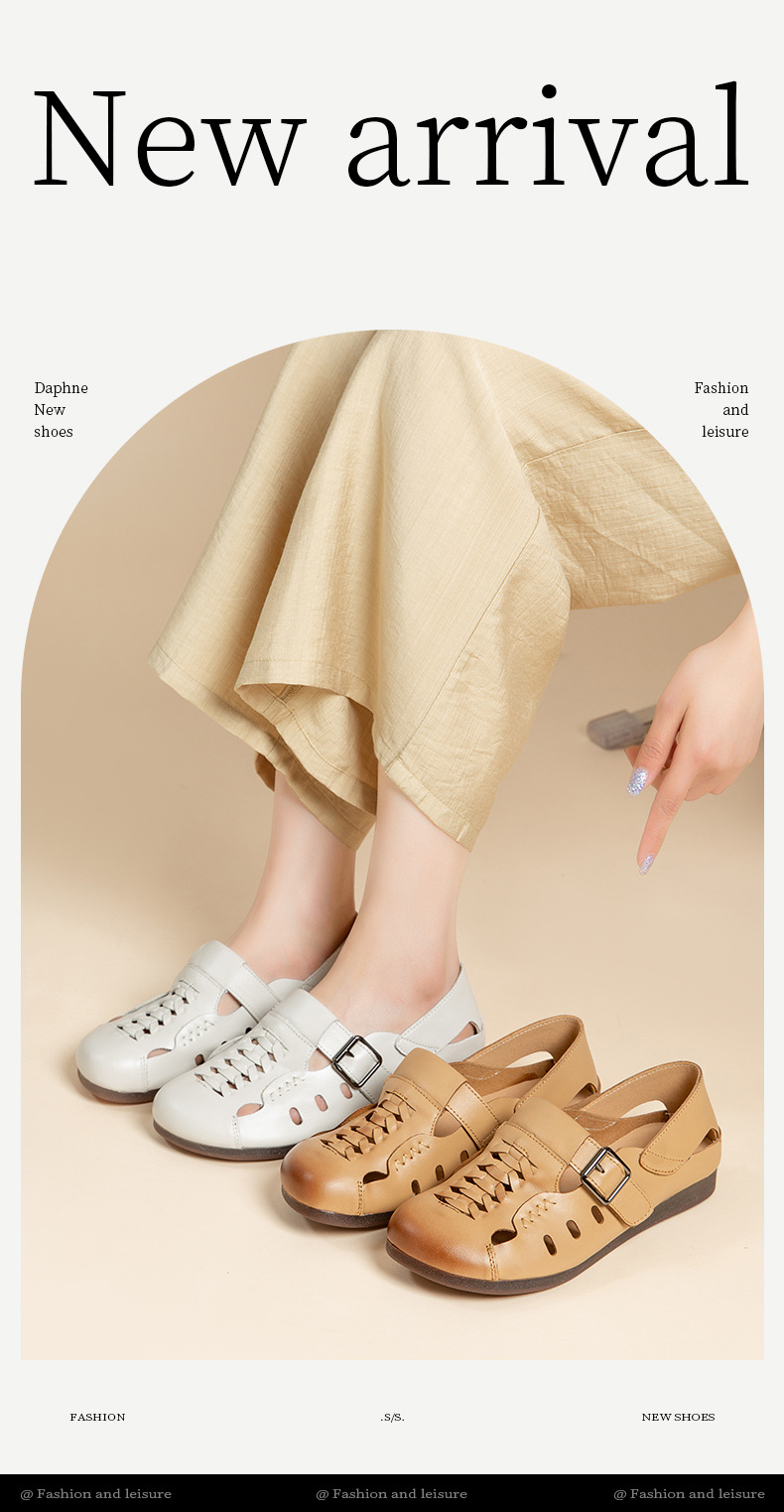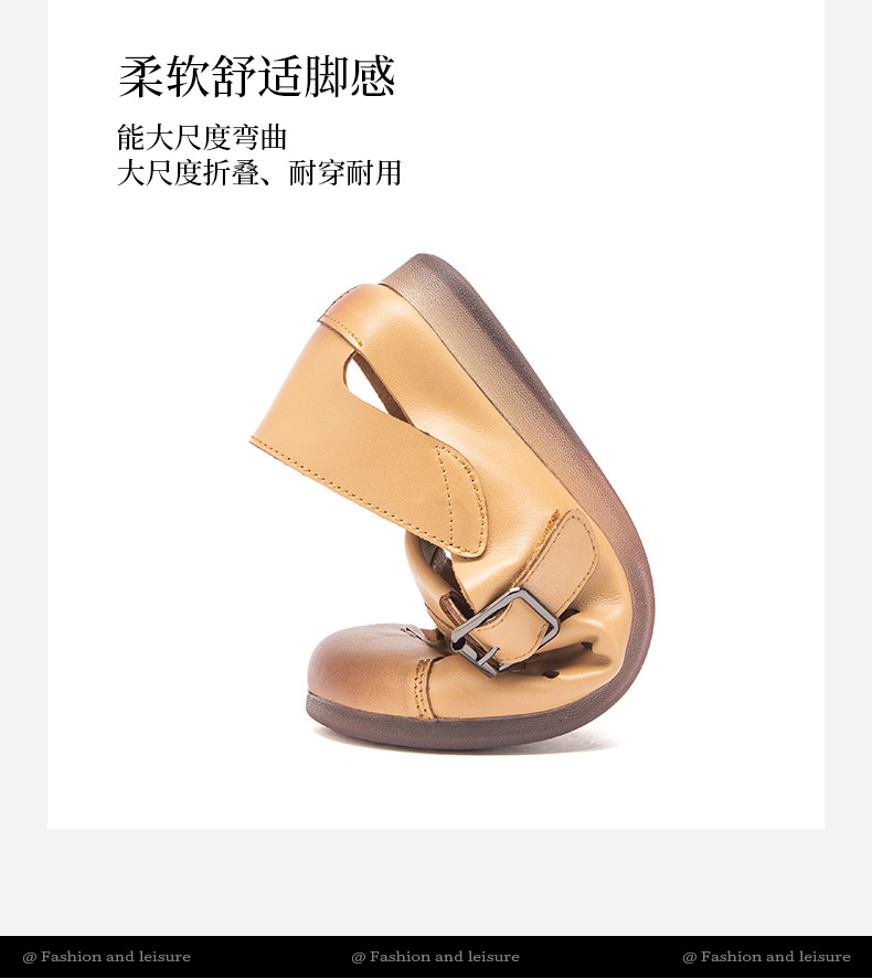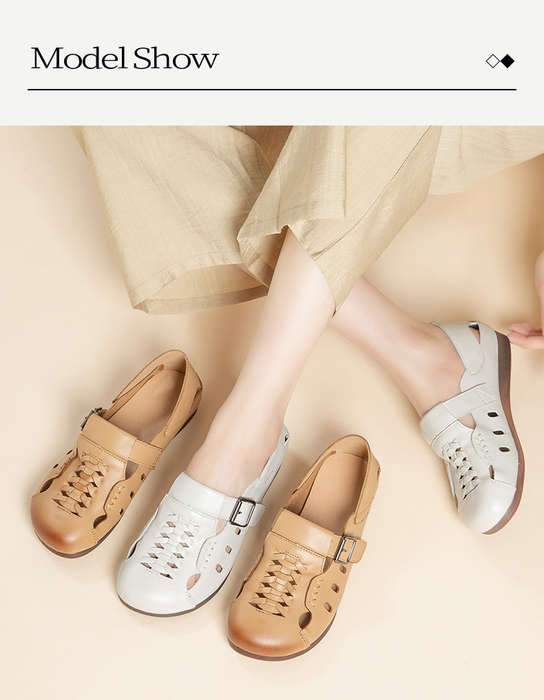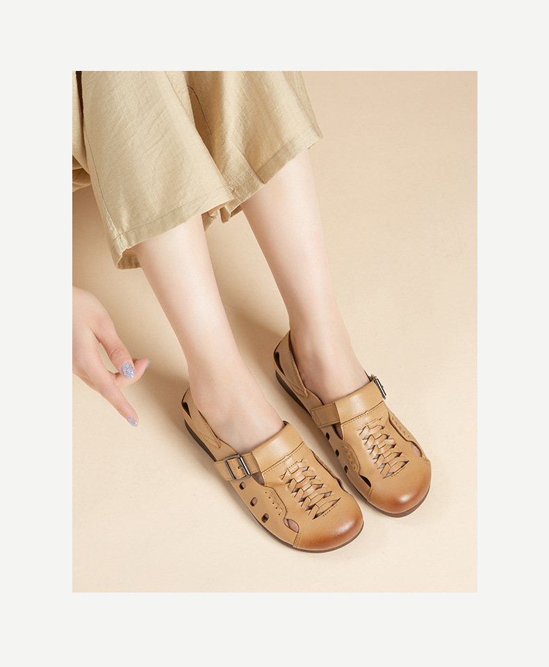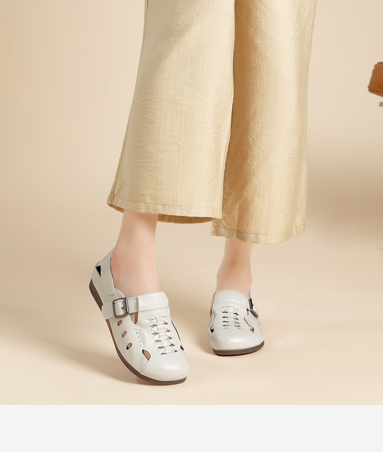 平跟牛筋软底妈妈凉鞋,镂空透气头层牛皮复古洞洞女鞋MLD-5323