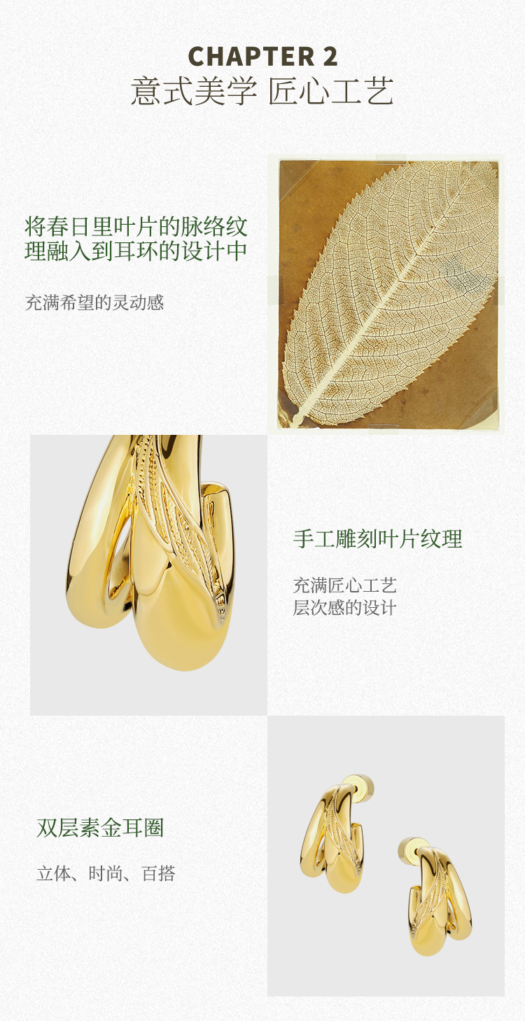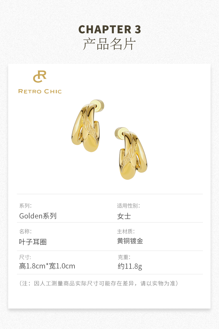 Retro Chic 意大利复古时尚首饰叶子耳圈