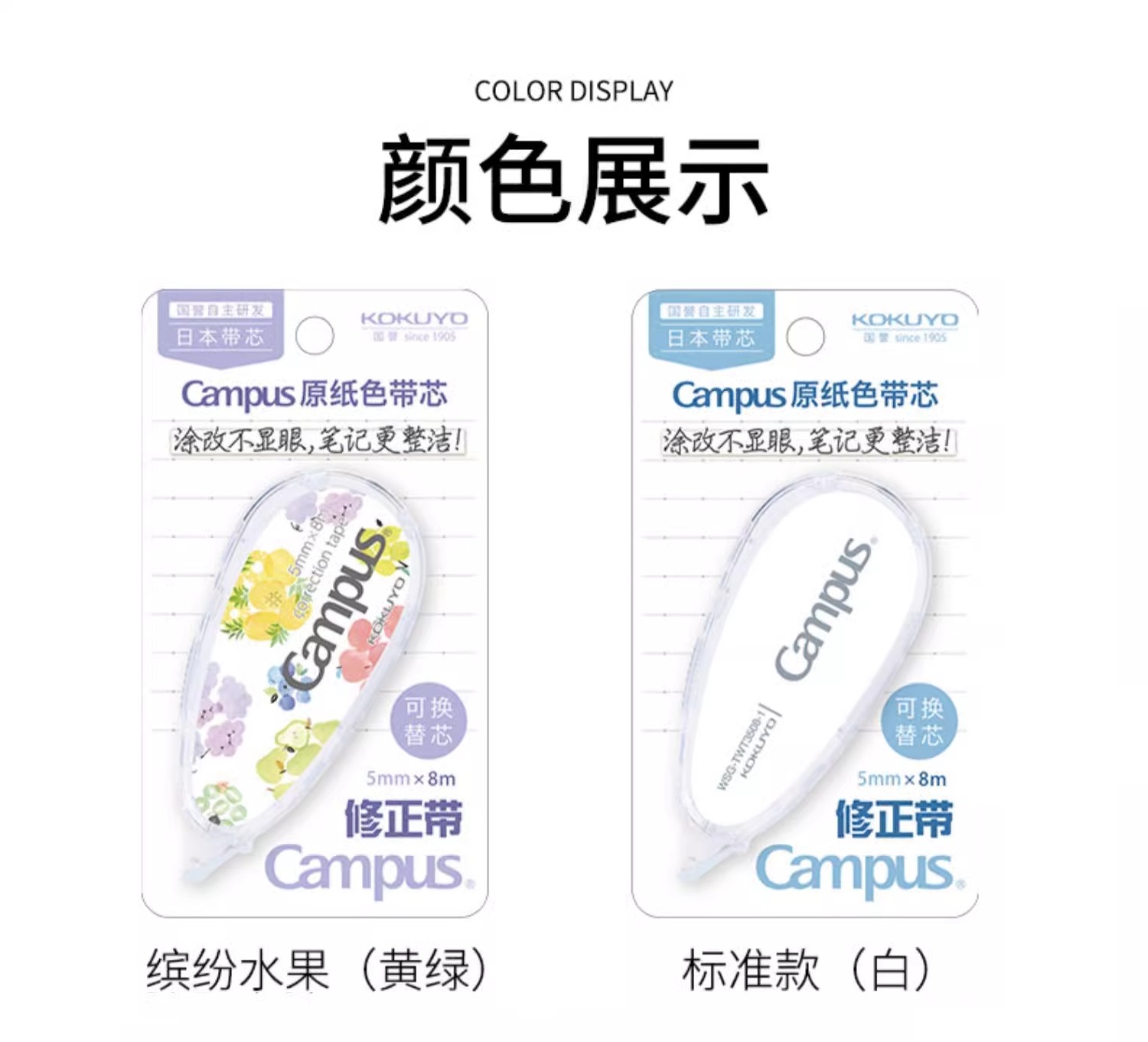 国誉原色纸修正带/替换芯 | 爽滑不易起皮 可换芯 原纸色带面