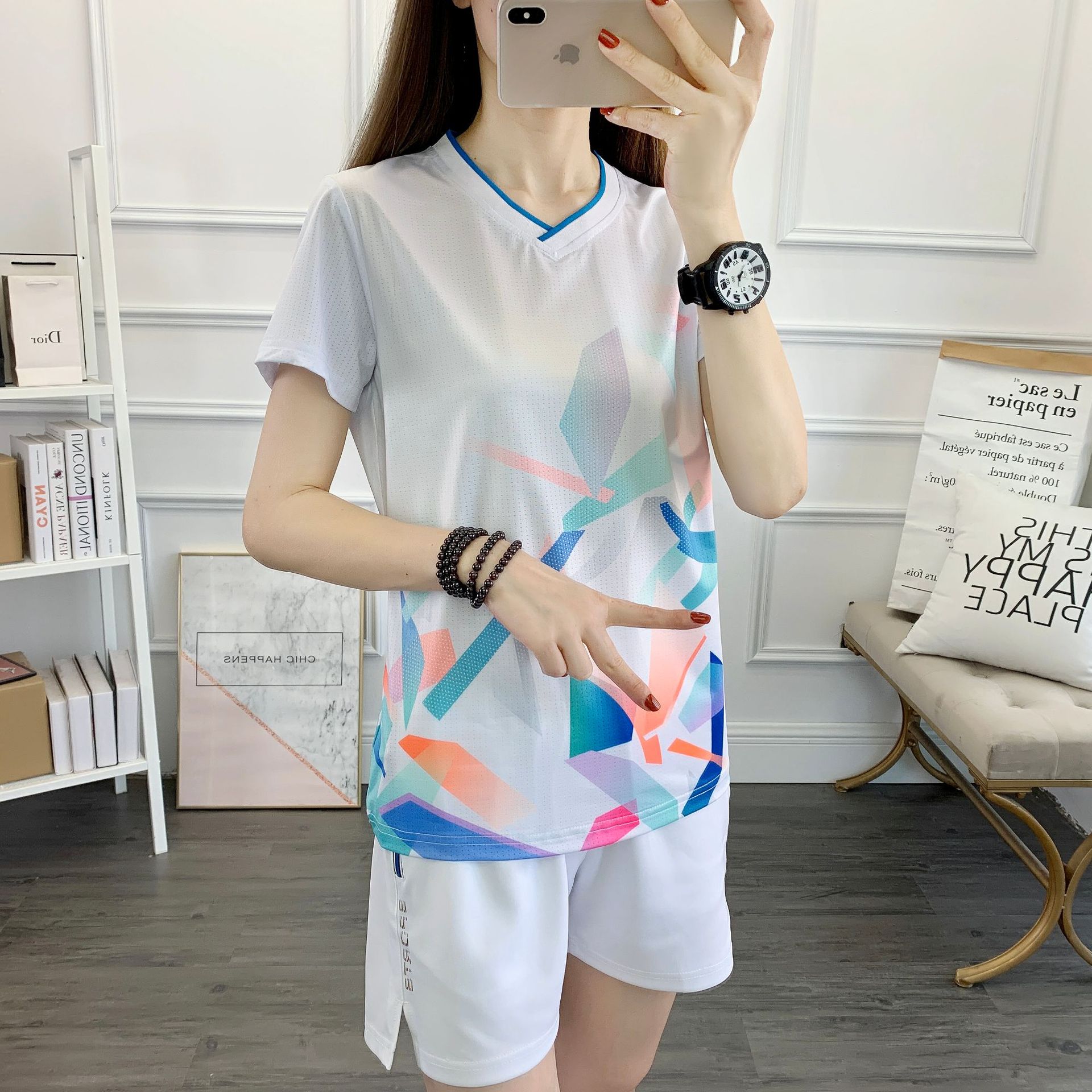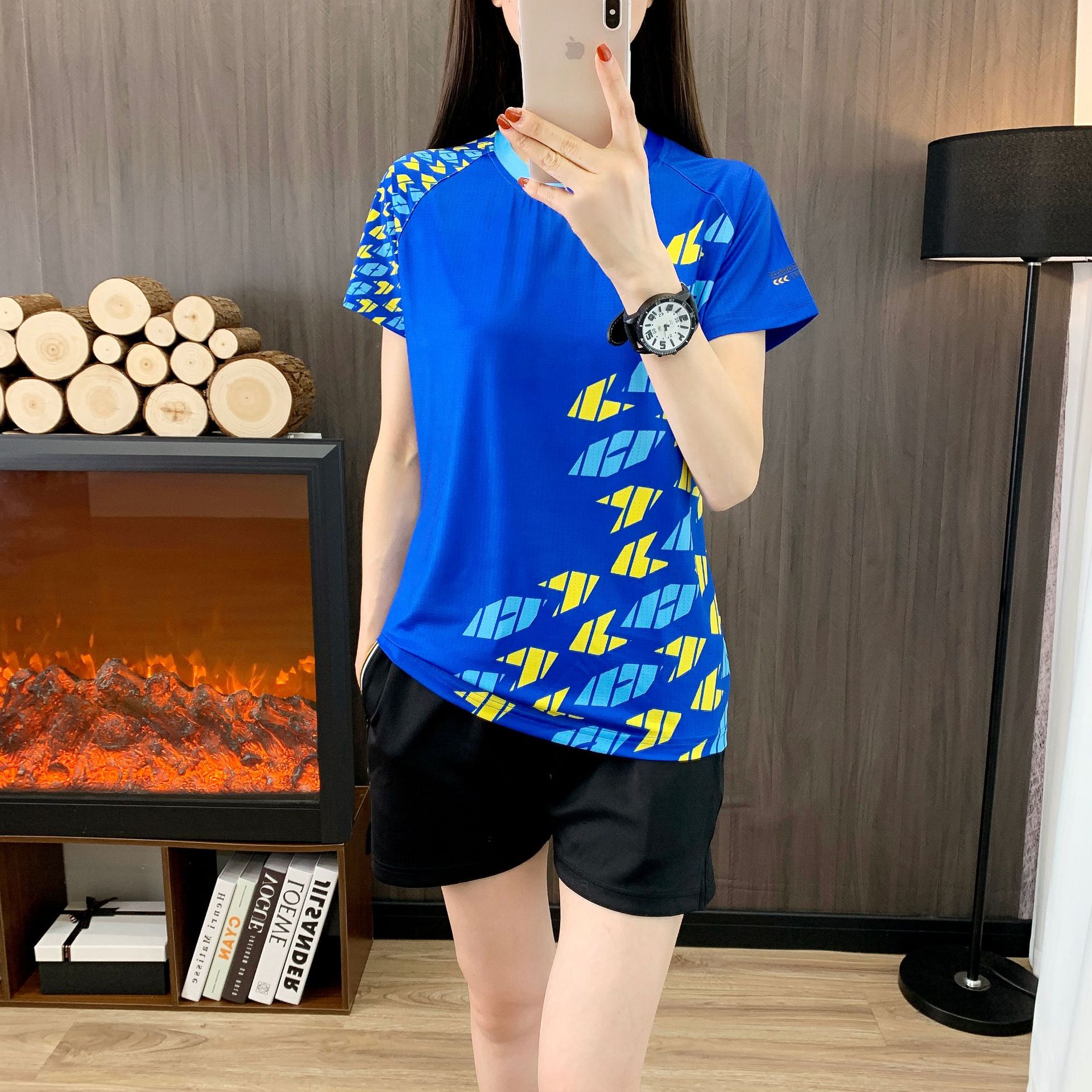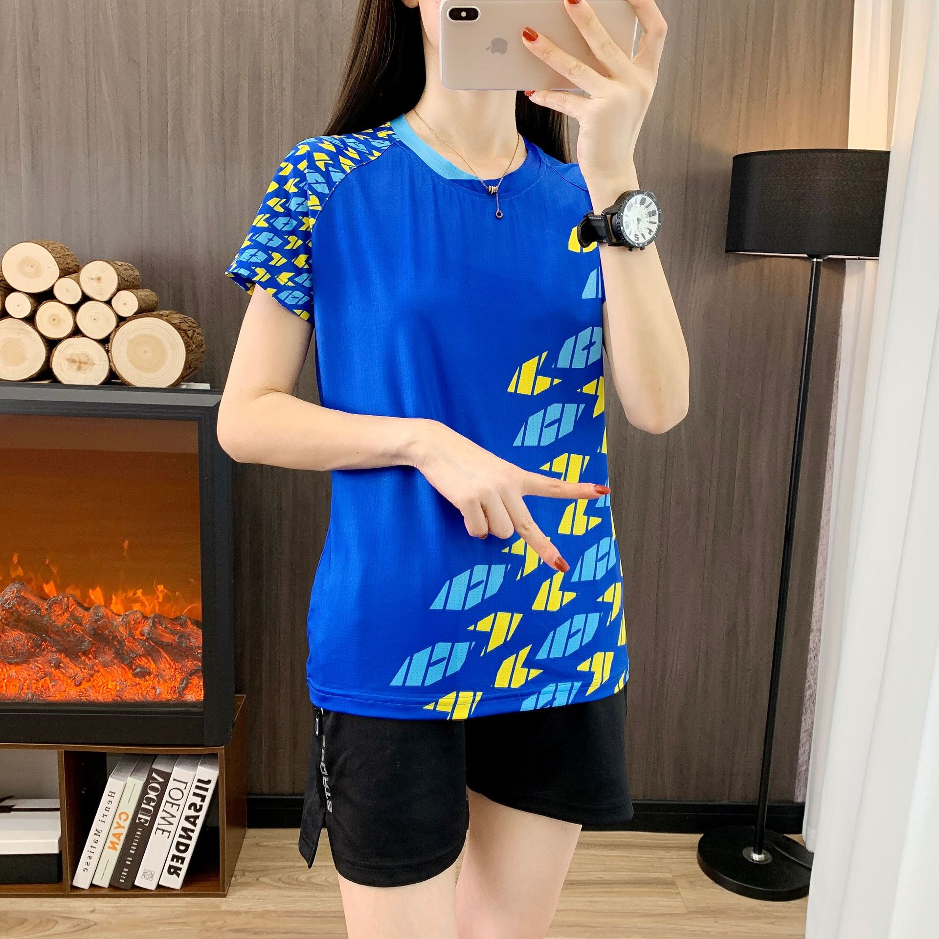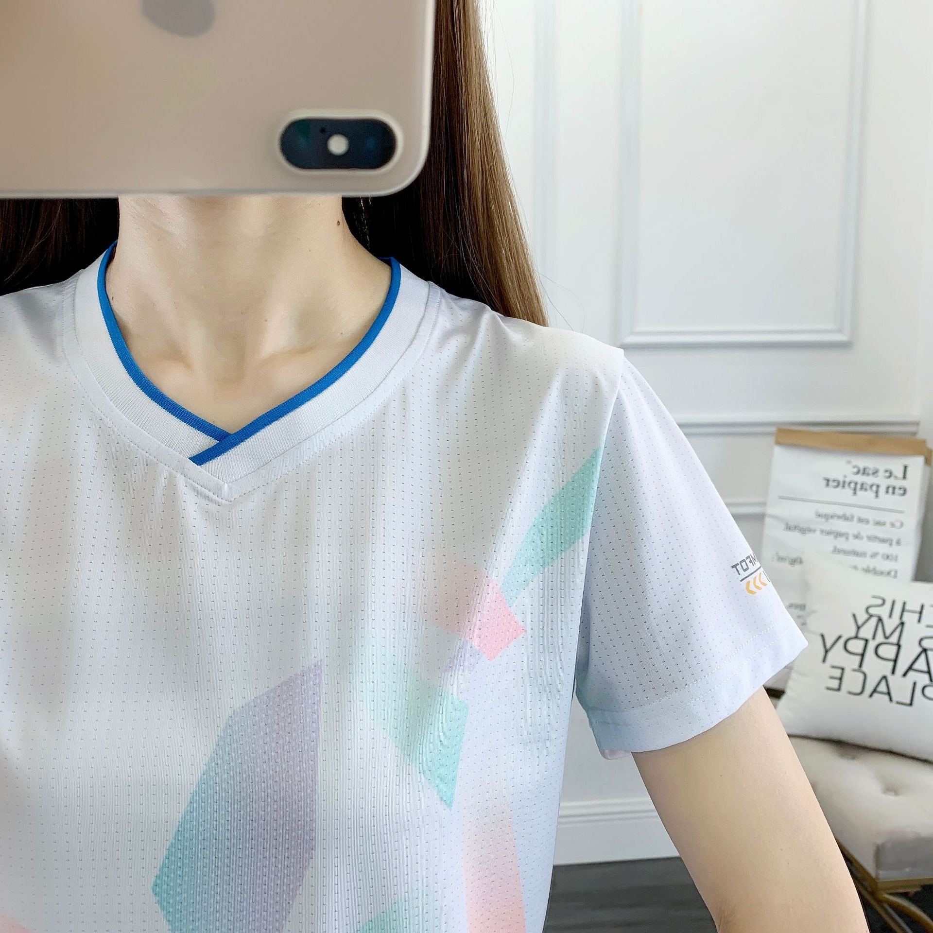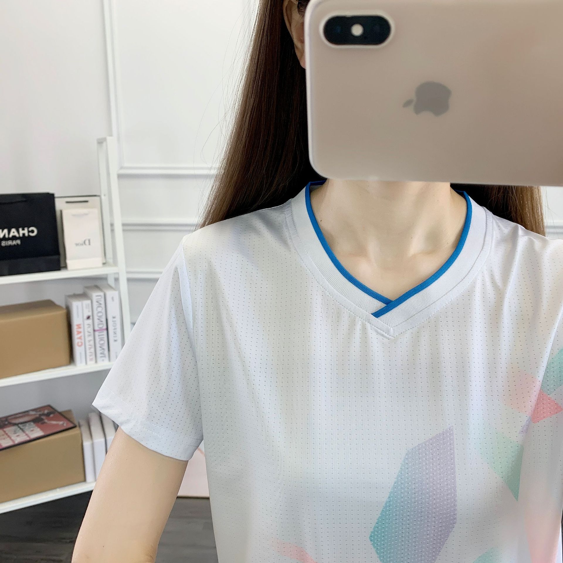 丁摩 V领速干衣女短袖弹力户外女装运动快干夏装宽松徒步羽毛球t恤休闲6317