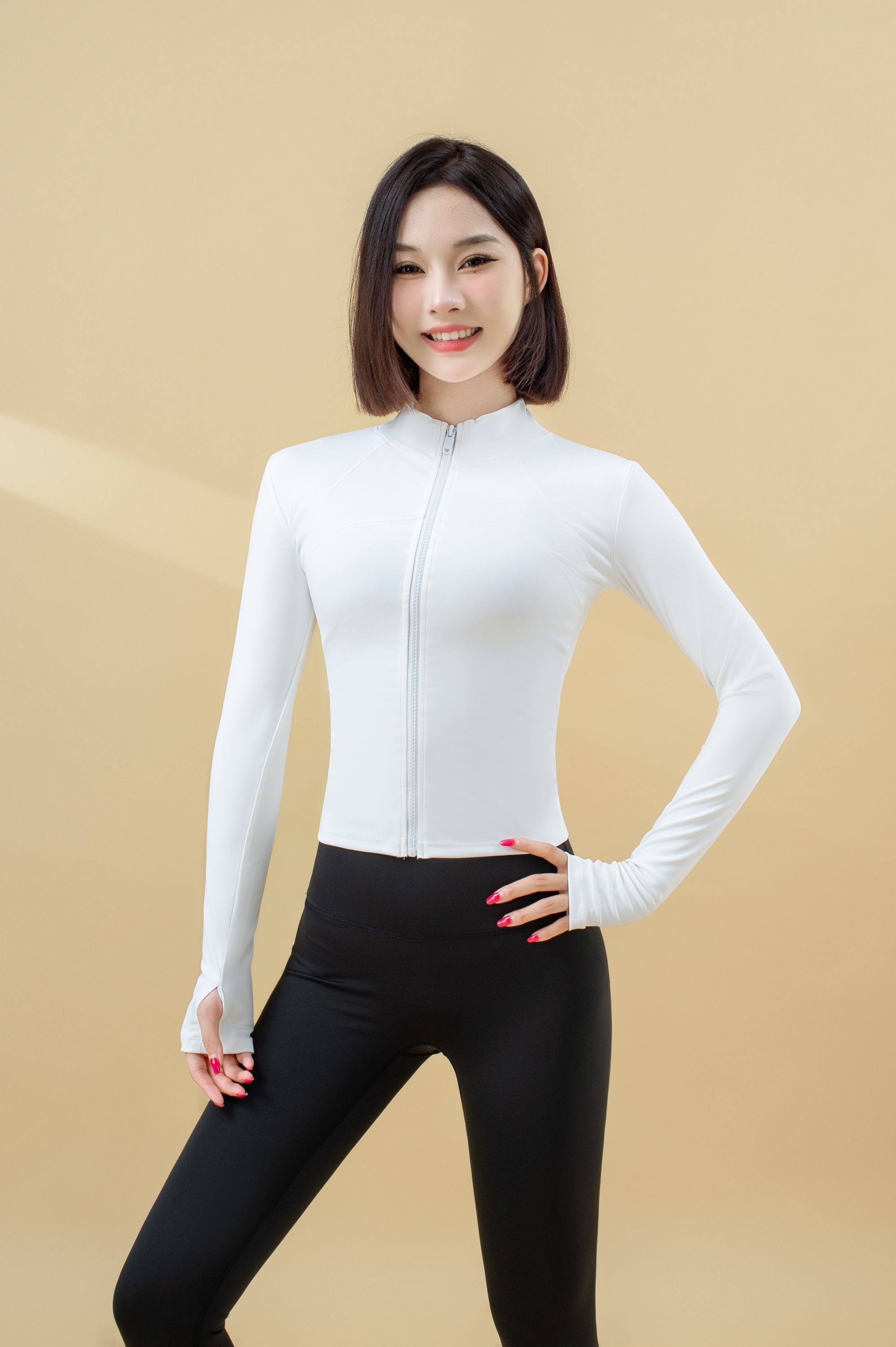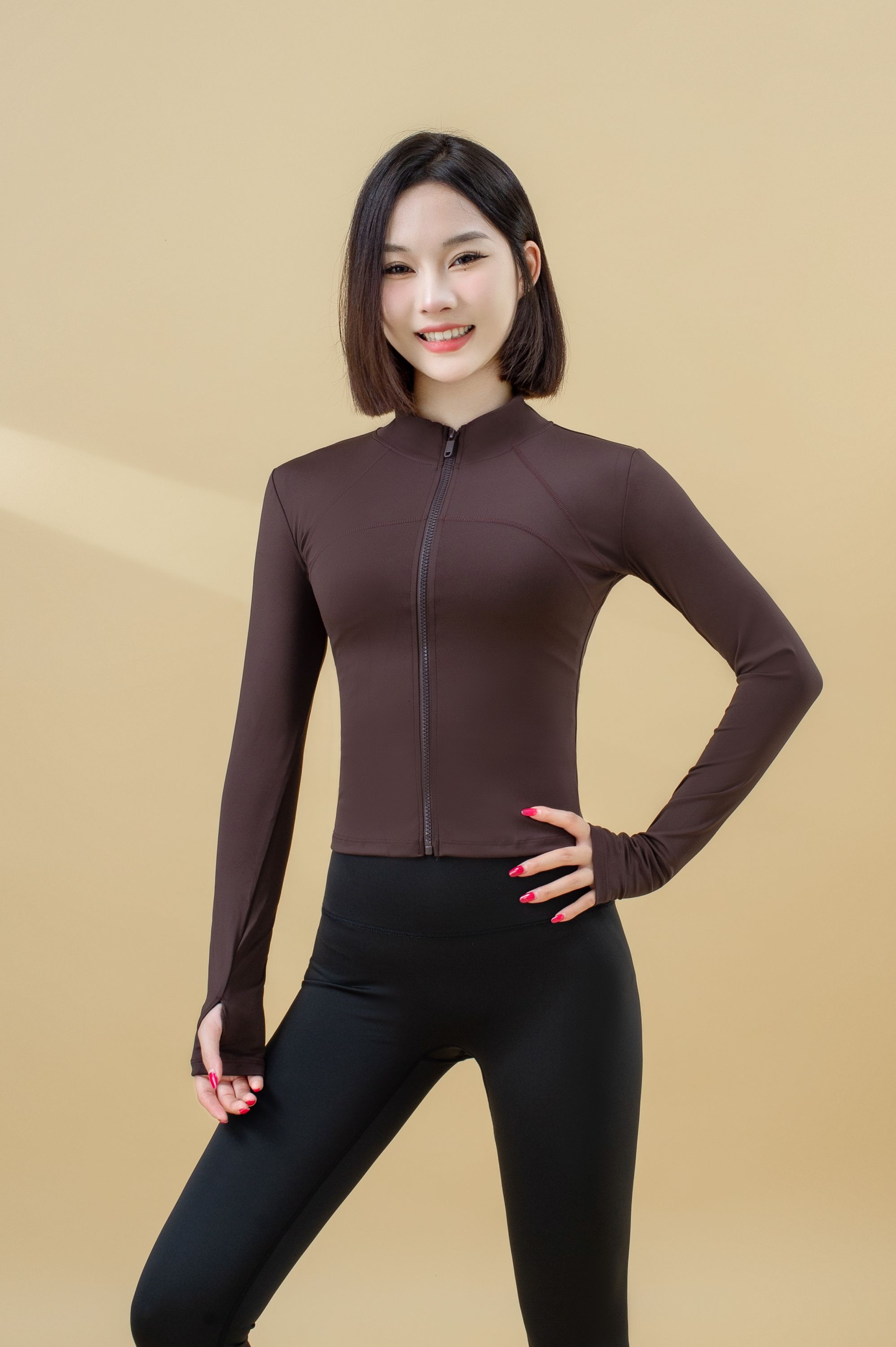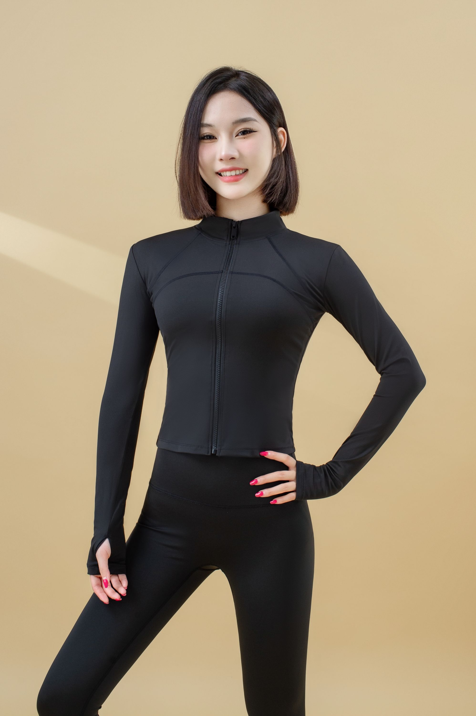 跃牌【瑜堂系列】高弹立领修身健身服显瘦瑜伽拼线上衣外套JYMW079