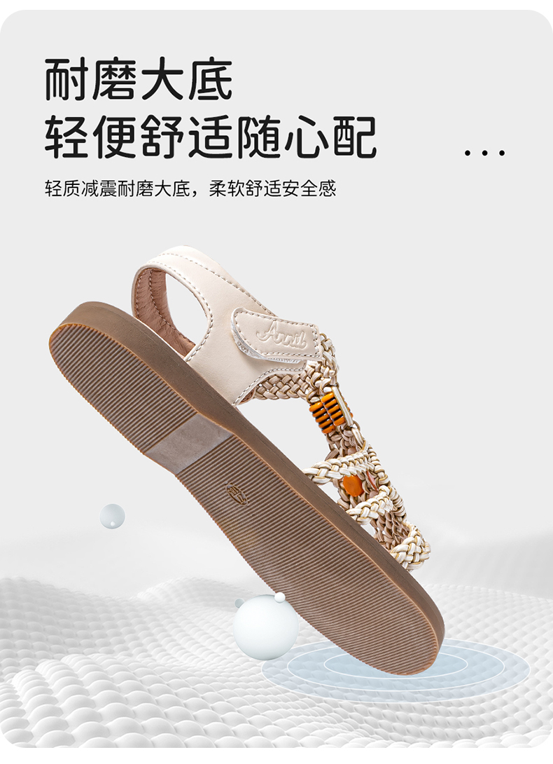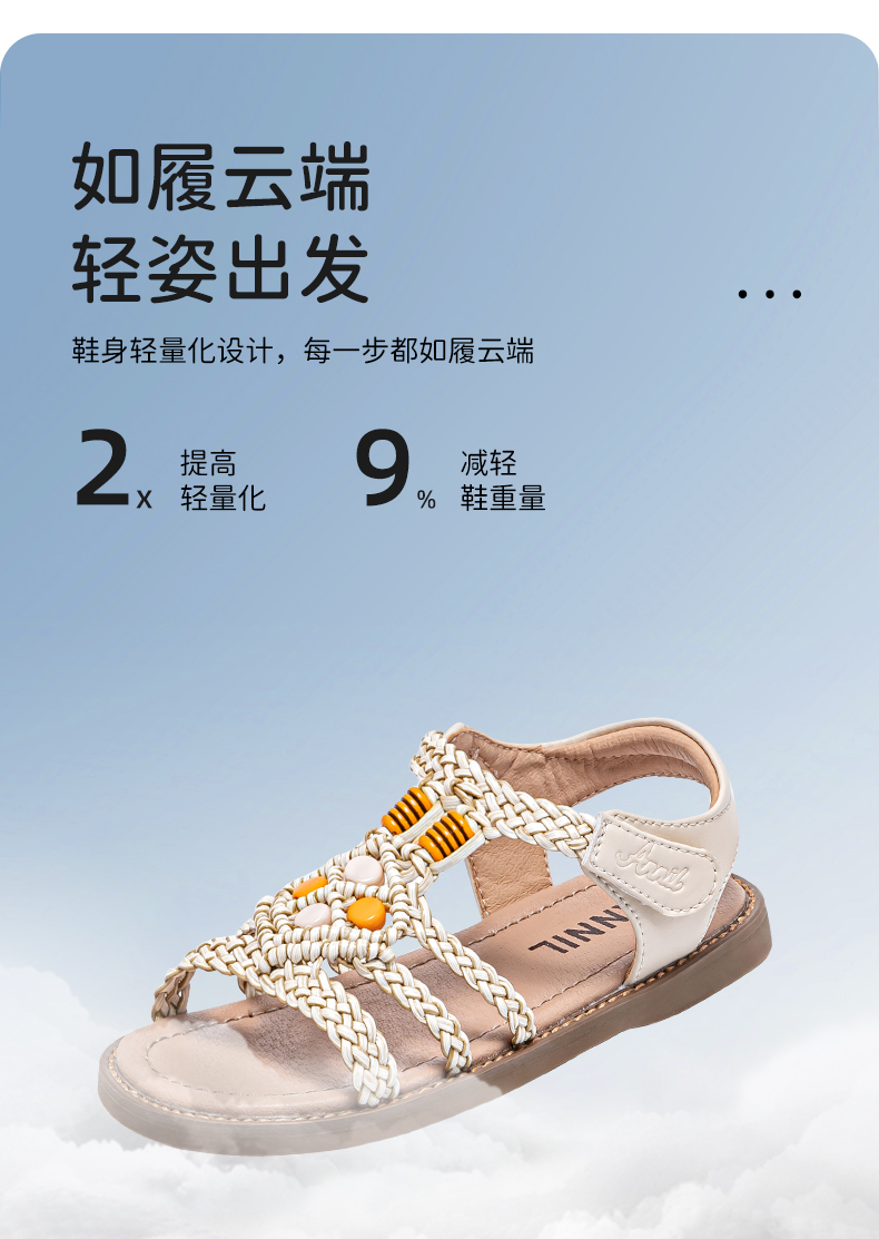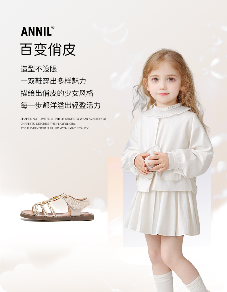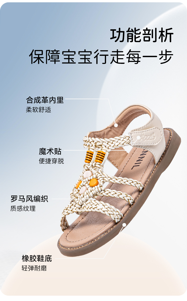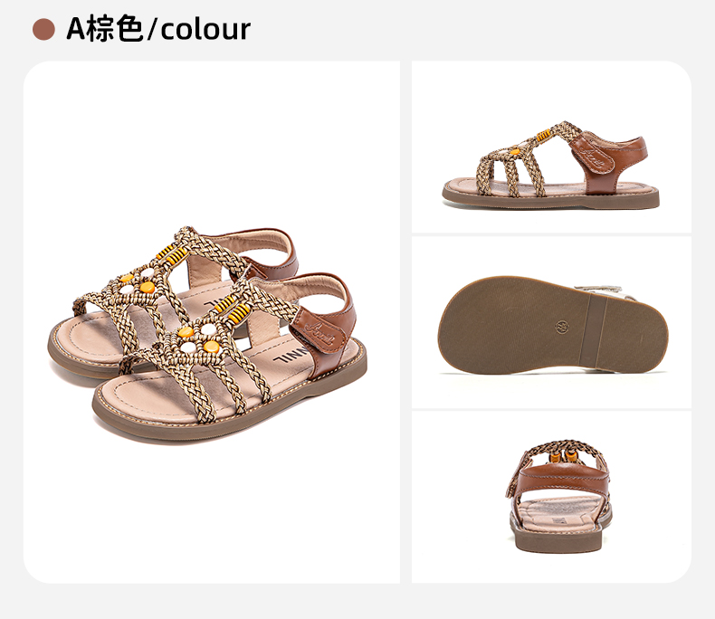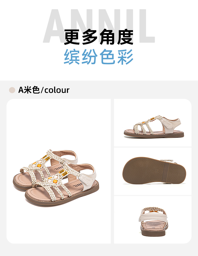 ANNIL/安奈儿女童百搭露趾罗马风时尚软底休闲凉鞋2025夏季新款HG5206307