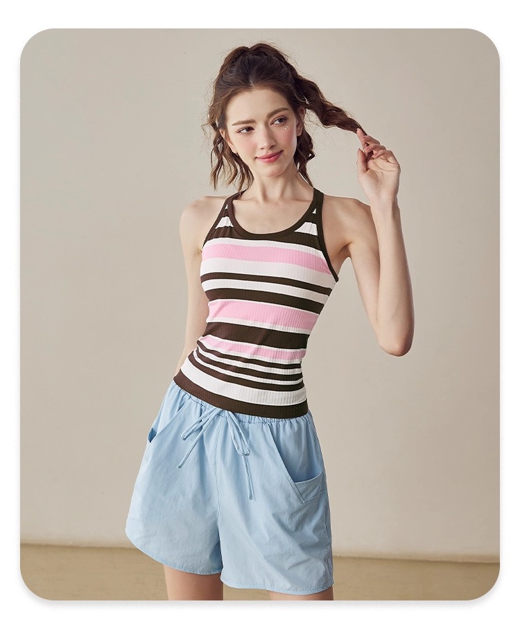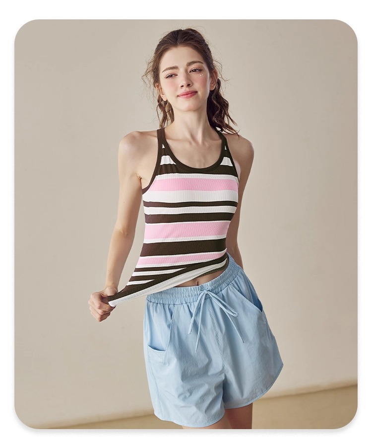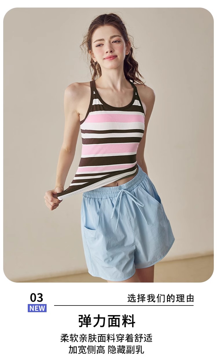 跃牌【美西西系列】2025新款韩版条纹针织工字美背带胸垫健身瑜伽背心BX-2516-23-26-主